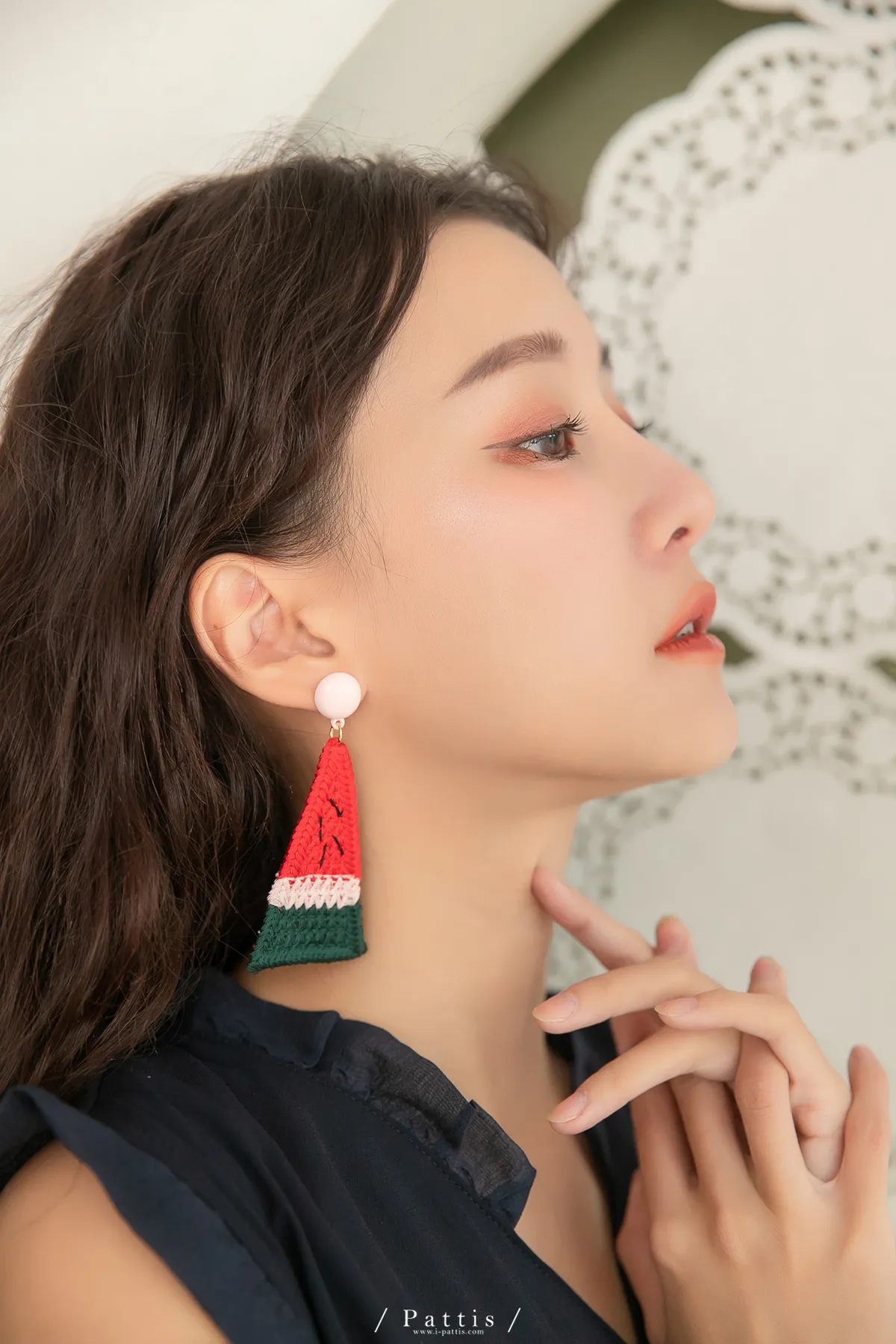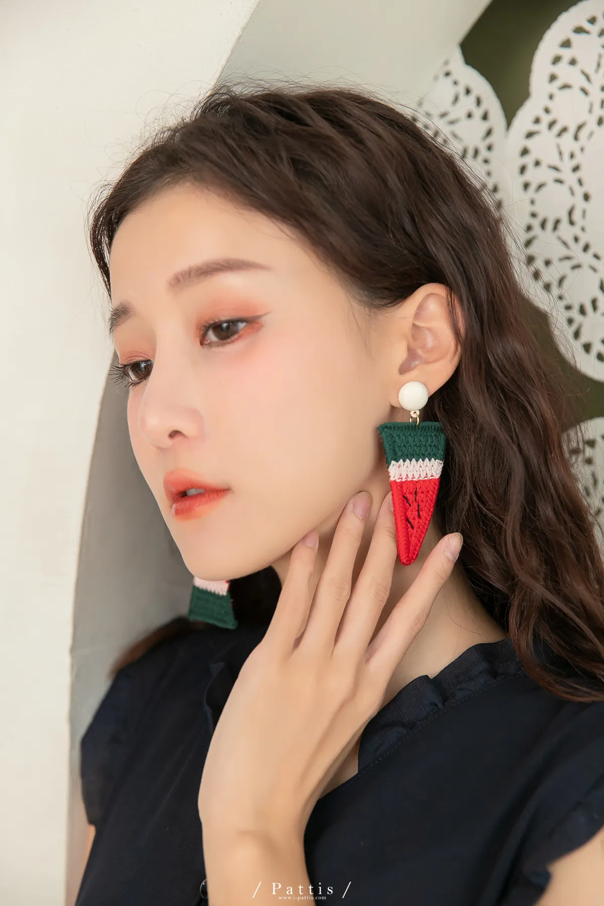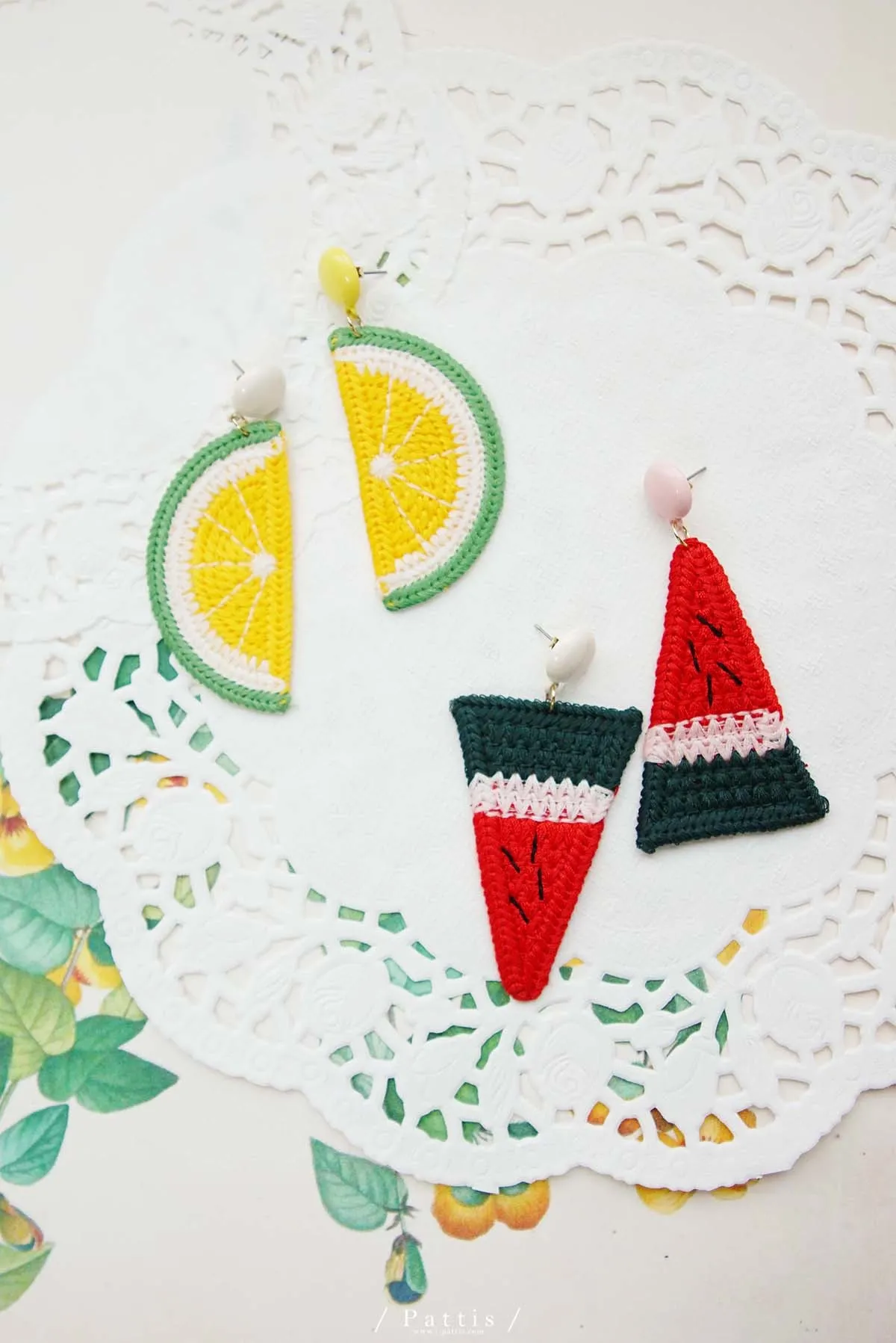 夏日氣息 | (耳夾)針織水果造型耳環(檸檬/西瓜)
