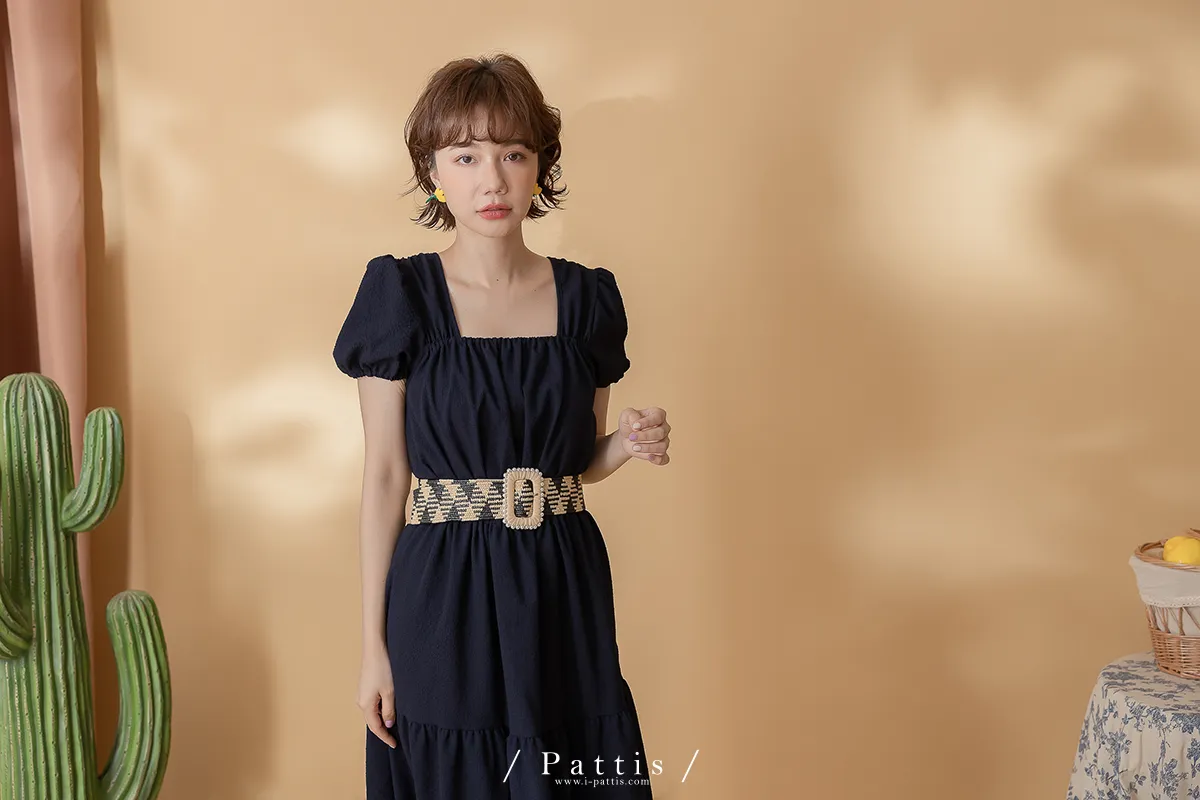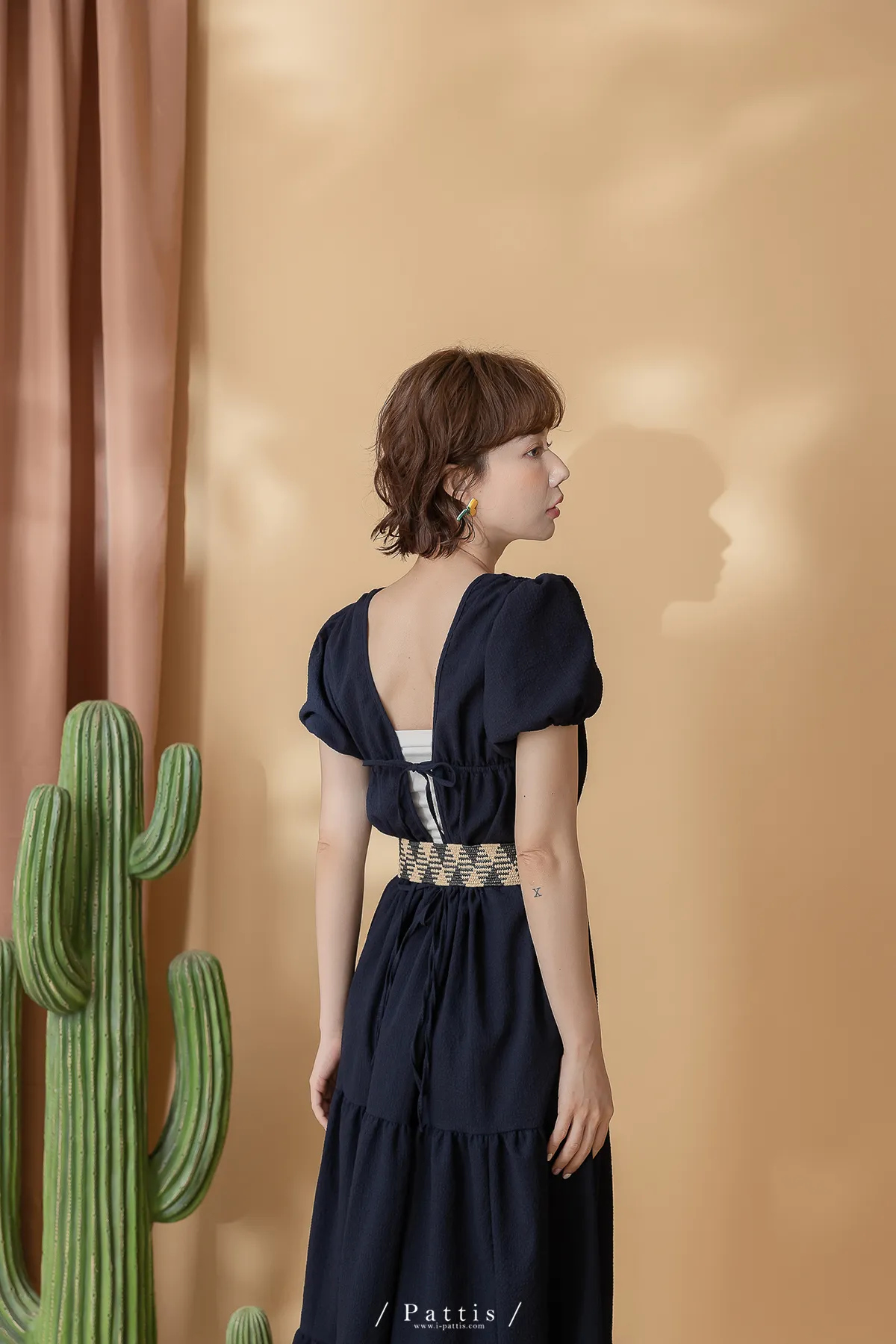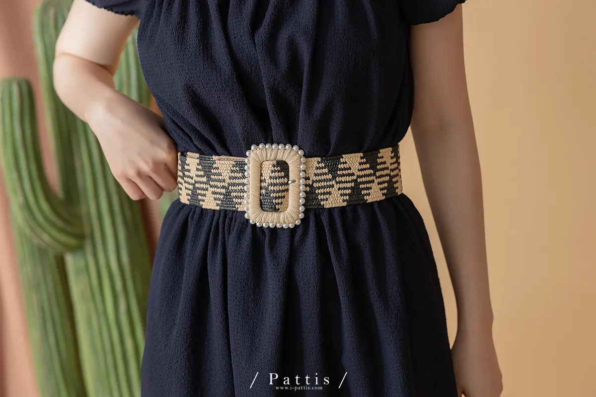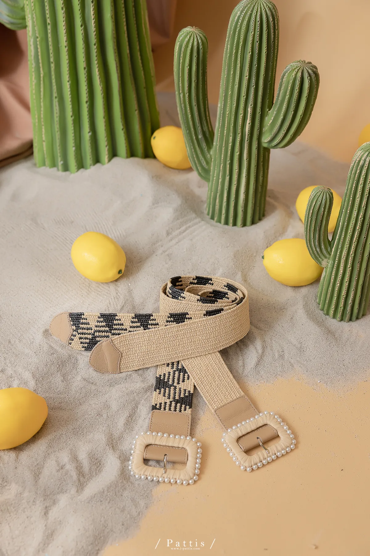 伸縮的儀式感 | 珍珠滾邊彈力編織寬版腰帶(米杏/條紋黑)