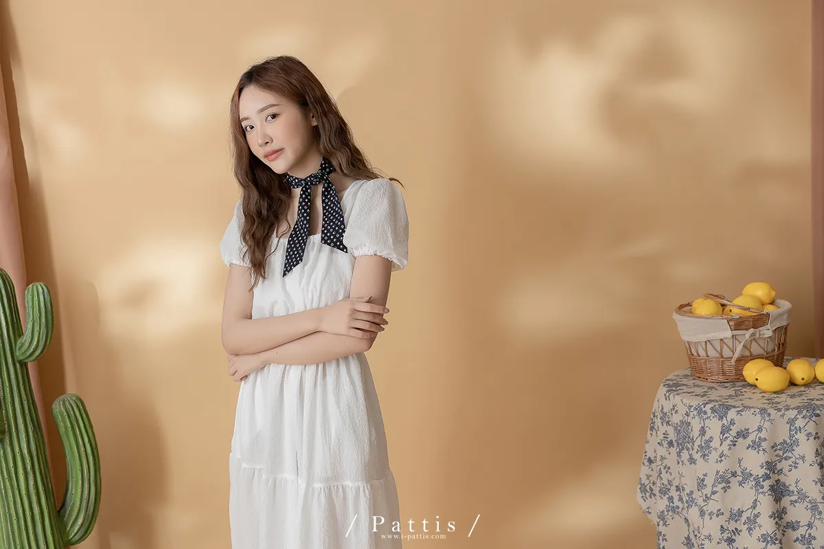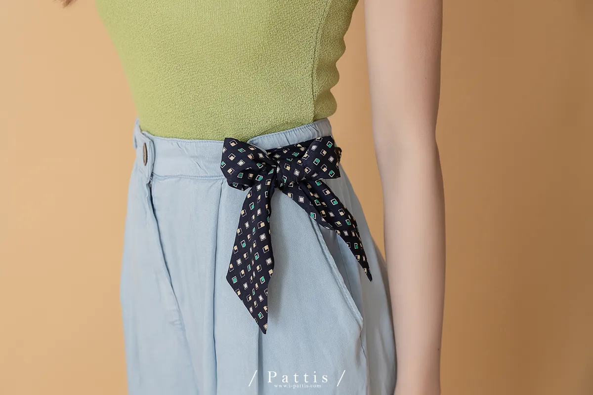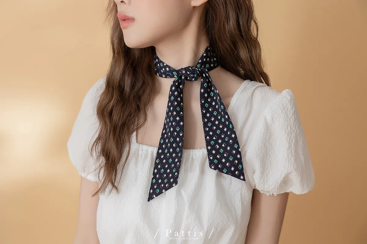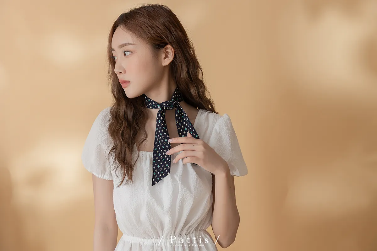 彈珠汽水 | 彩色小菱格長板窄絲巾(白/粉/深藍)