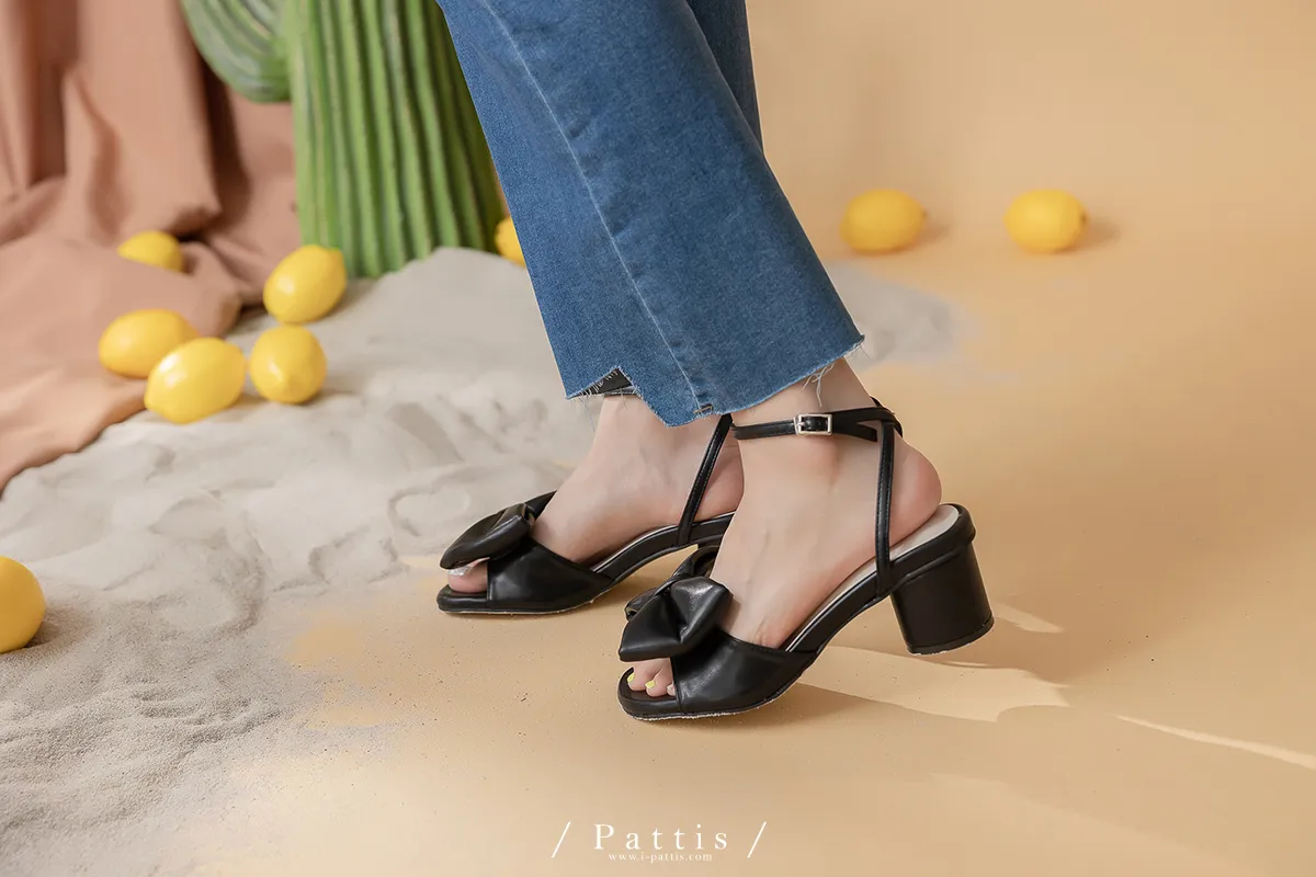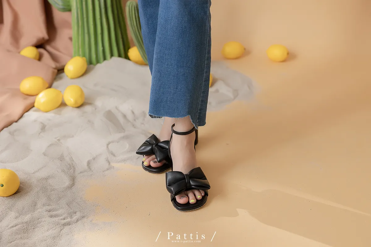 (現貨-黑23.5/24.5)夢裡雲朵都是蝴蝶結 | 澎澎大蝴蝶結繫帶涼鞋