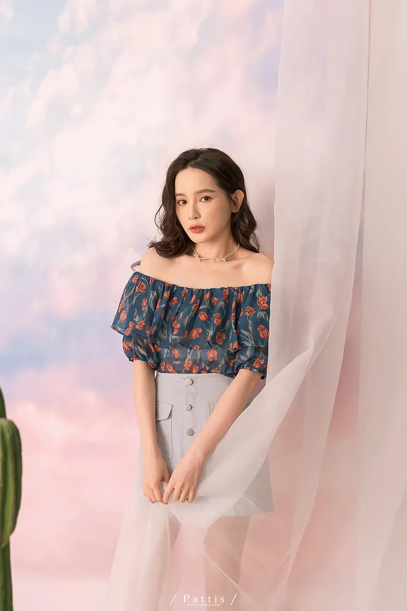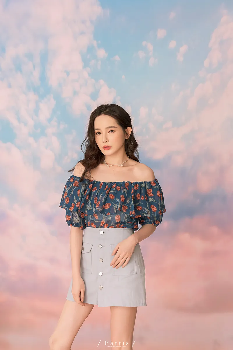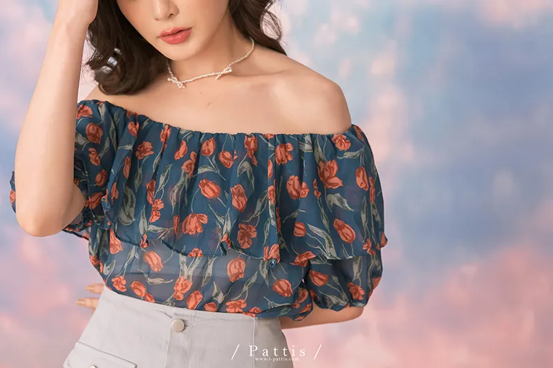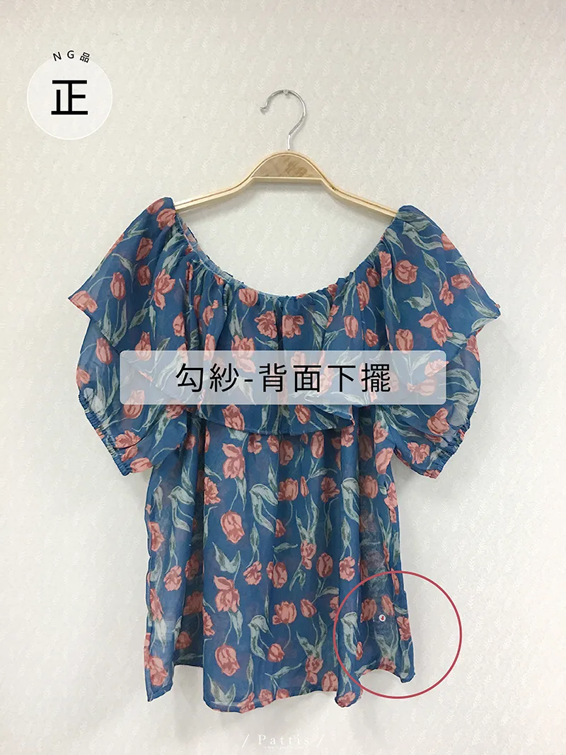 / NG品 原價$870 / *特*鬱金香抓皺2way一字領短袖上衣(藍)
