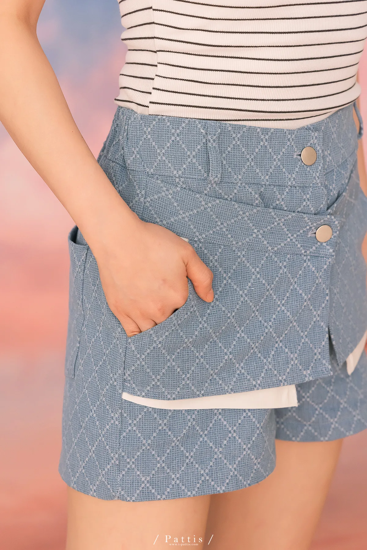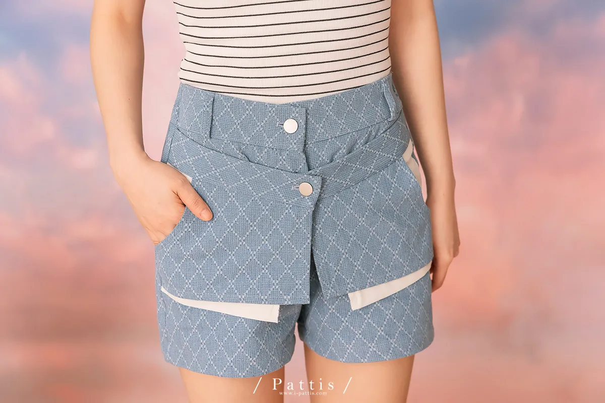 海風交互作用 | 菱格設計感假兩件短褲(單一色)