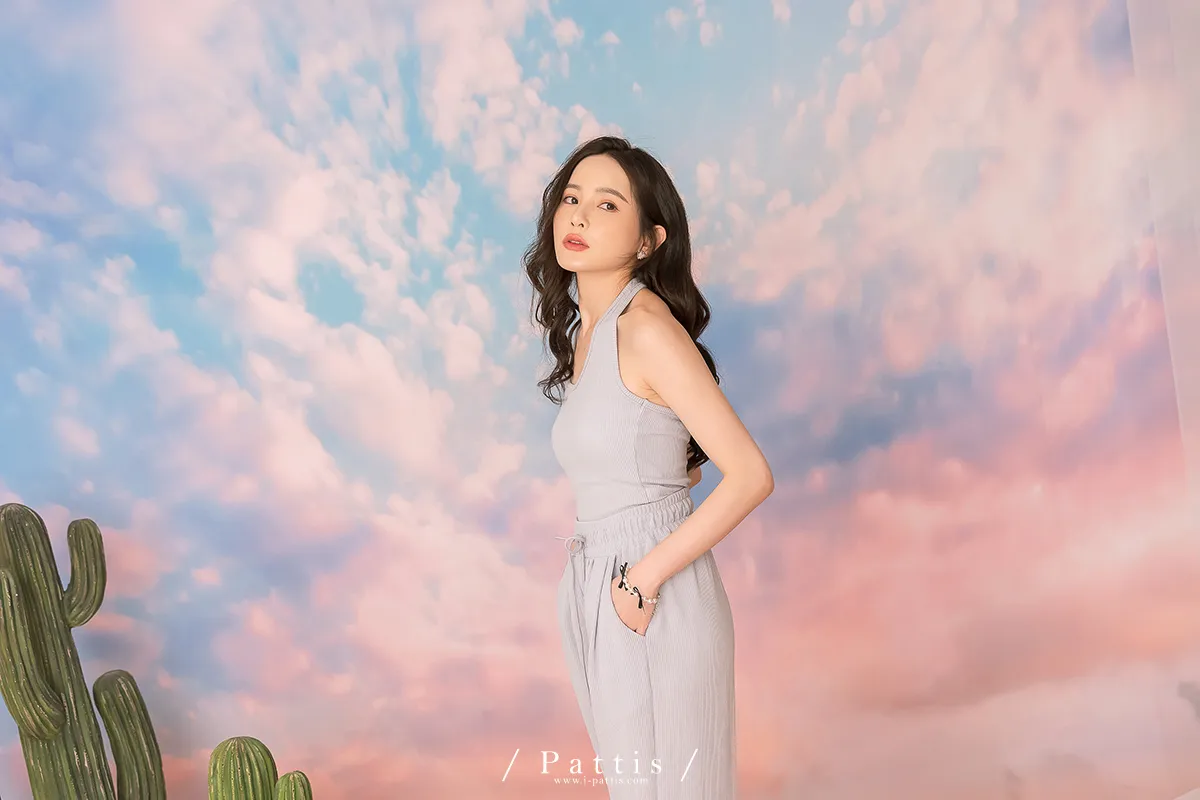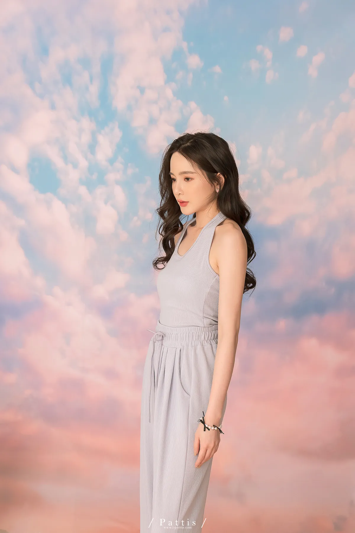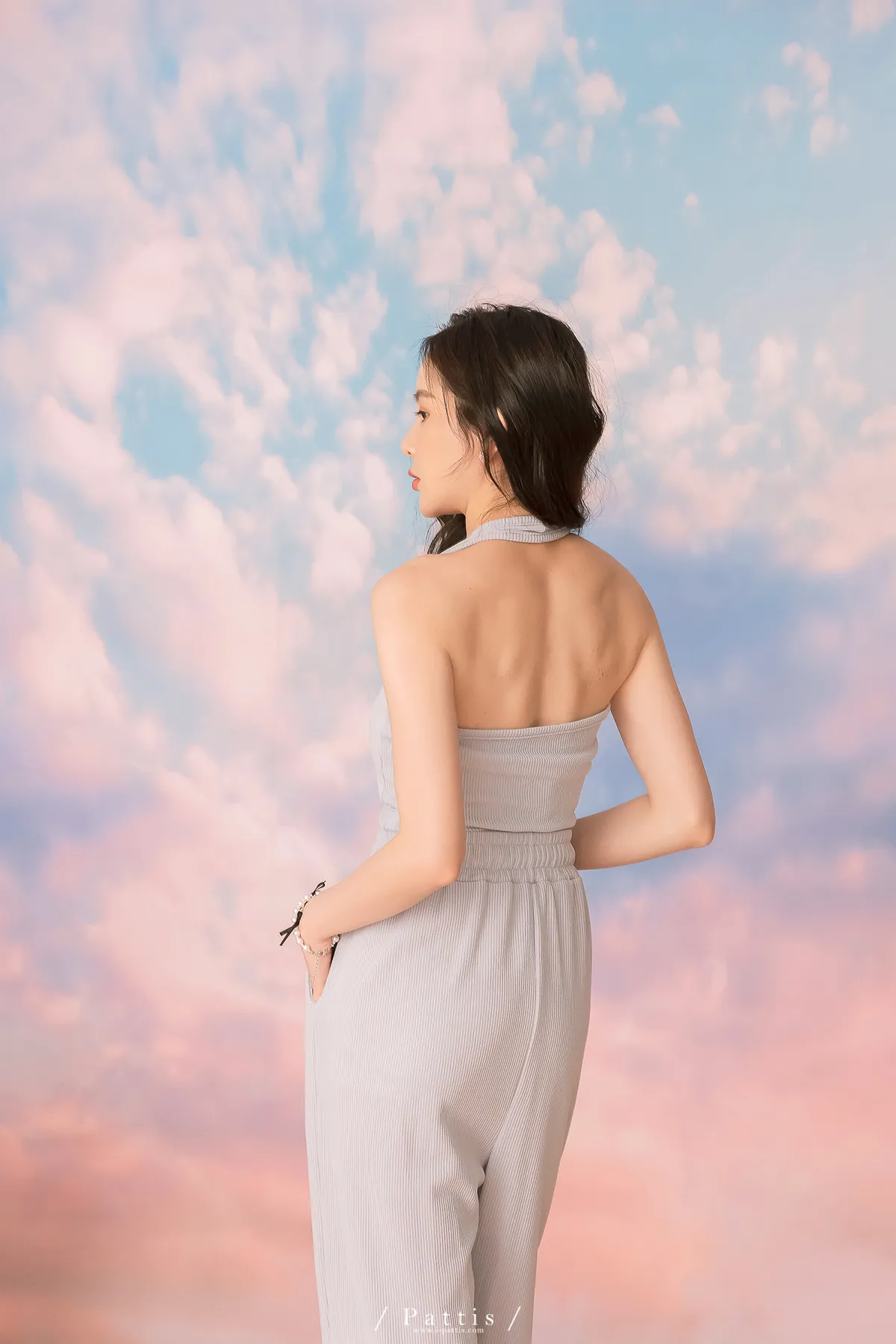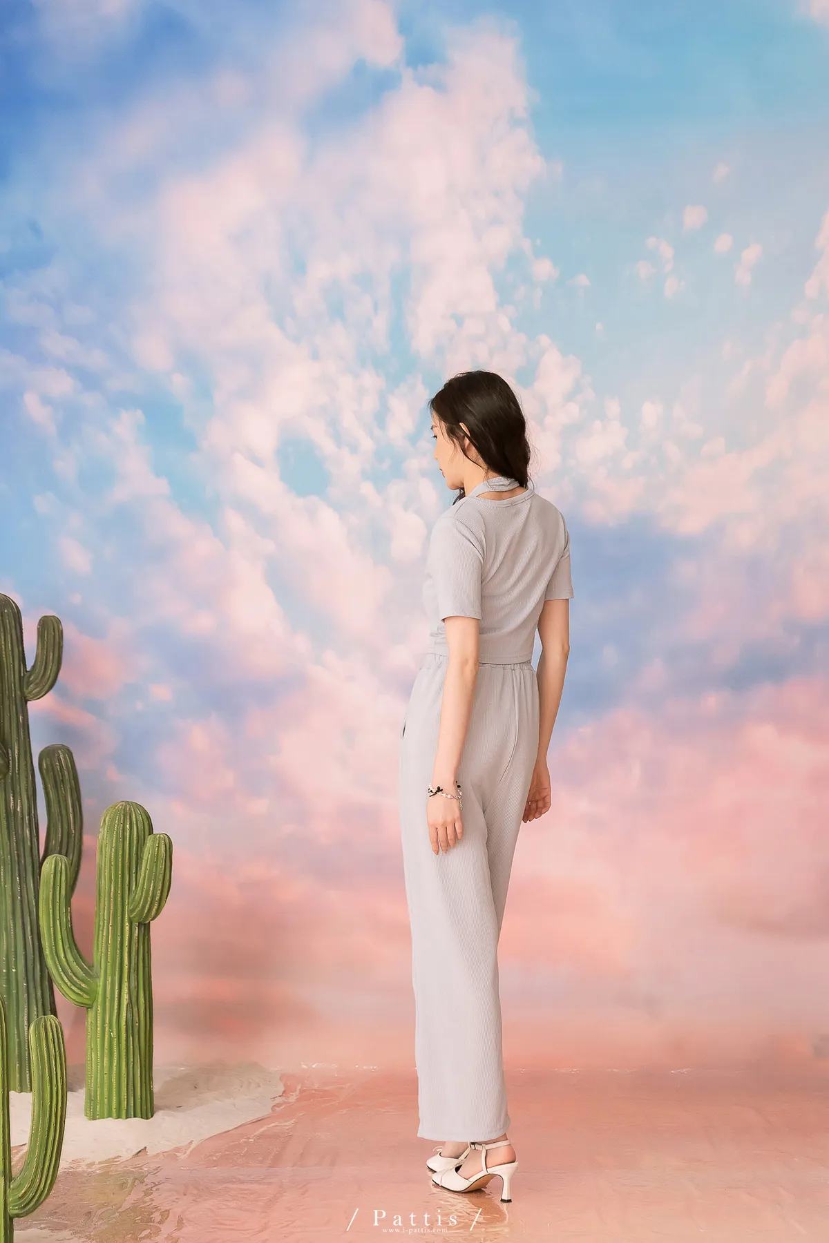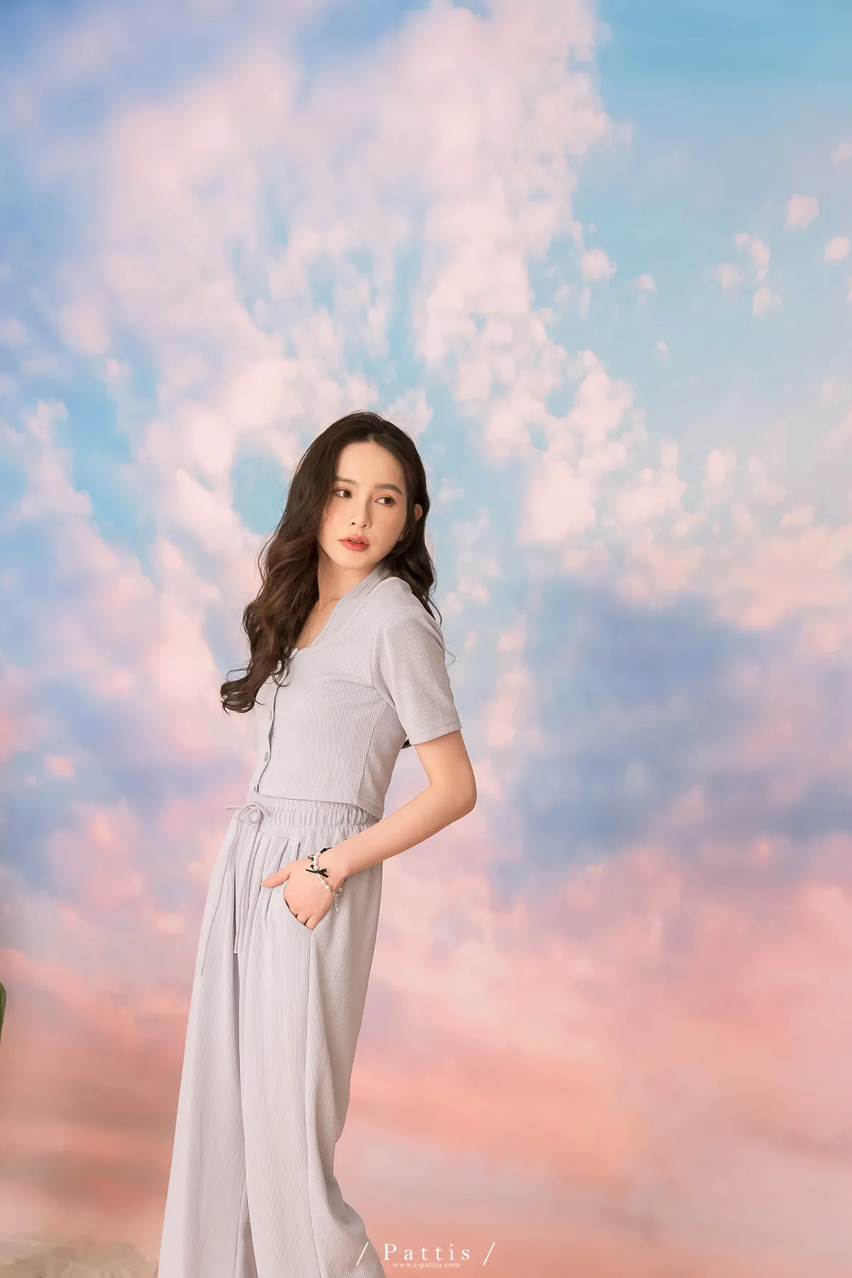 氣泡水與牛奶糖 | 羅紋繞頸背心+短外套+綁帶長褲三件set(淺藍)