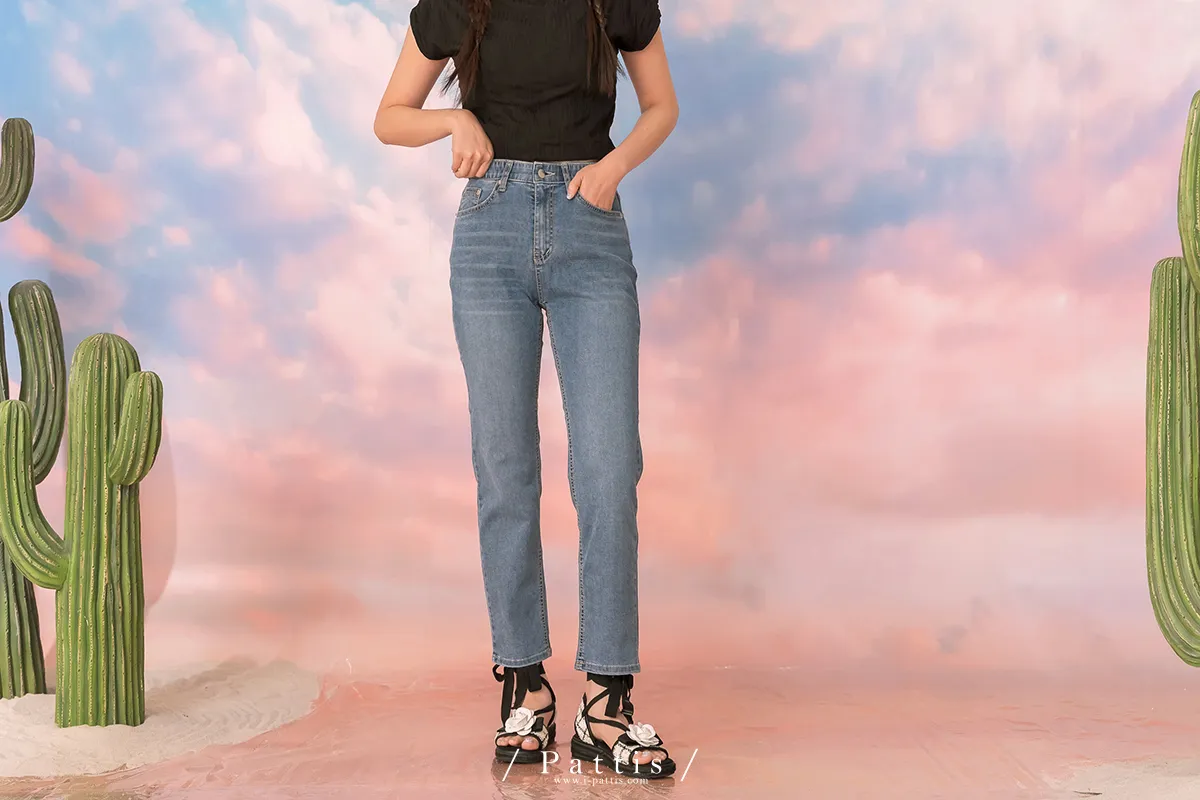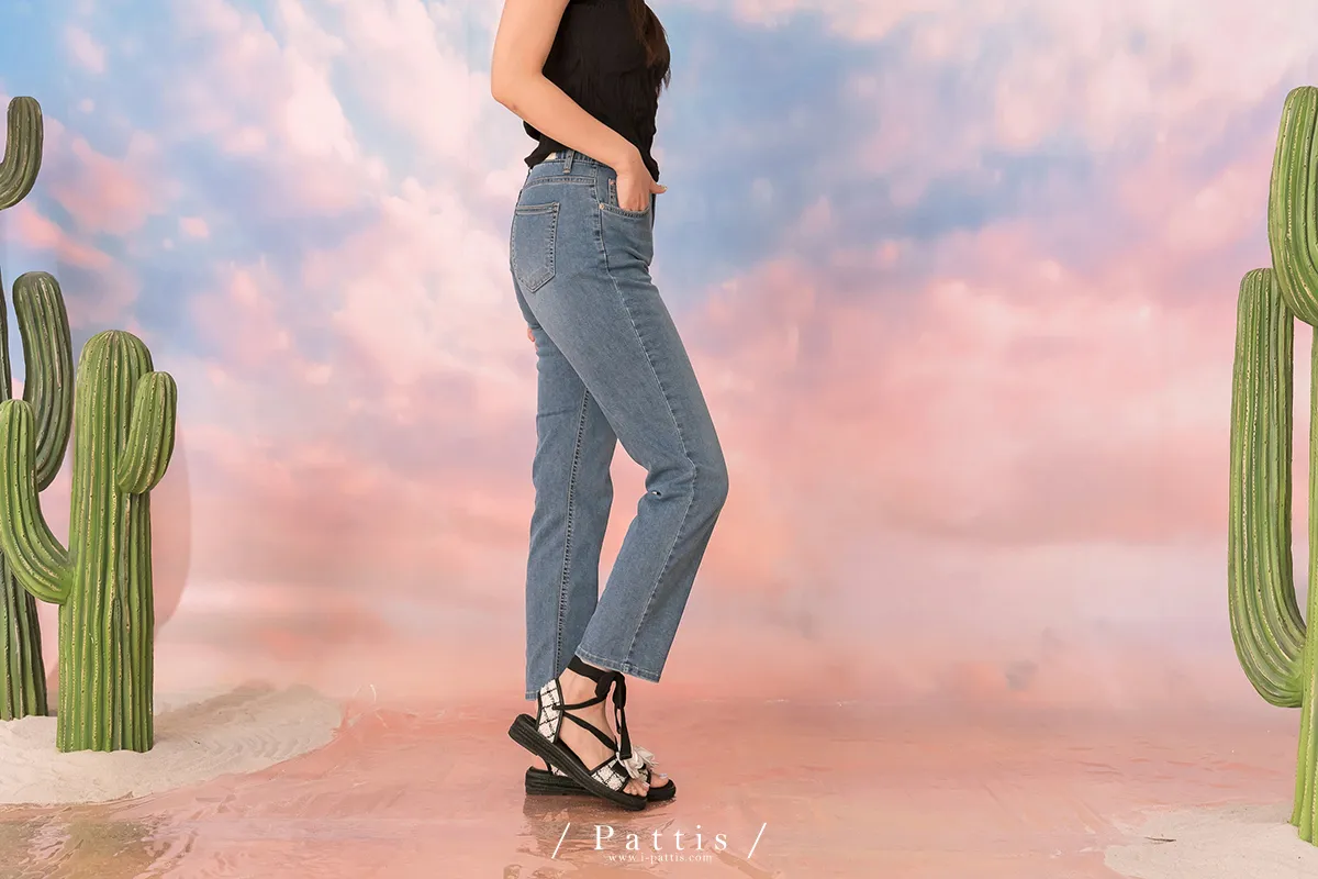 (現貨-M)*特*冰涼感薄料刷色男友褲(深藍)