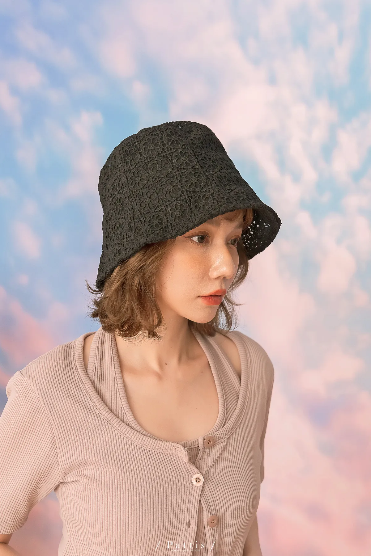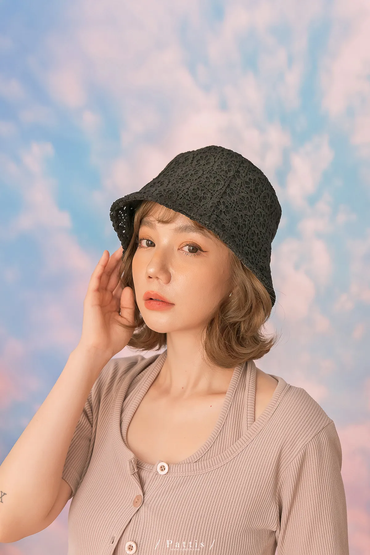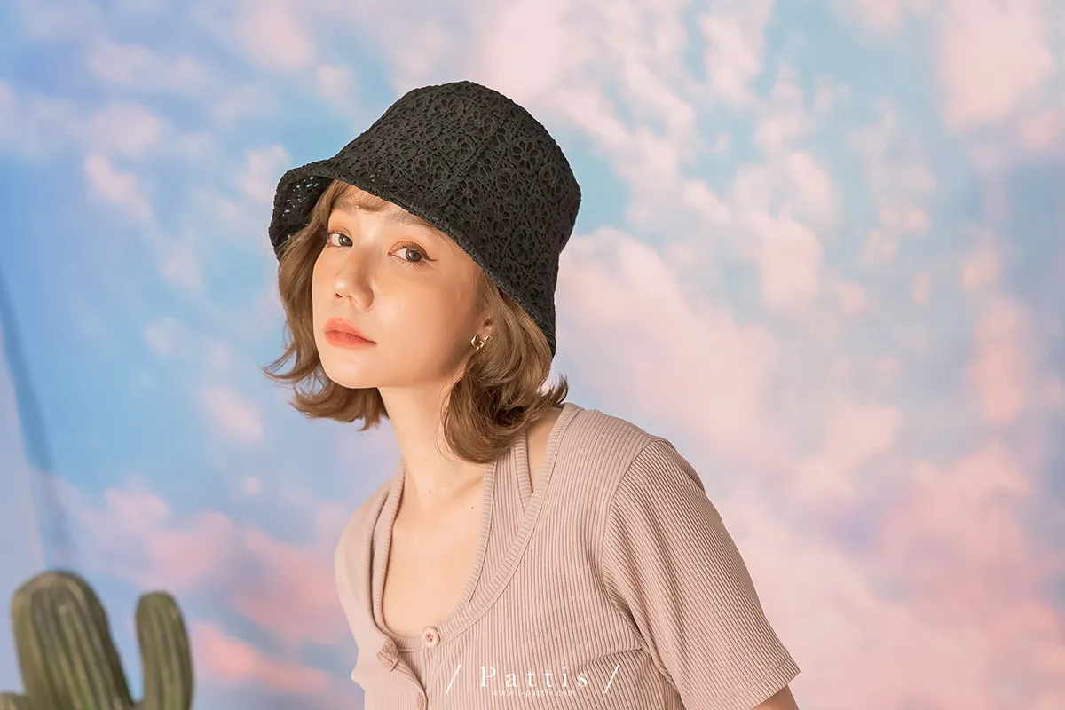 水果切片蕾絲鐘型懶人帽(米白/黑)
