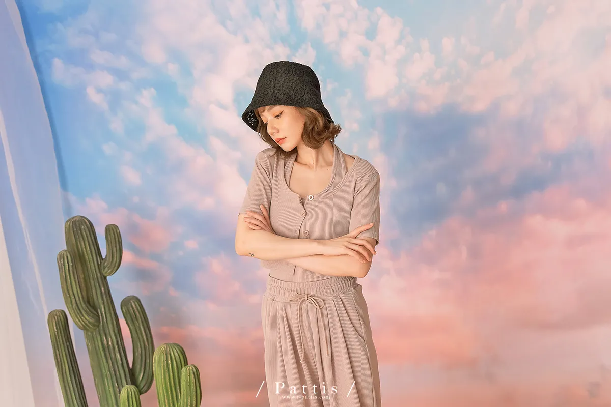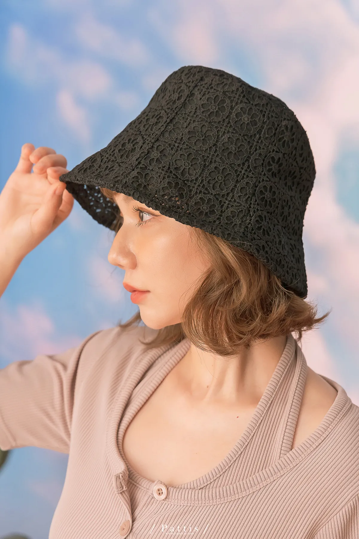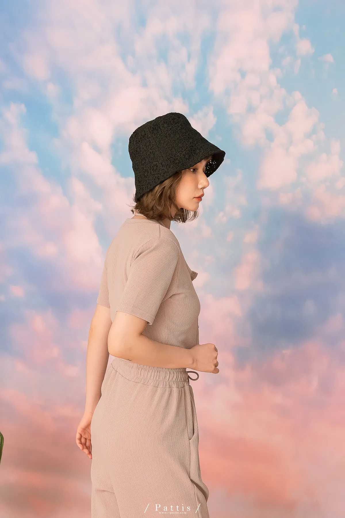 水果切片蕾絲鐘型懶人帽(米白/黑)