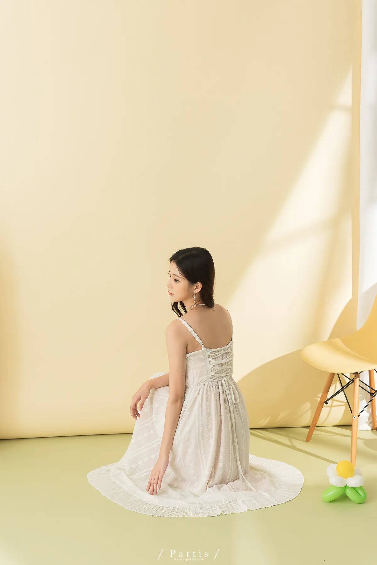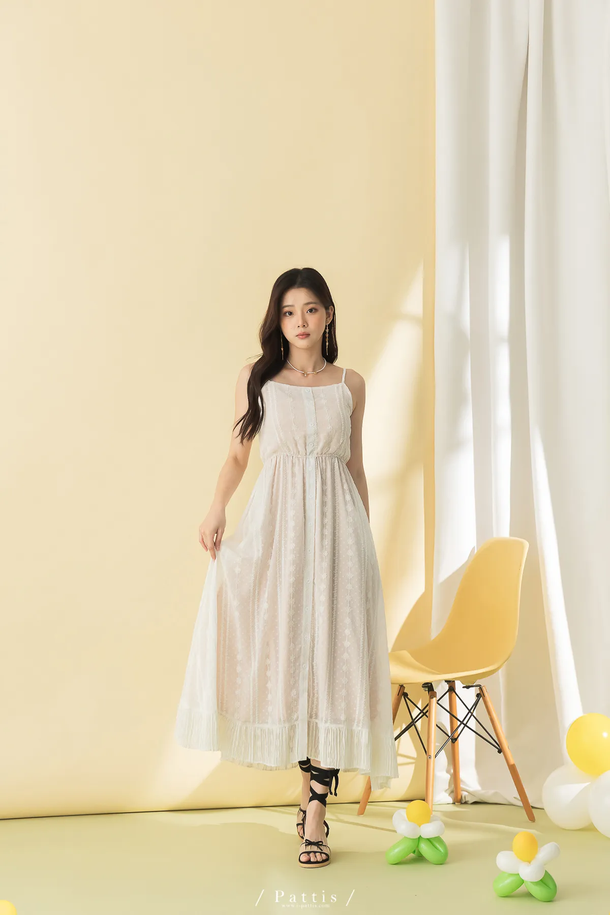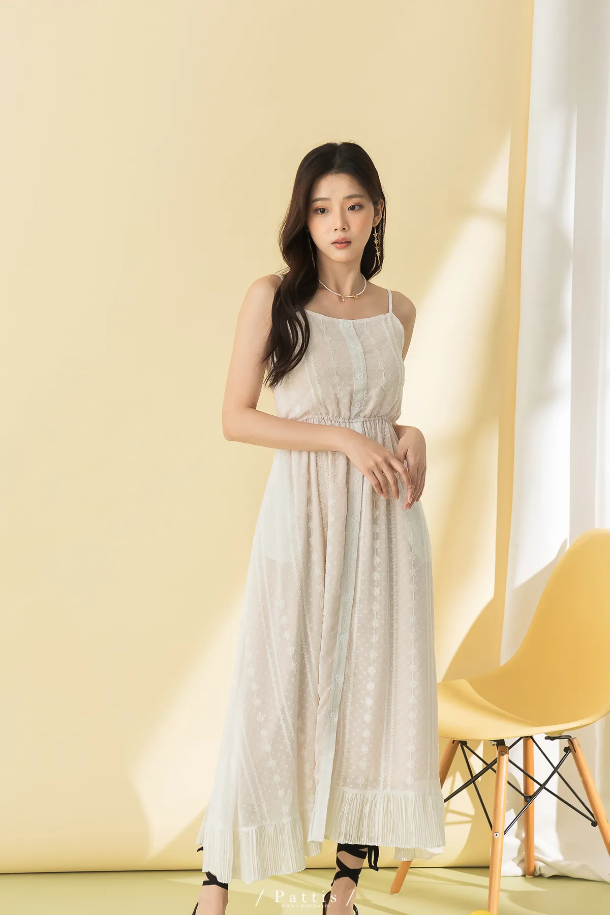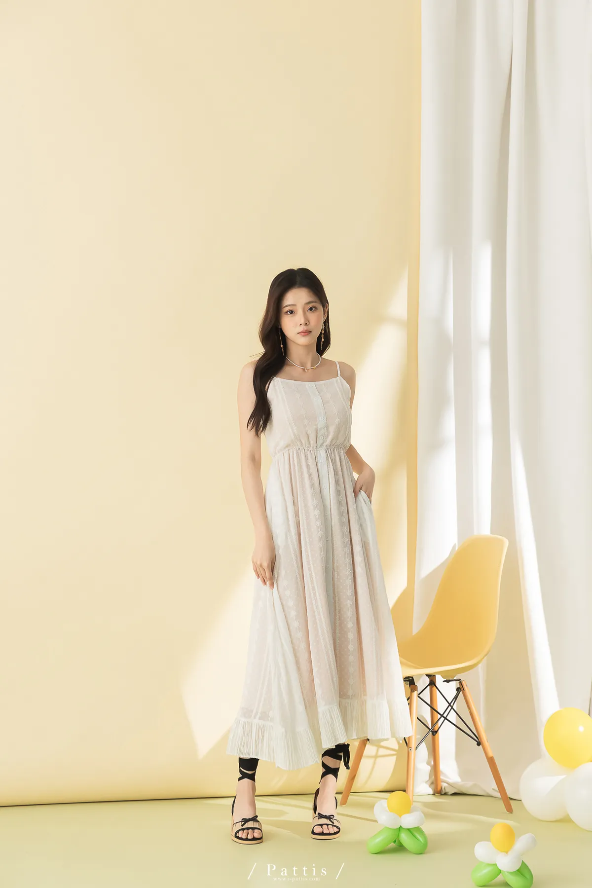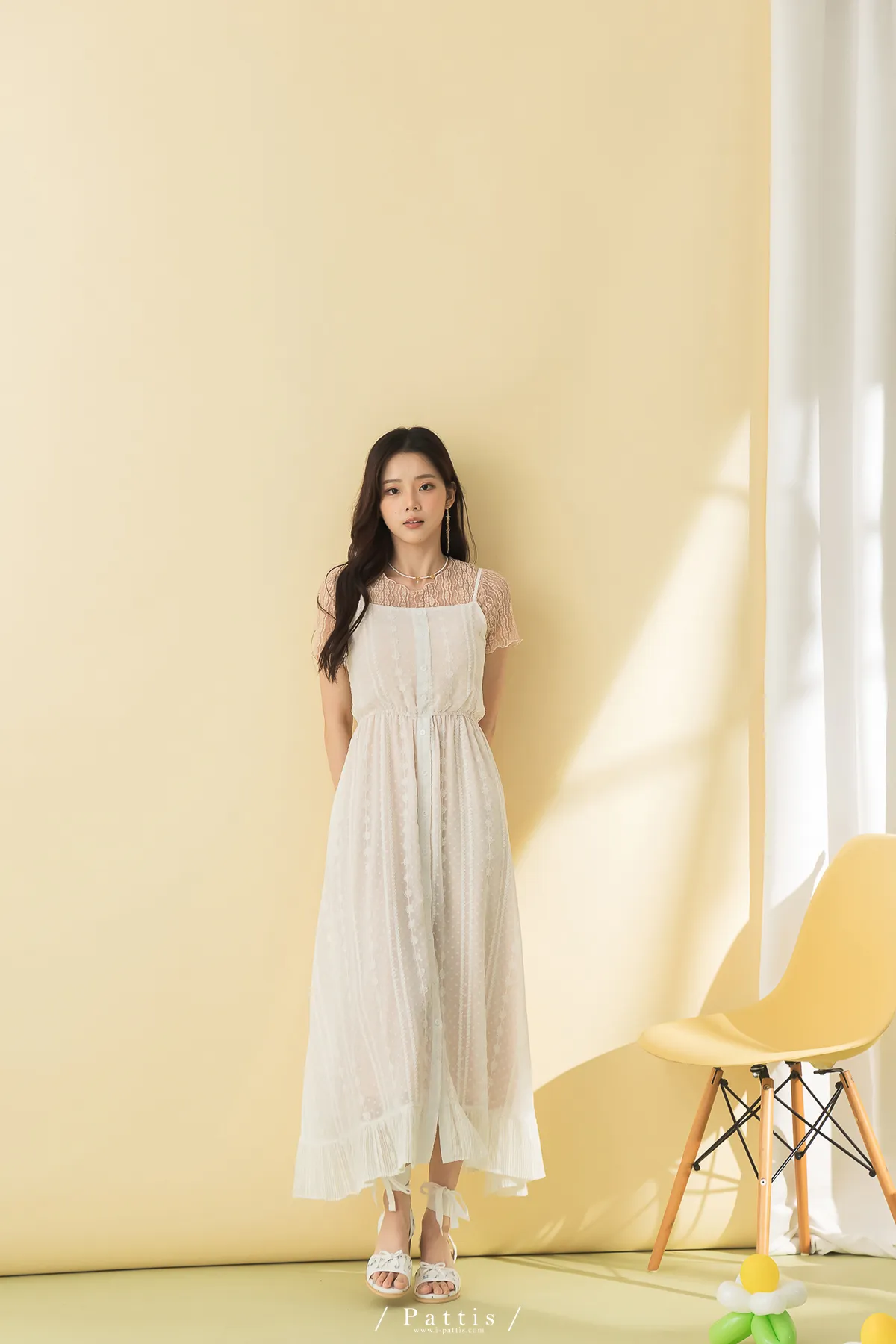飛花釀成換日線 | 小雛菊浮雕條紋後馬甲洋裝+抽繩蓬袖短外套set(夏晝白)