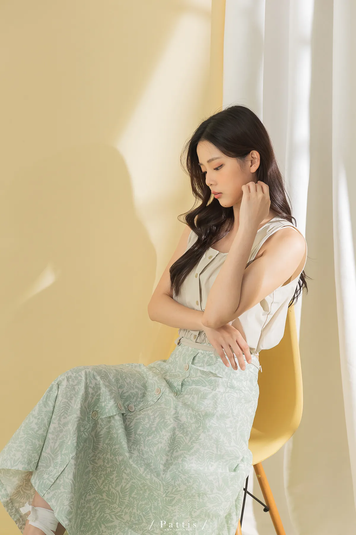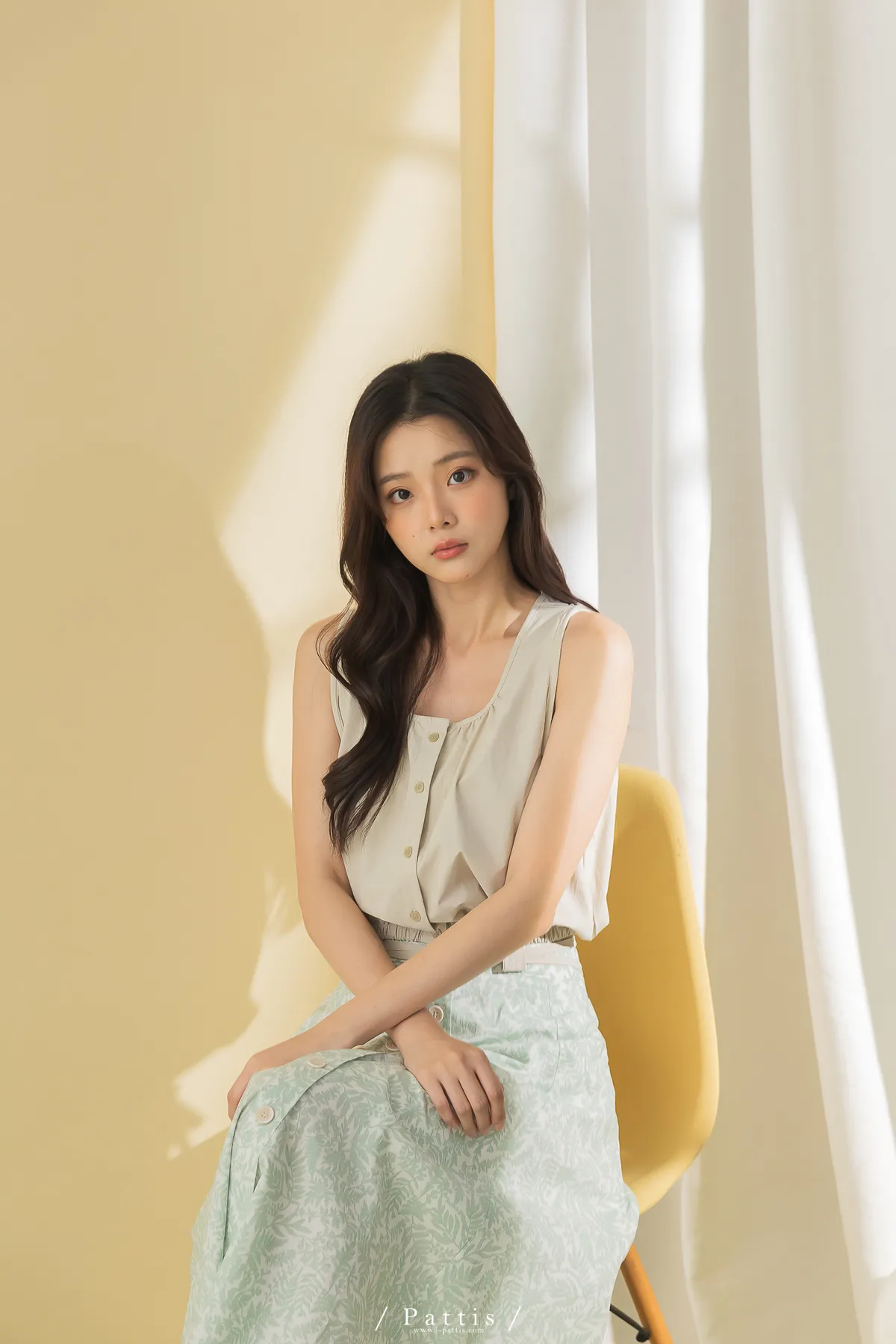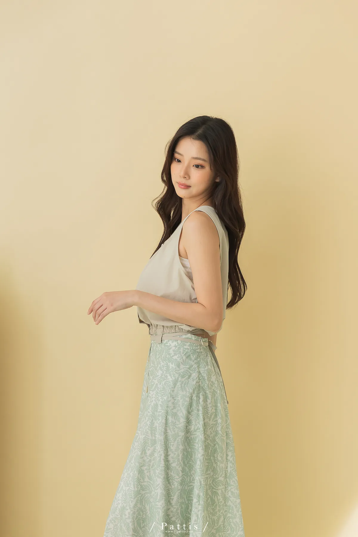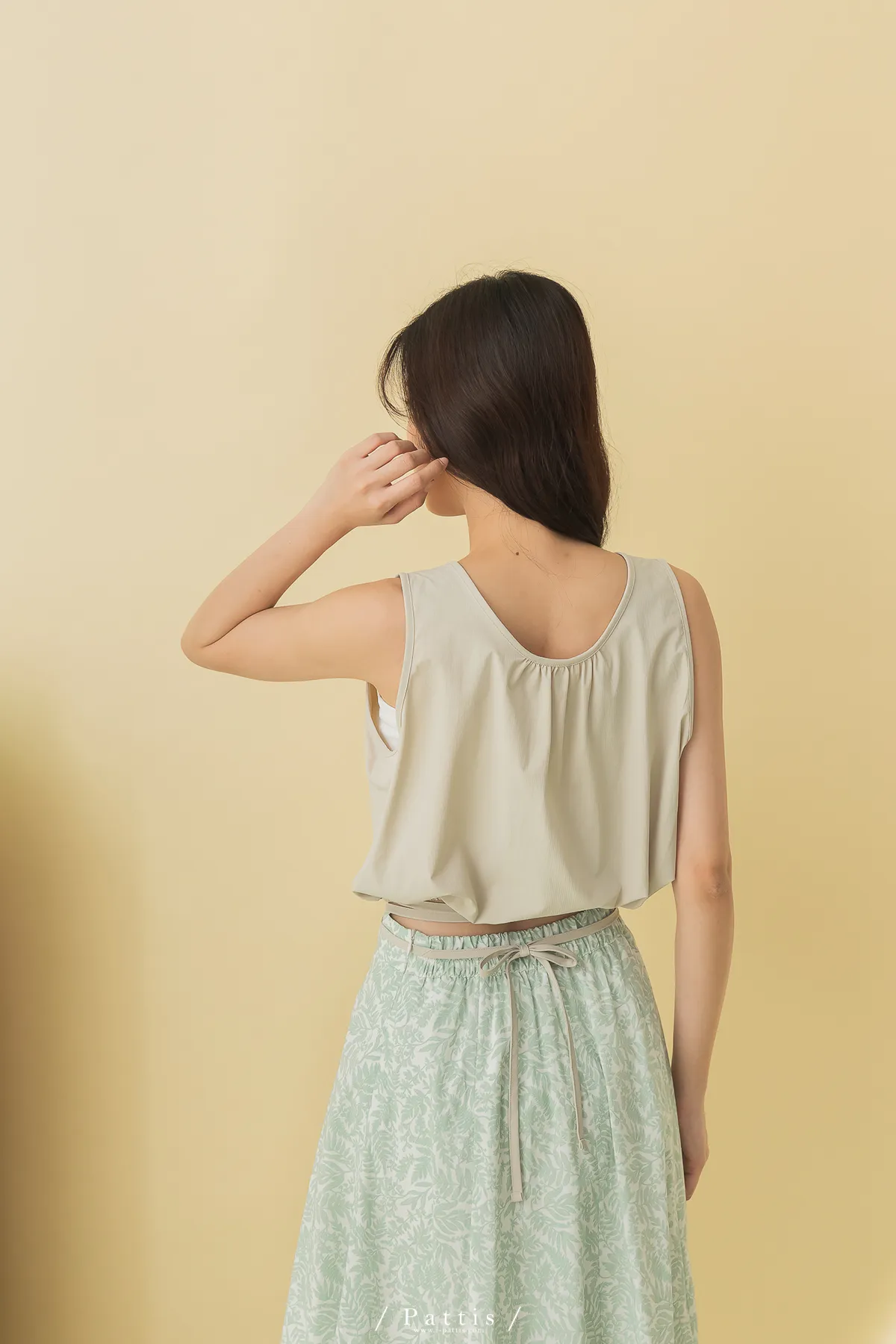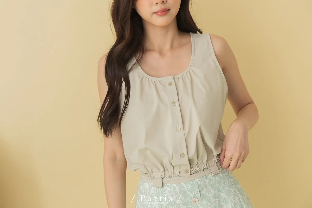 西西里的黃昏 | U領小方格壓紋綁帶背心(淺杏)