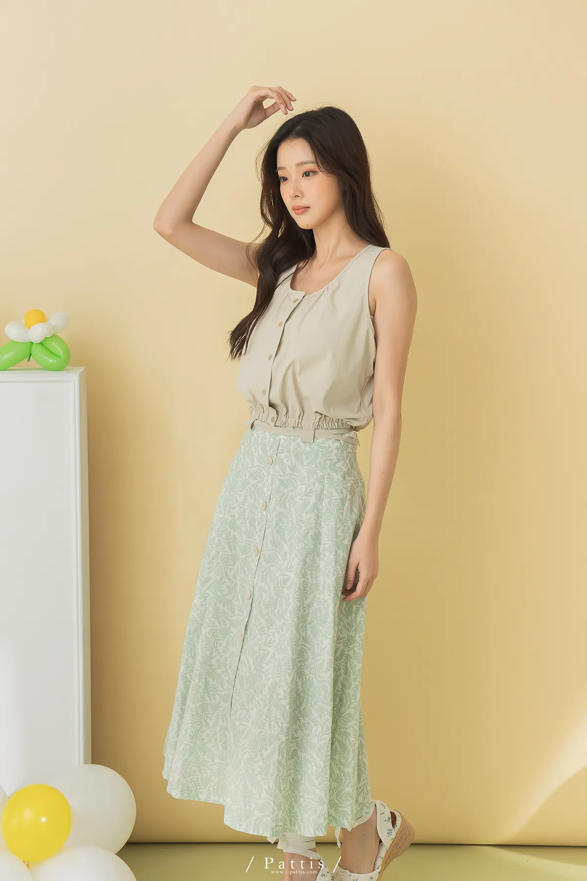 | F | 43 | 51 | 30-58(鬆緊) | 24 | 119 | 聚酯纖維 | X | 前鈕釦全開 | 綁帶不可拆 |