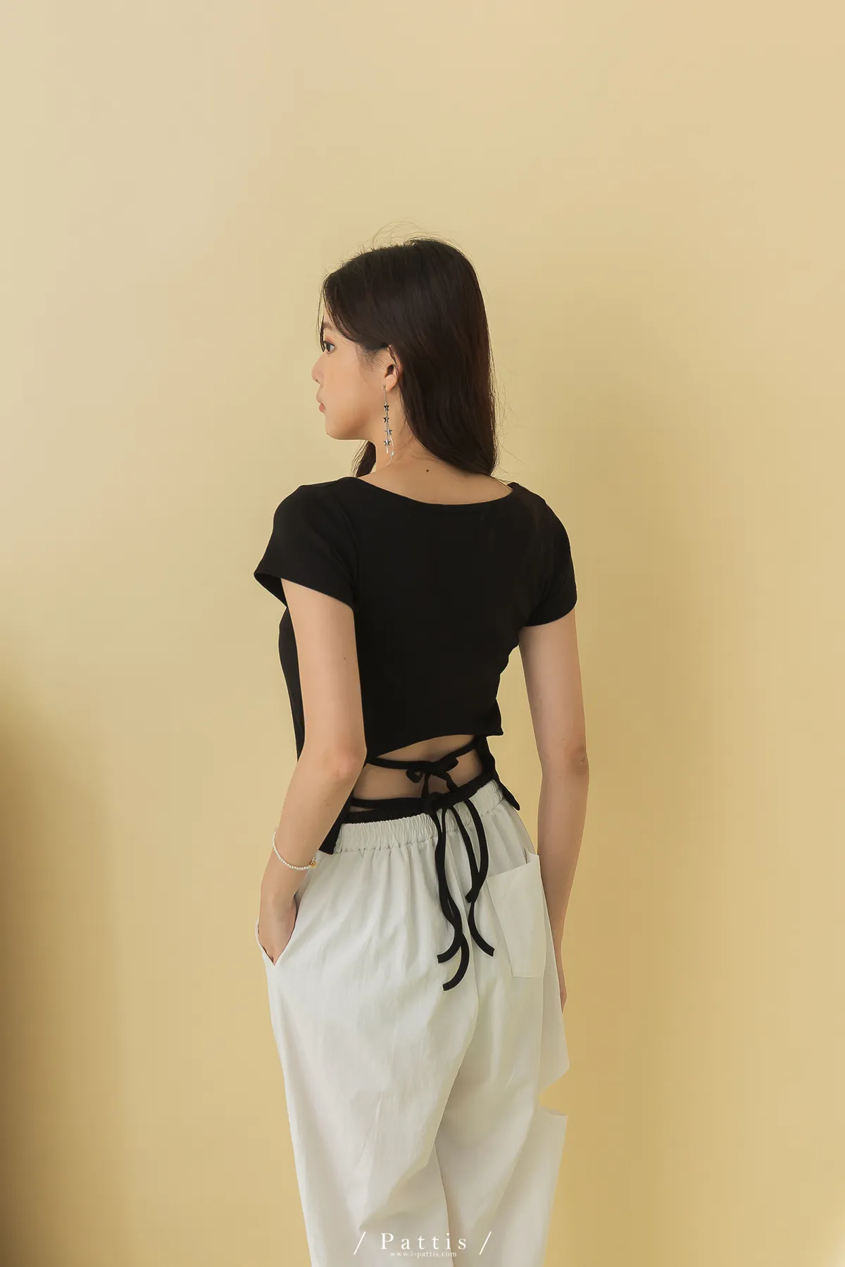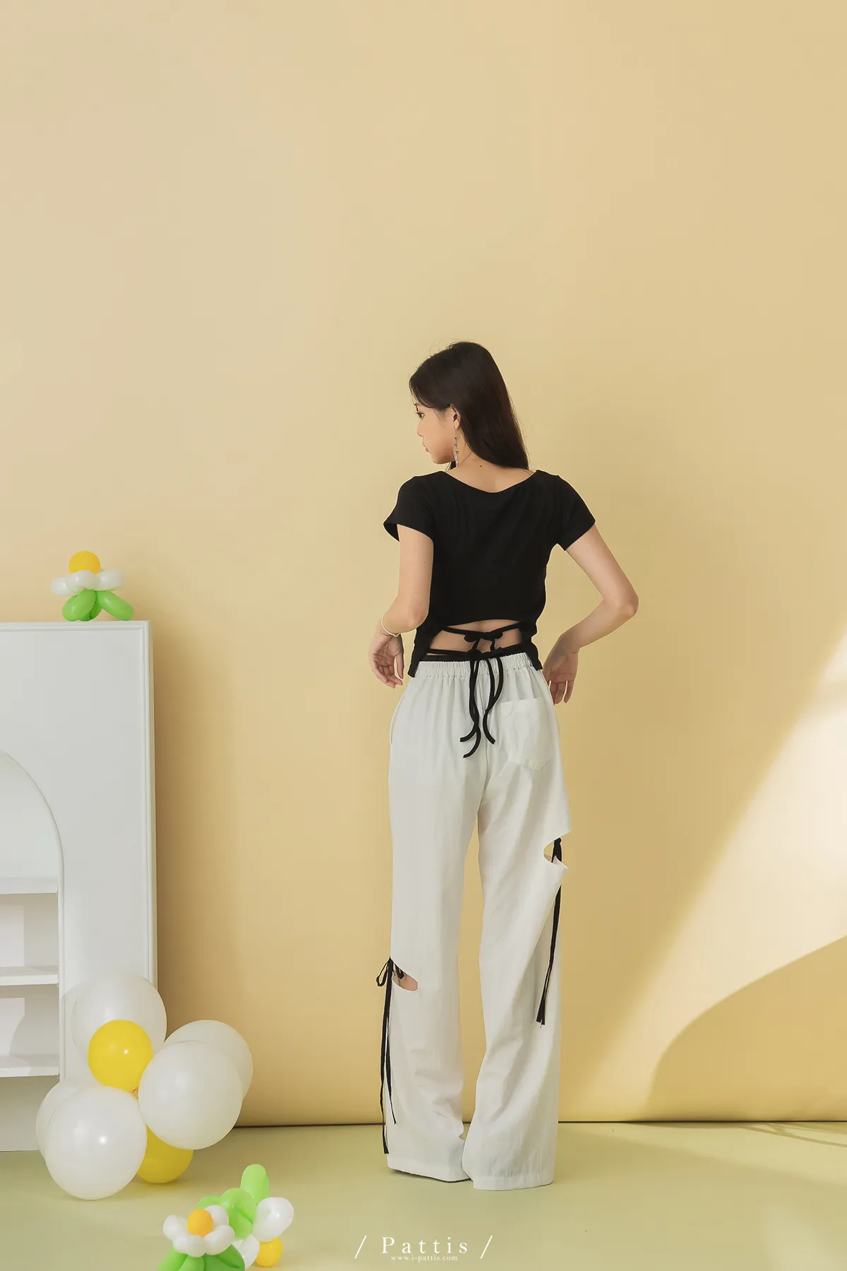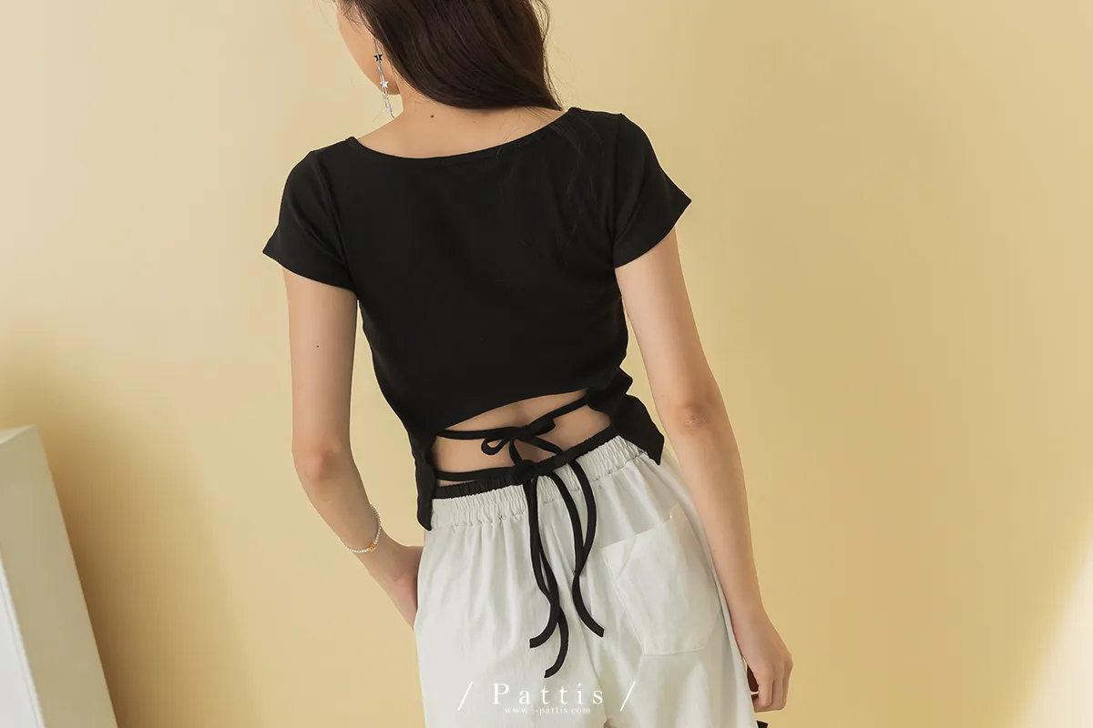 *特*夏日的節奏 | 挖腰雙綁帶U領上衣(黑)