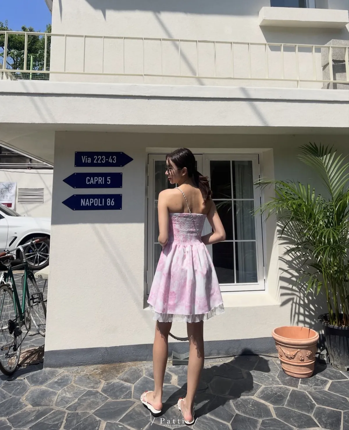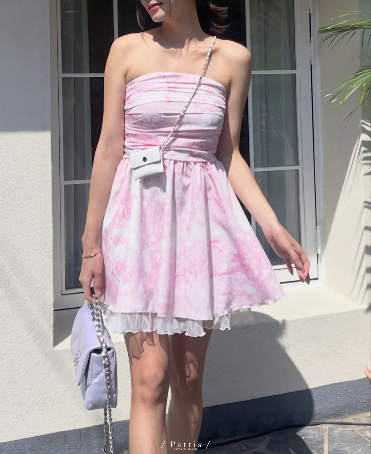 *特*抓皺綴百褶裙擺平口洋裝(淺粉)