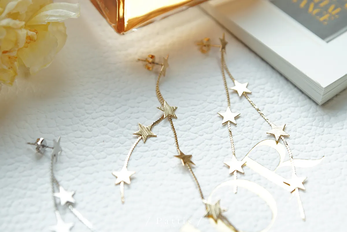 髮絲紋星星流蘇耳環(金/銀)