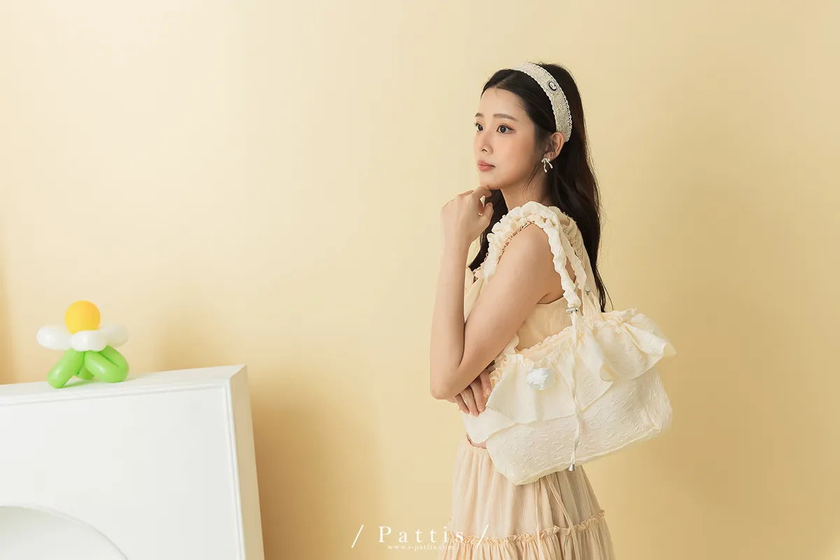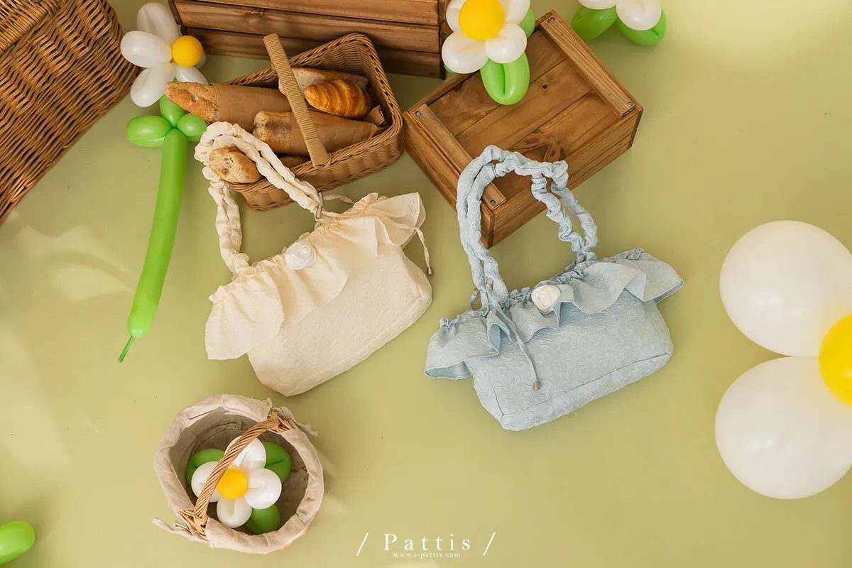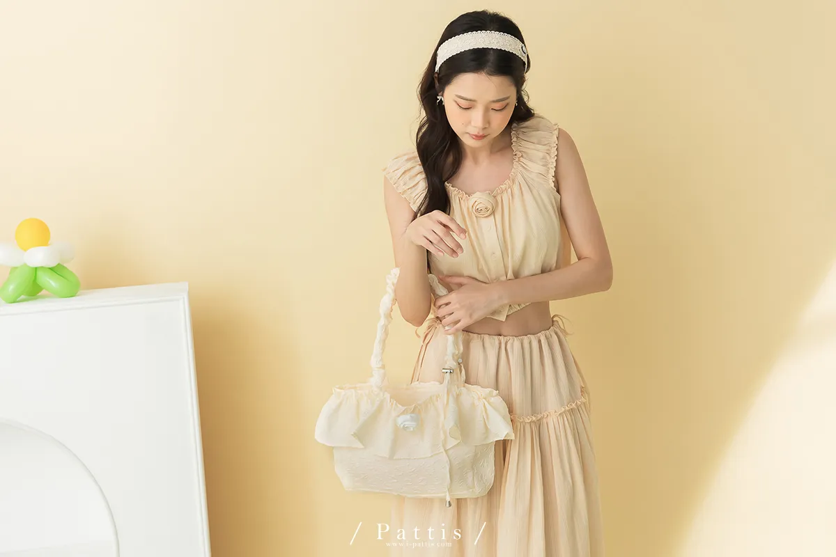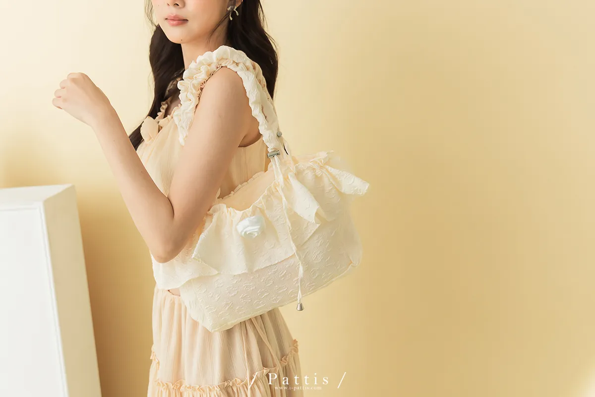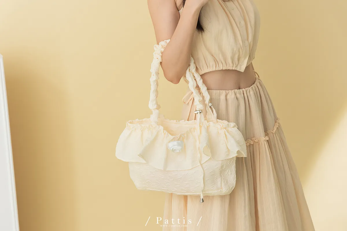 抽繩綴玫瑰花2way手提肩背包(米杏/淺藍)