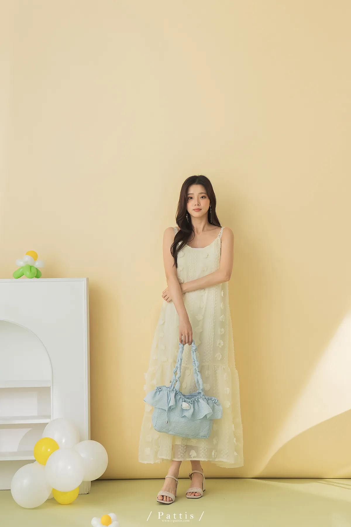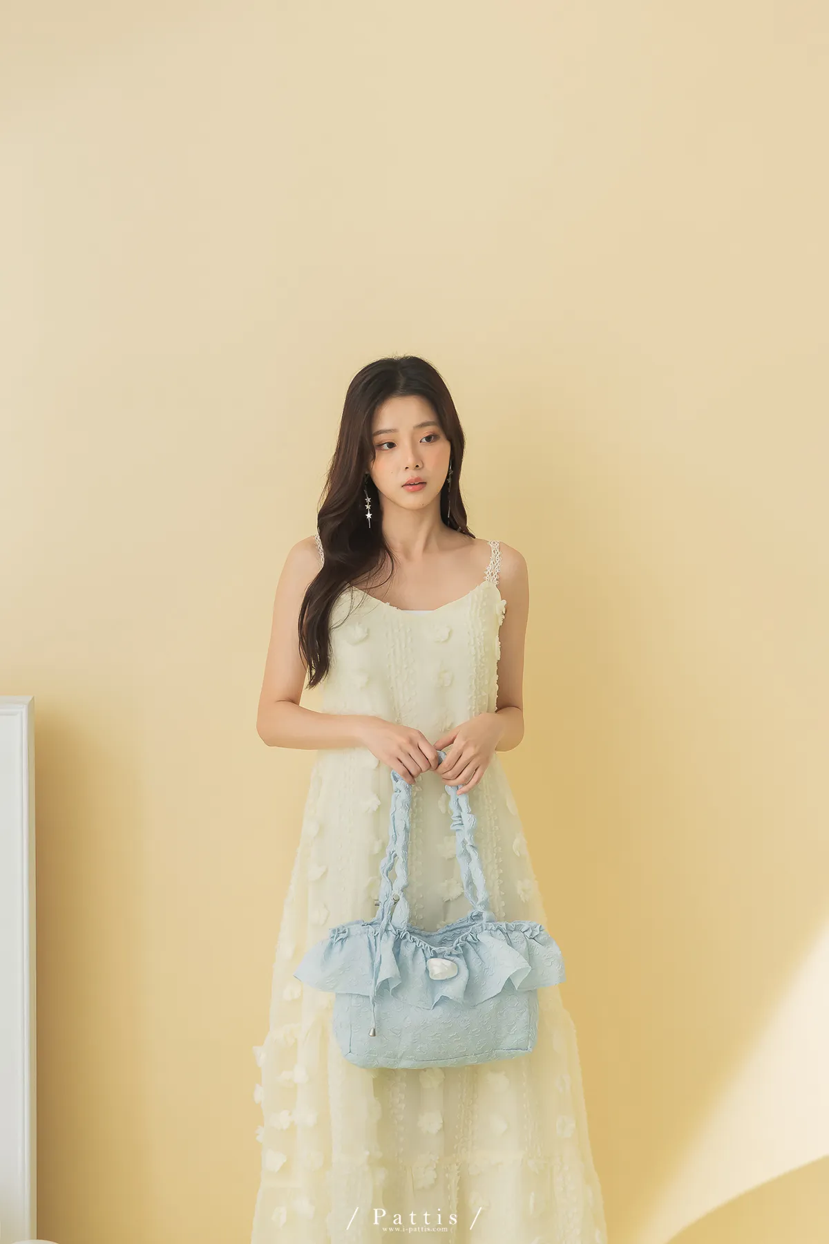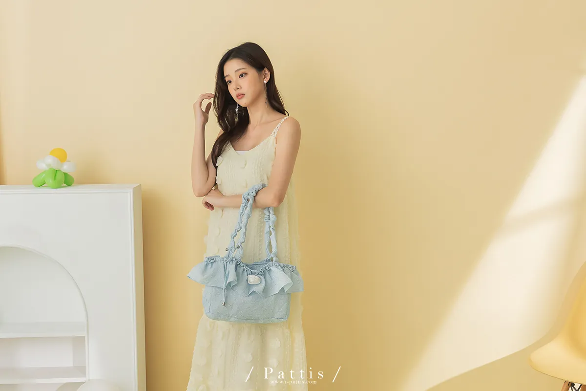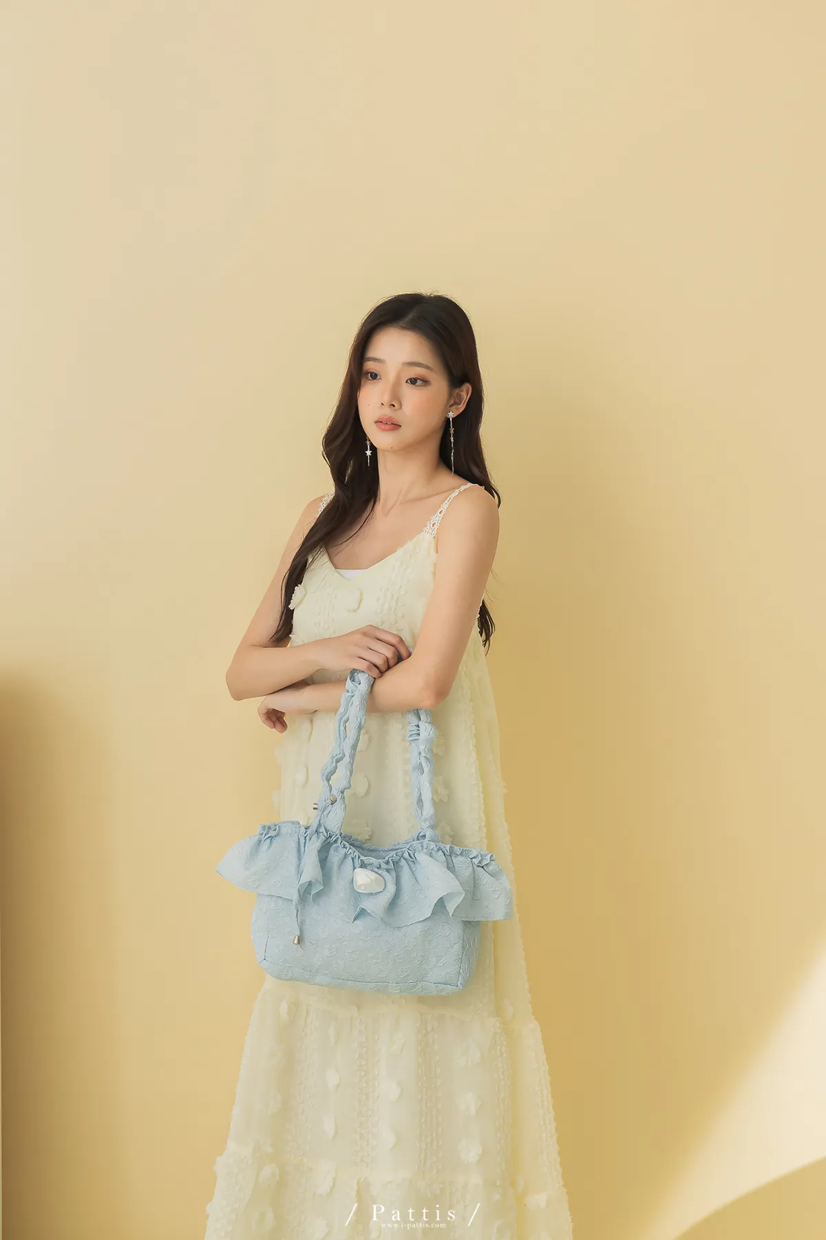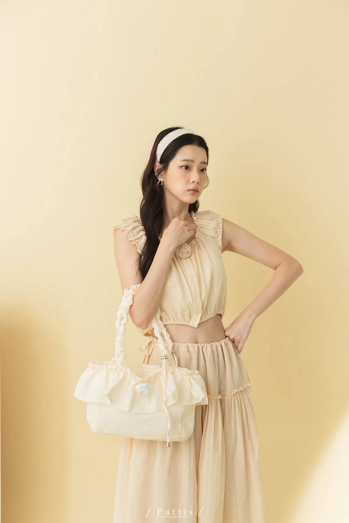 抽繩綴玫瑰花2way手提肩背包(米杏/淺藍)