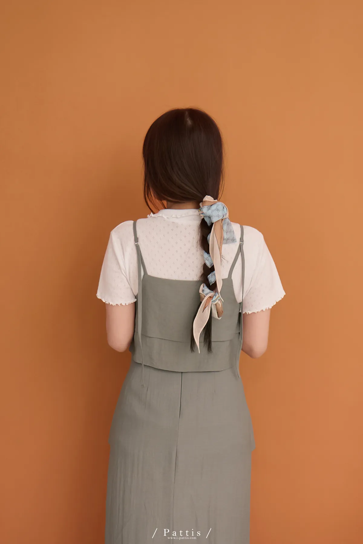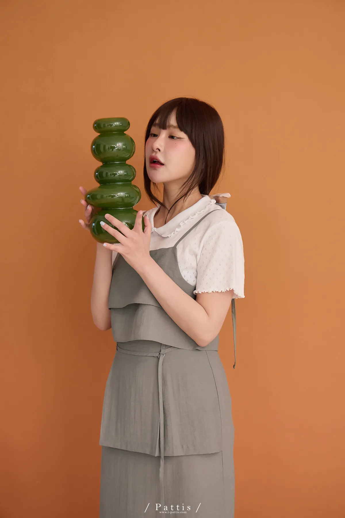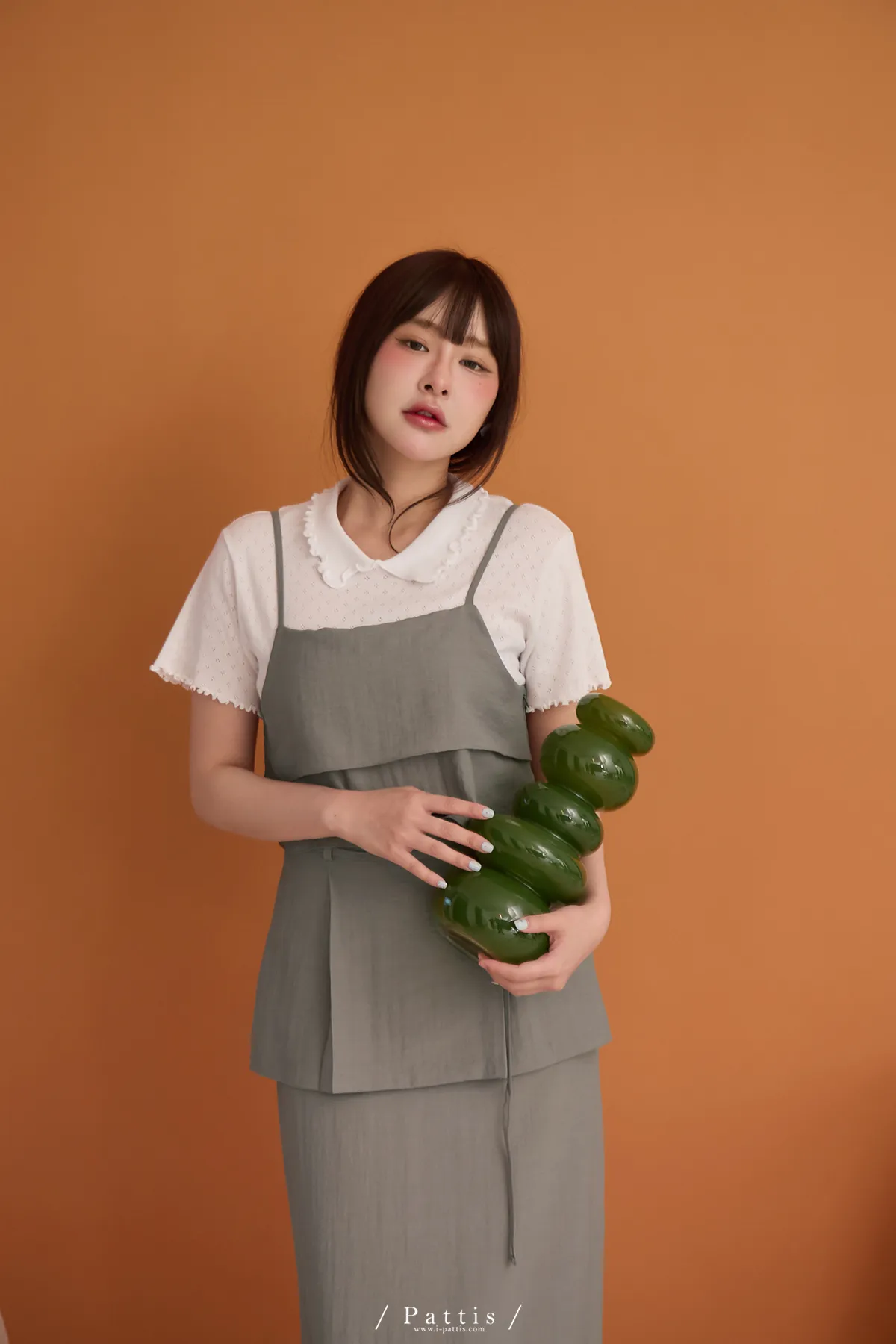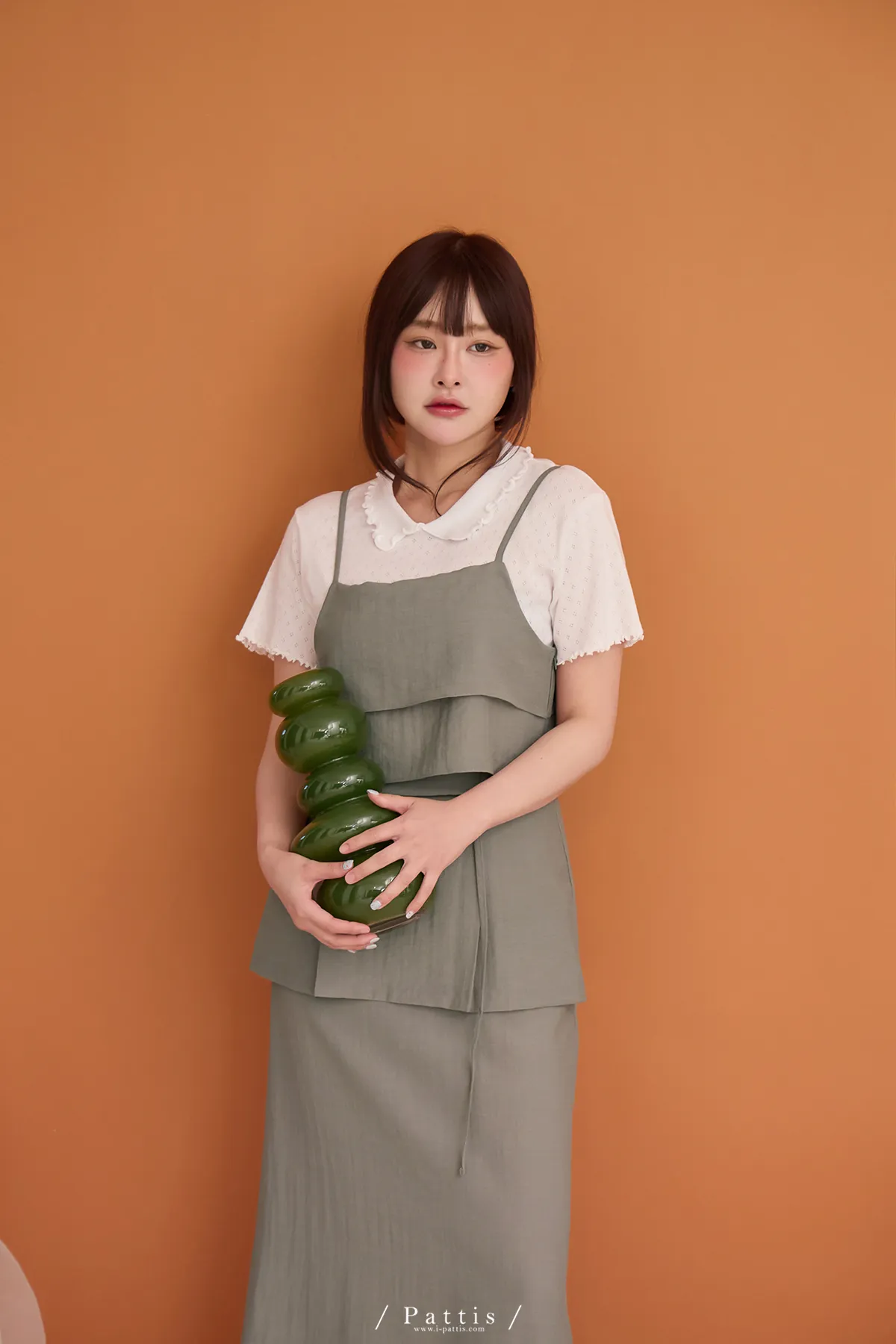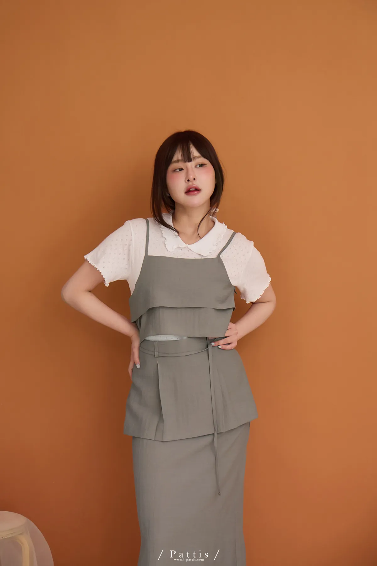 (現貨) 空氣裡的雨茶香 | (可分售)雙層吊帶背心+假兩件長裙set(灰)