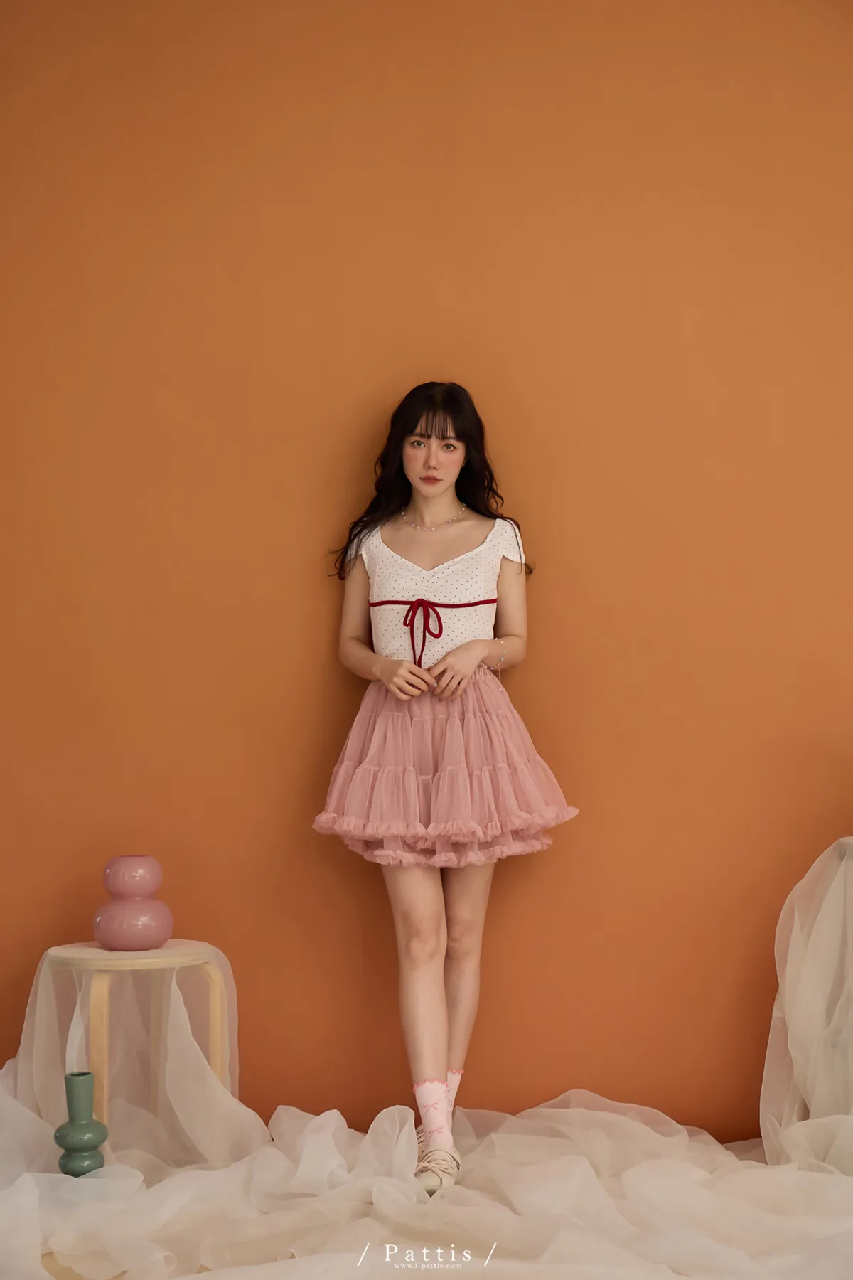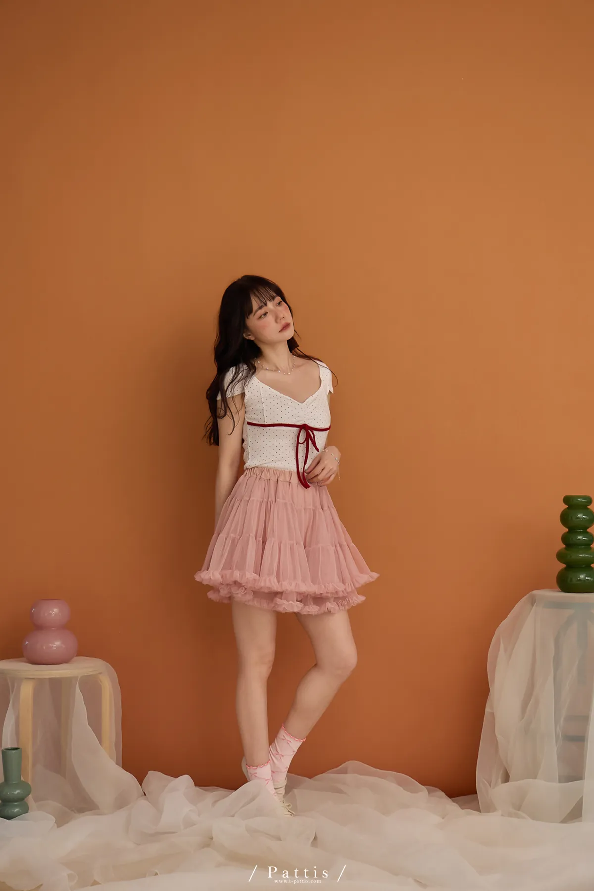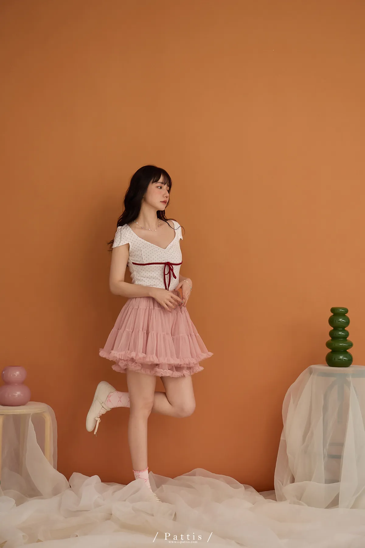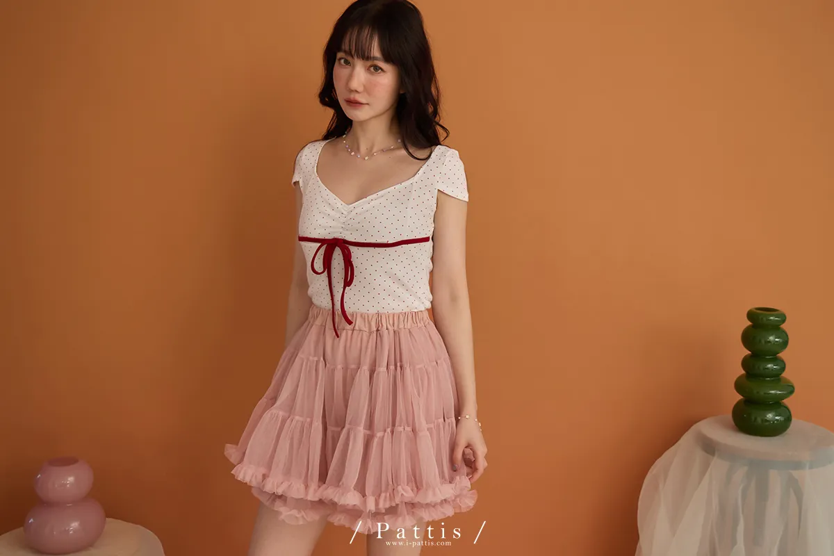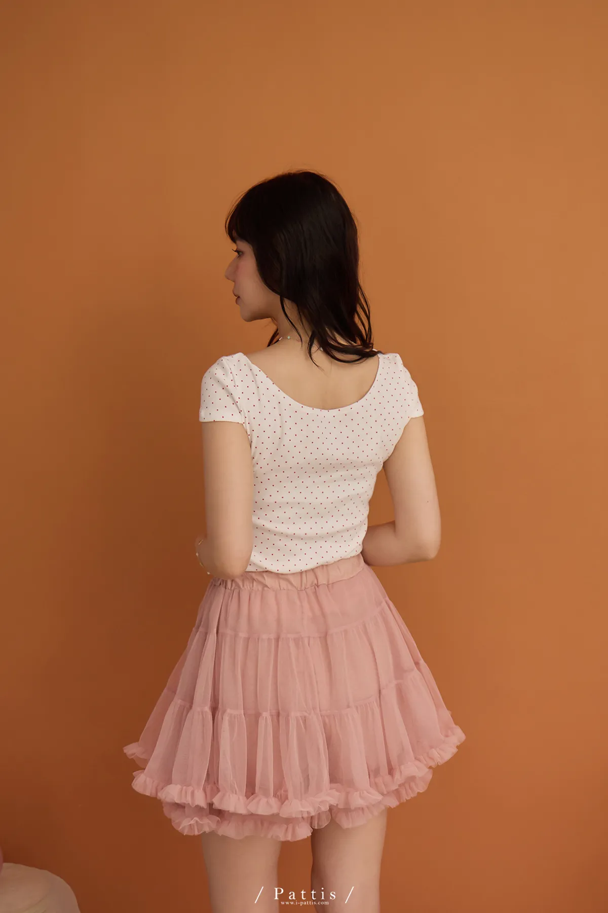 (現貨) 在巴黎交換禮物 | 桃心領小蓋袖點點蝴蝶結短上衣(白)