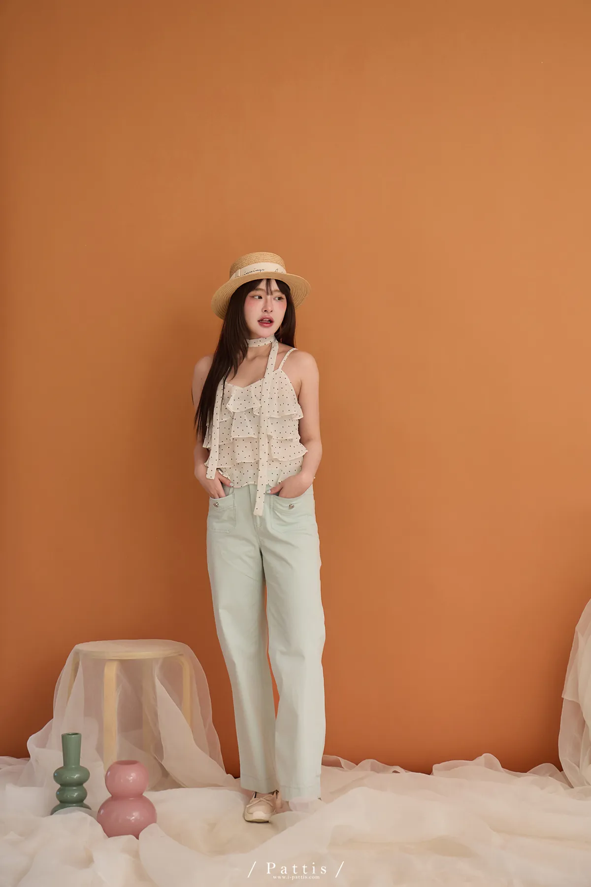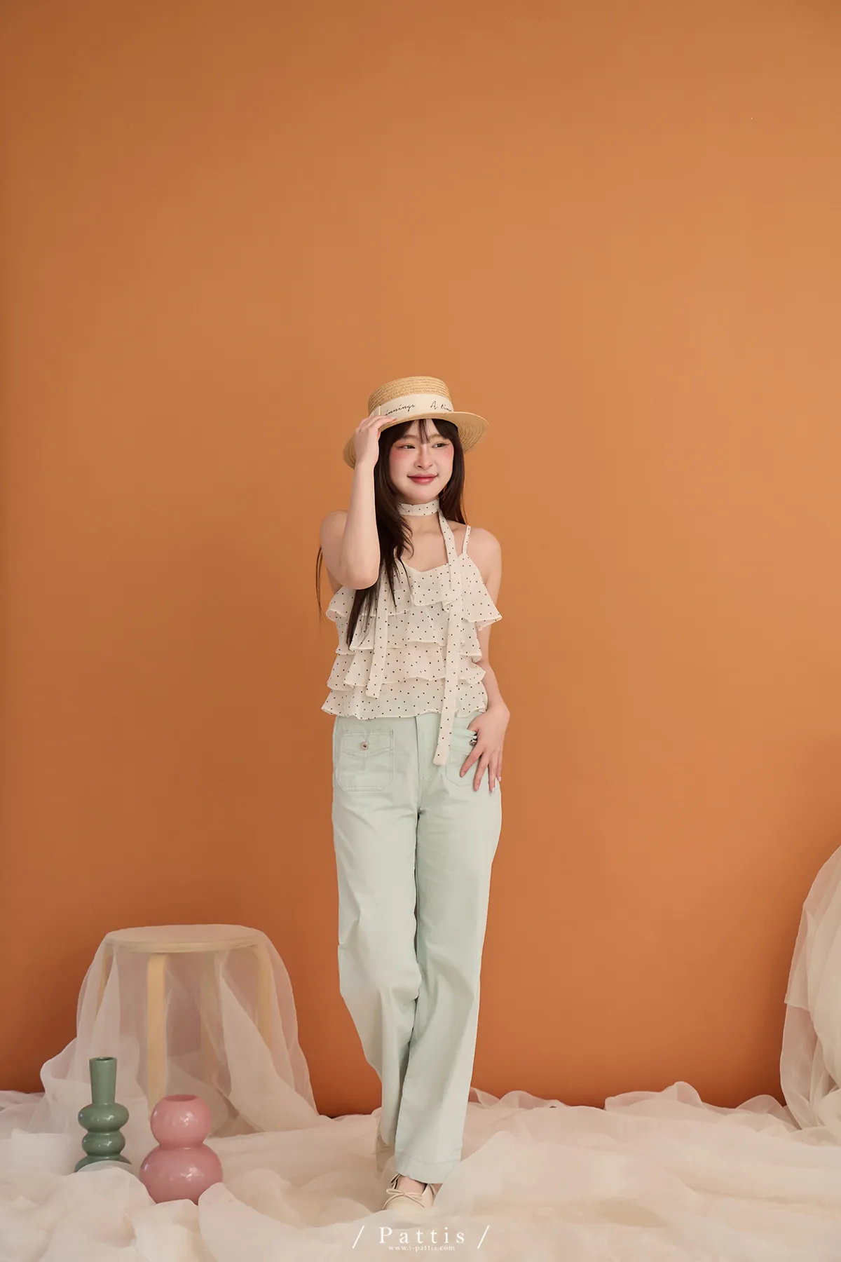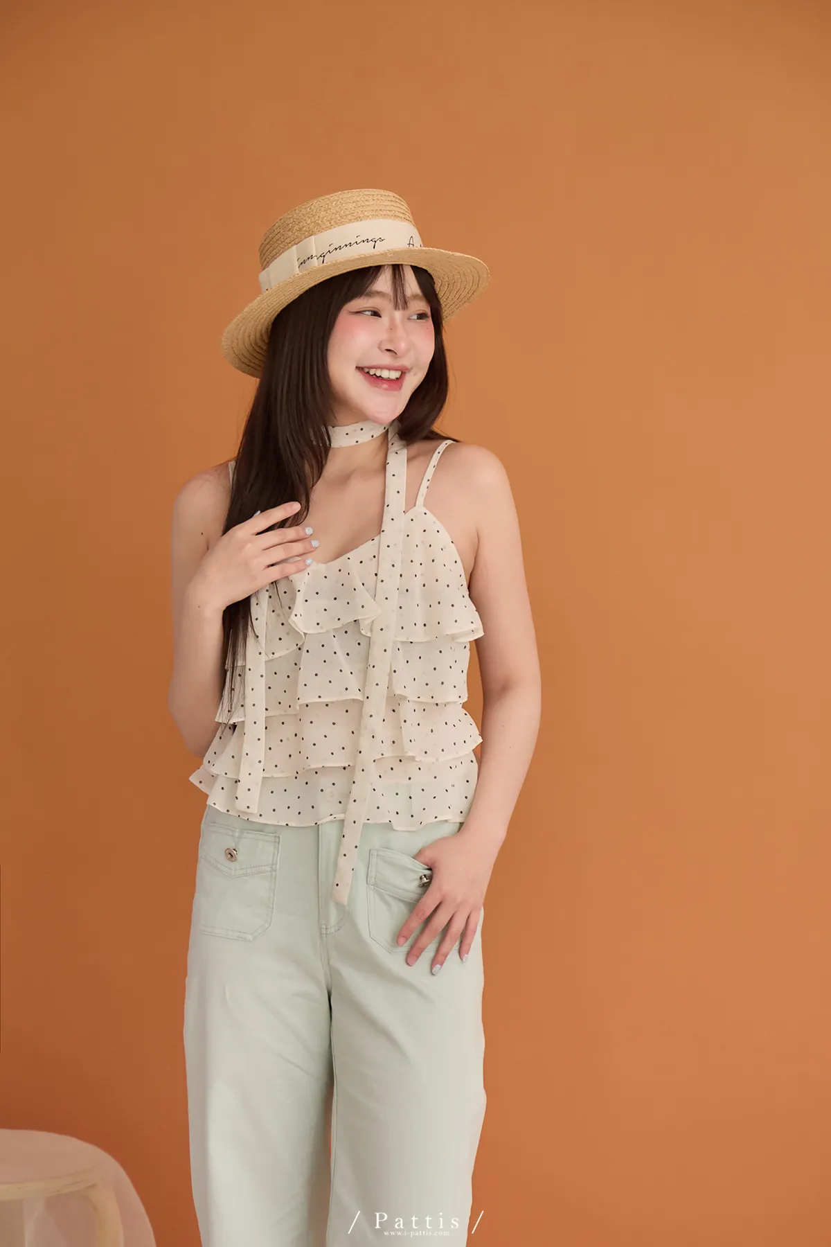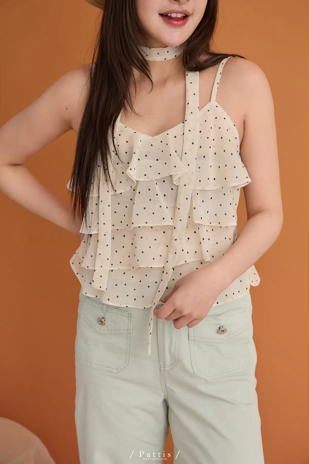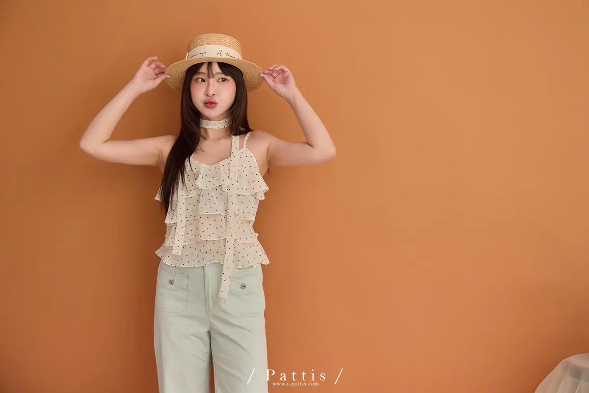 (現貨) 人造許願樹 | 雪紡點點層次蛋糕背心+領巾set(米杏)