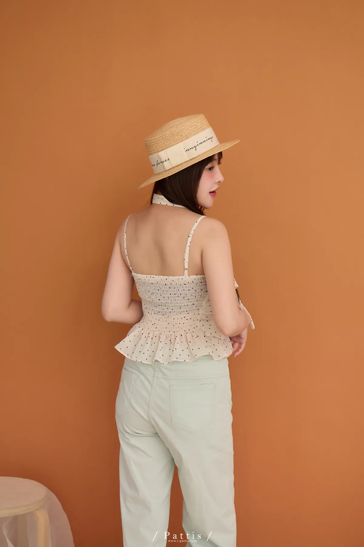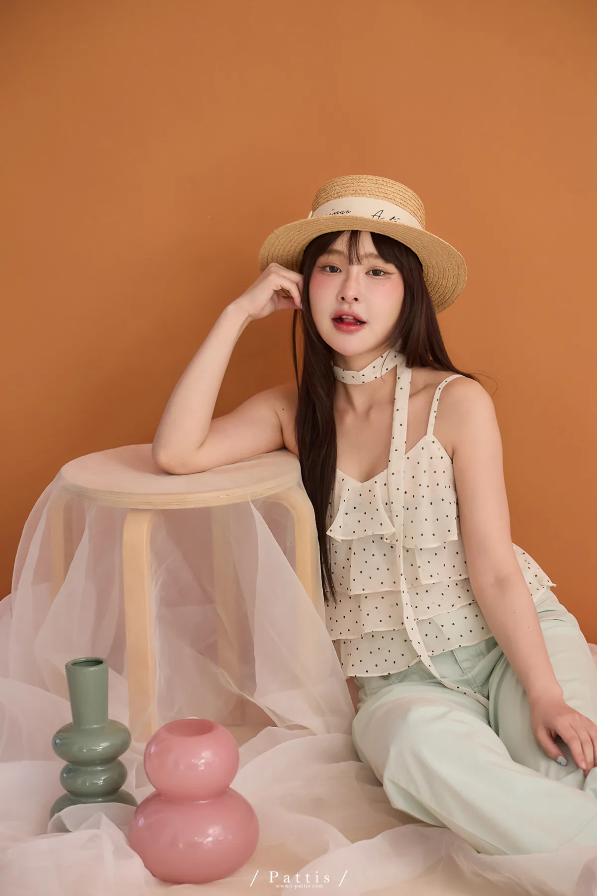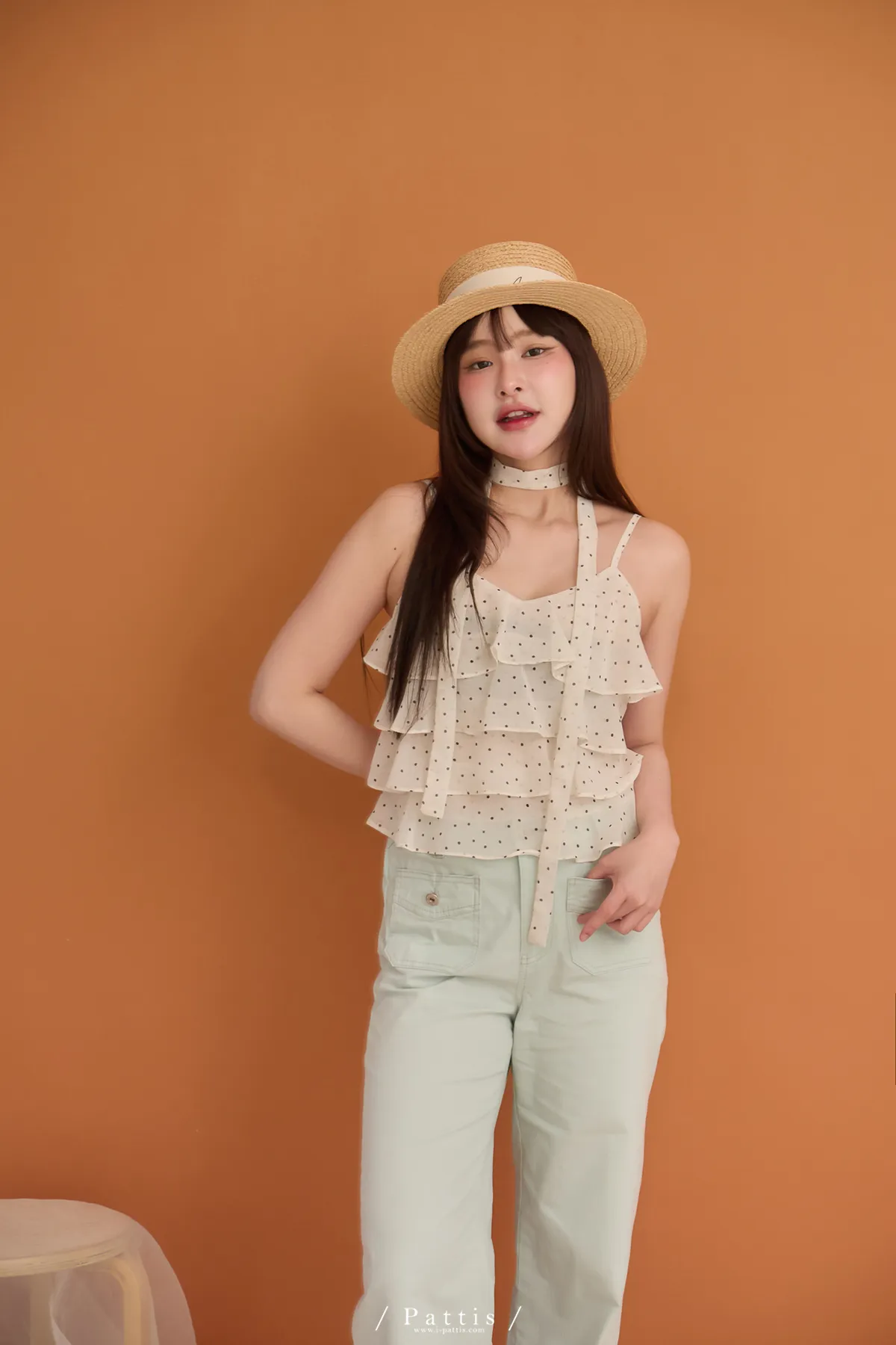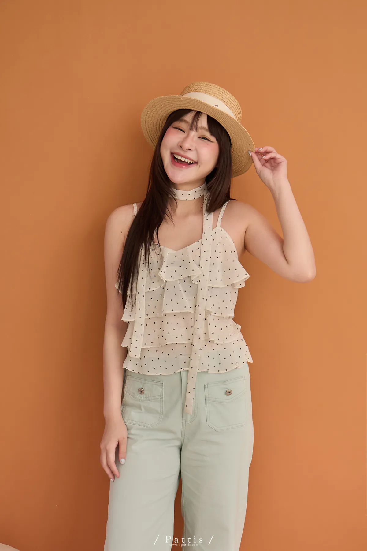 (現貨) 人造許願樹 | 雪紡點點層次蛋糕背心+領巾set(米杏)