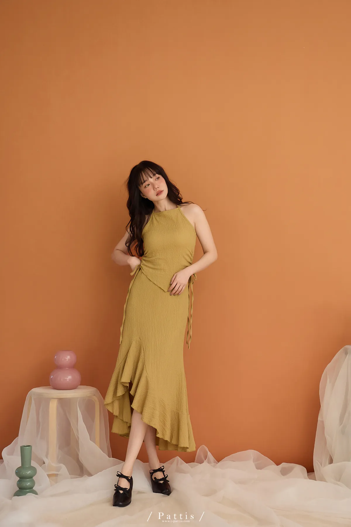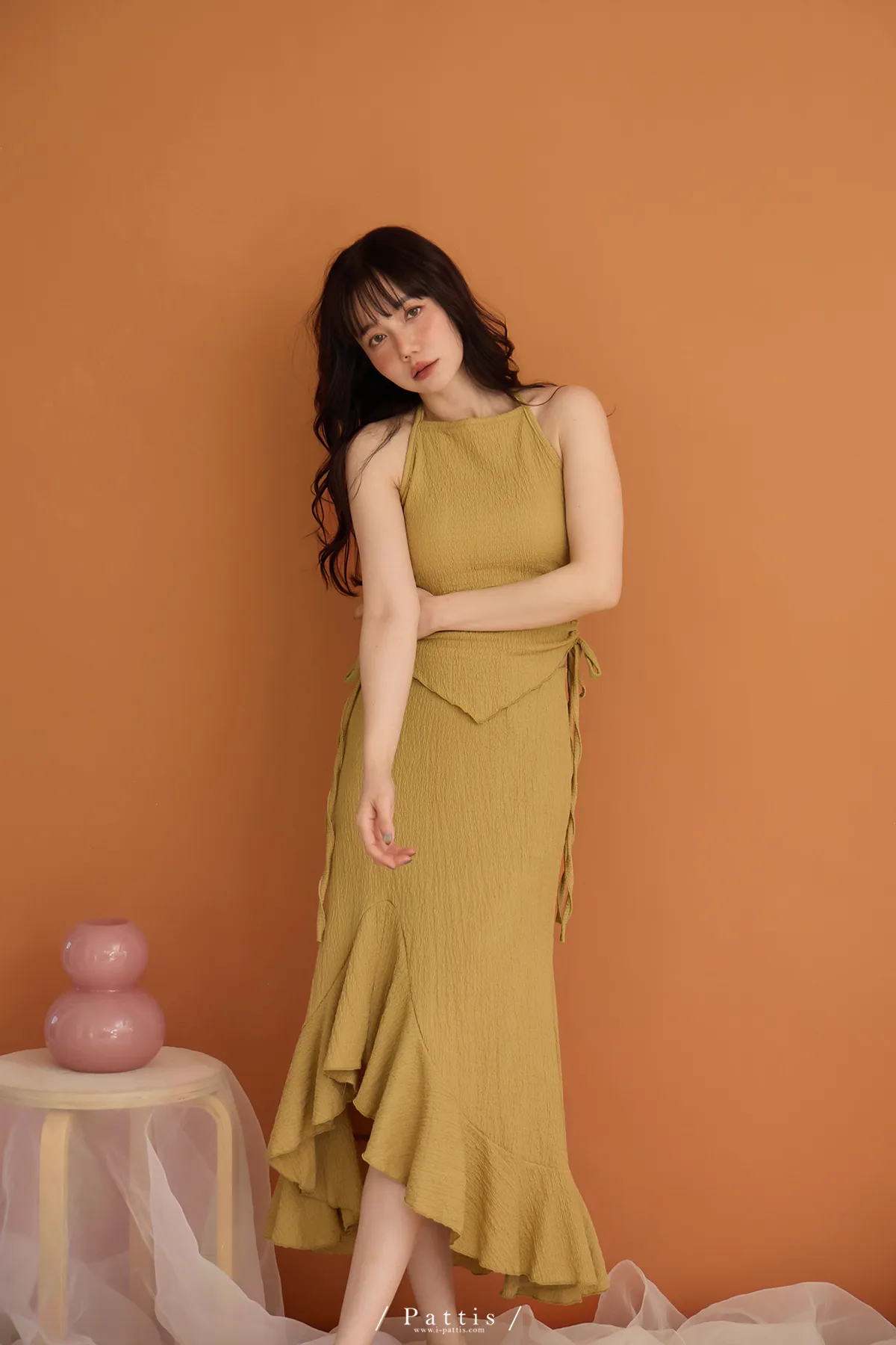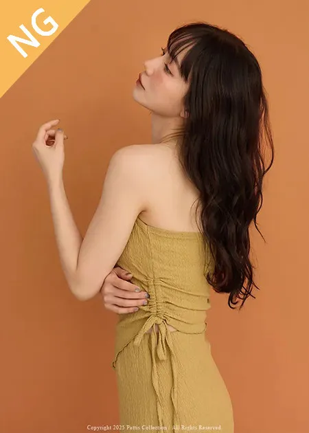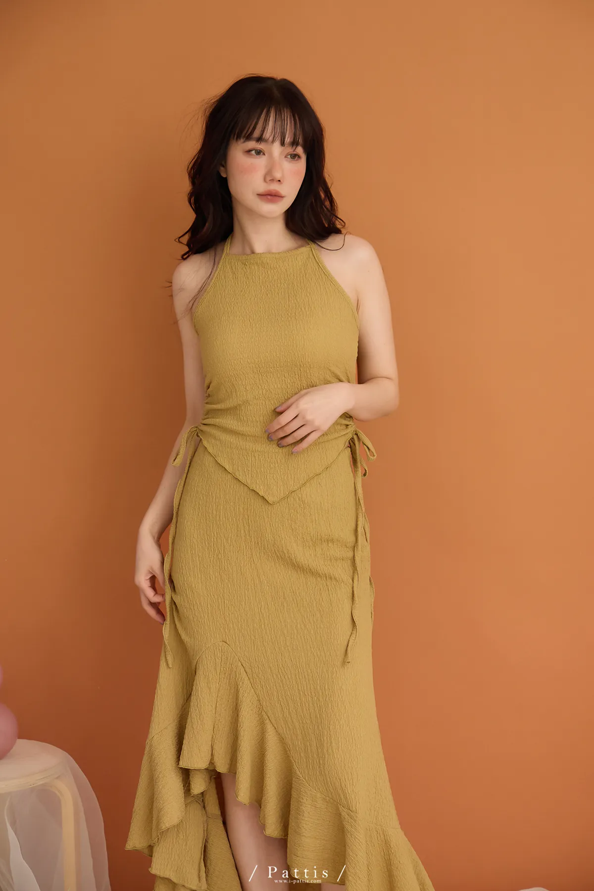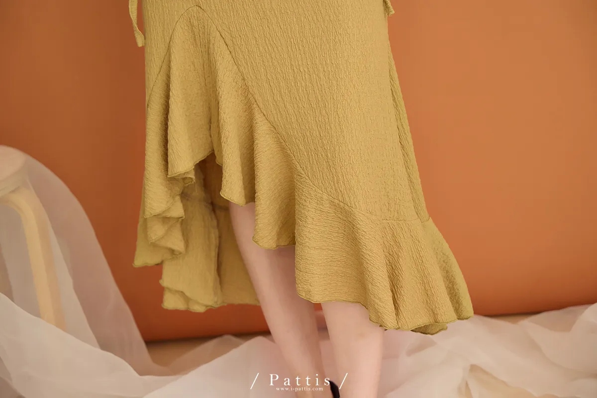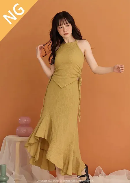 / NG品 原價$1380/削肩V尾上衣+荷葉魚尾裙set(芥末黃)