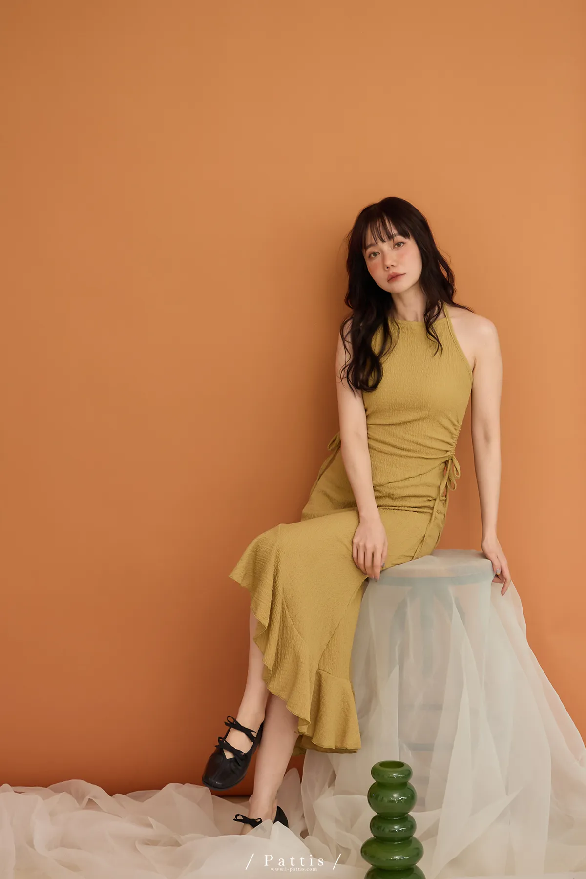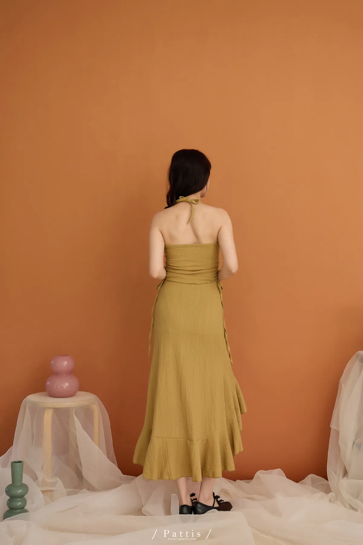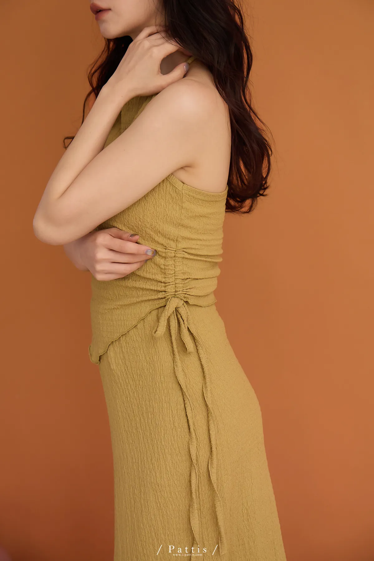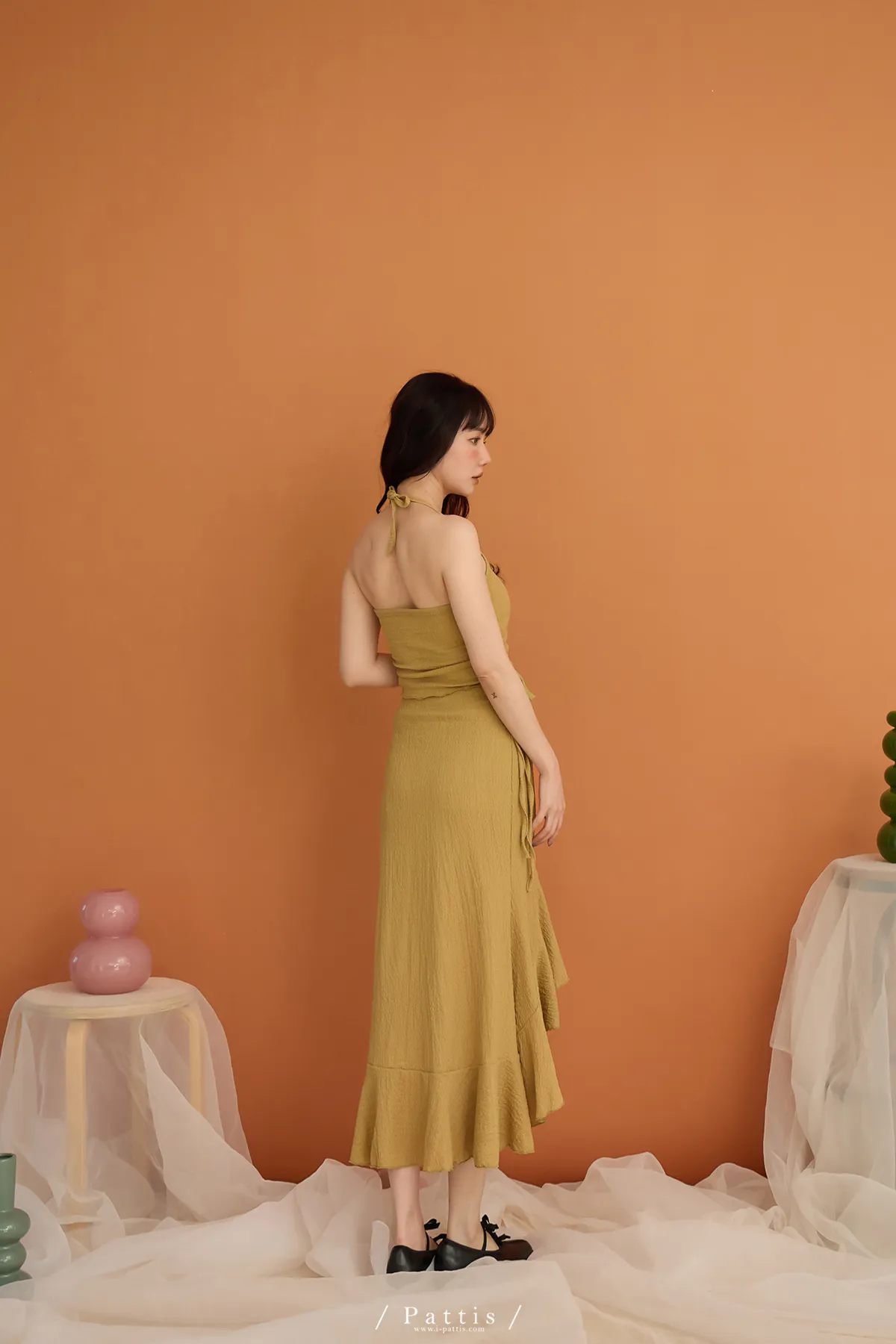 / NG品 原價$1380/削肩V尾上衣+荷葉魚尾裙set(芥末黃)