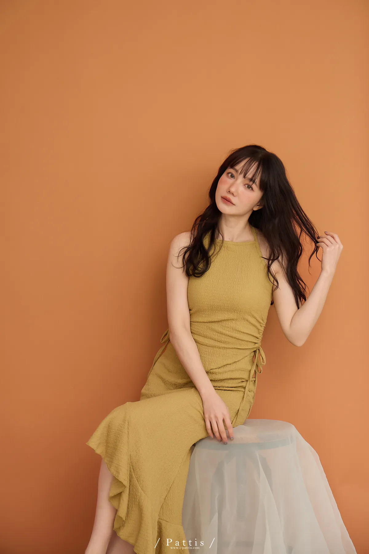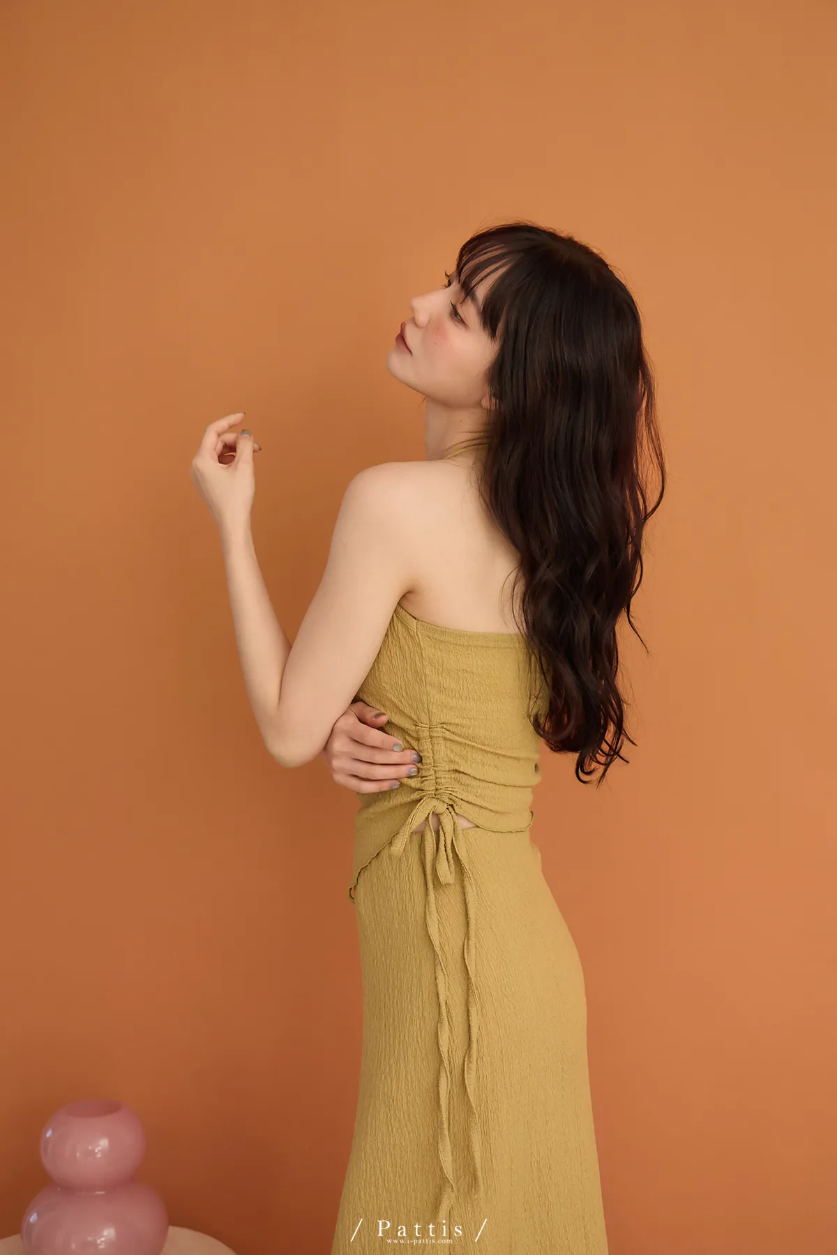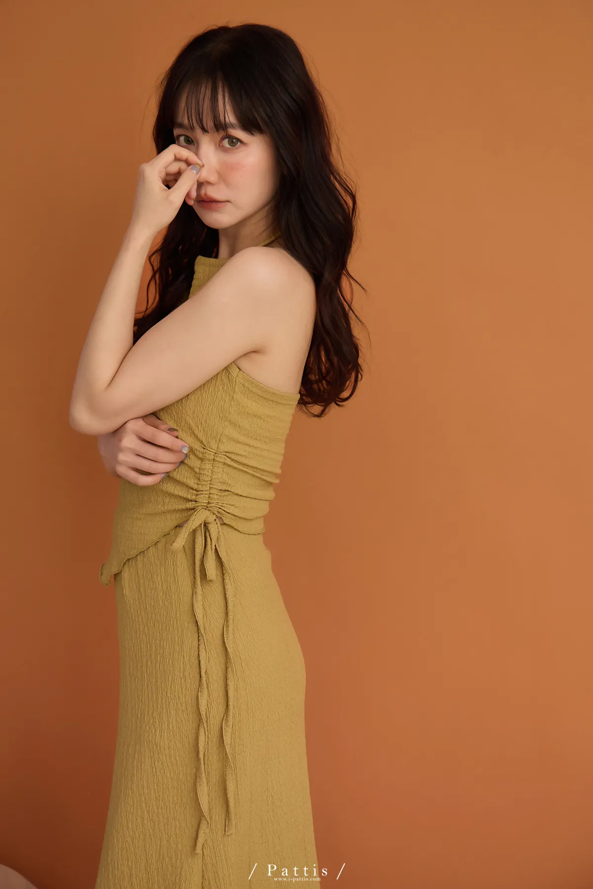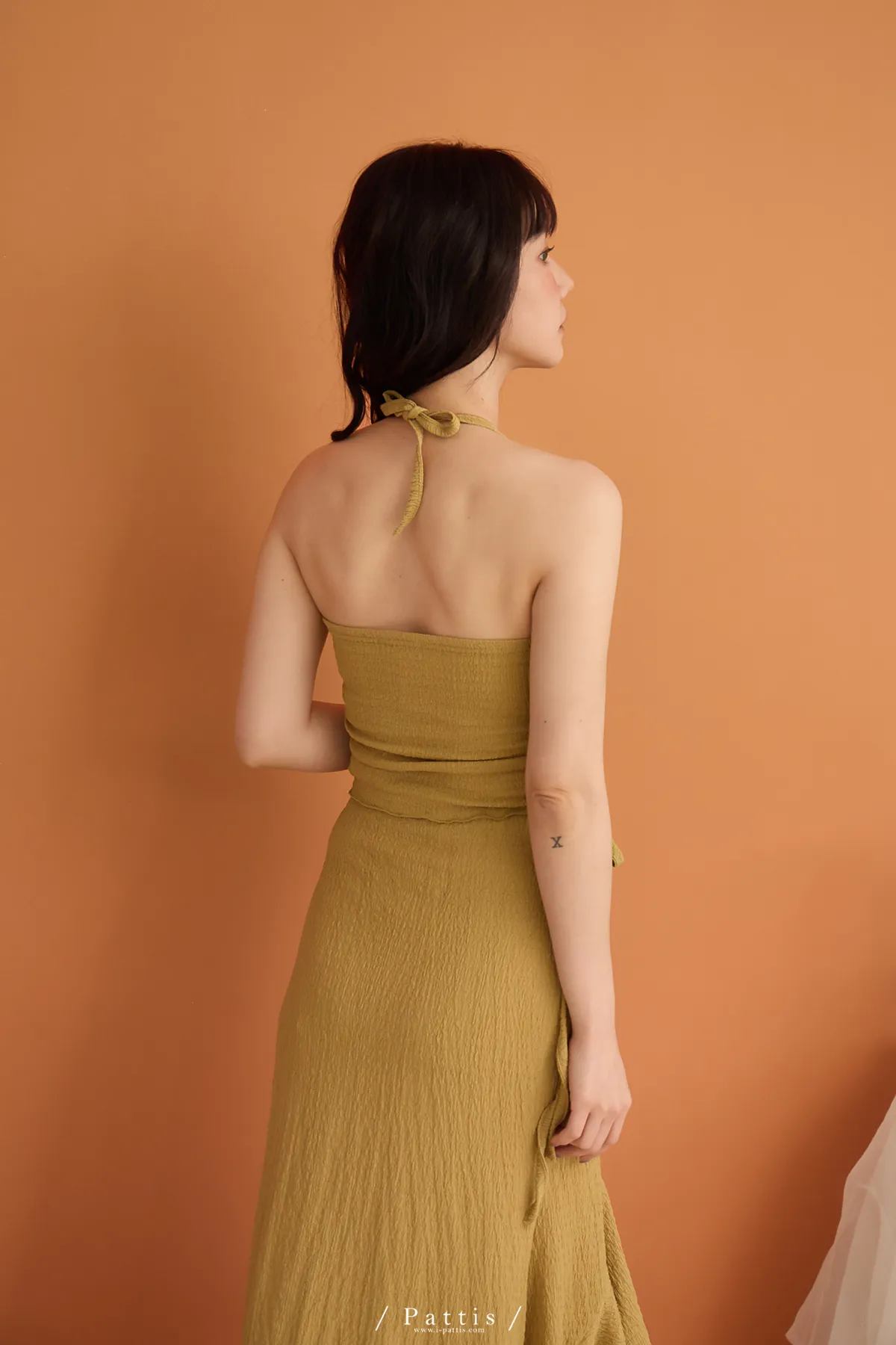 / NG品 原價$1380/削肩V尾上衣+荷葉魚尾裙set(芥末黃)