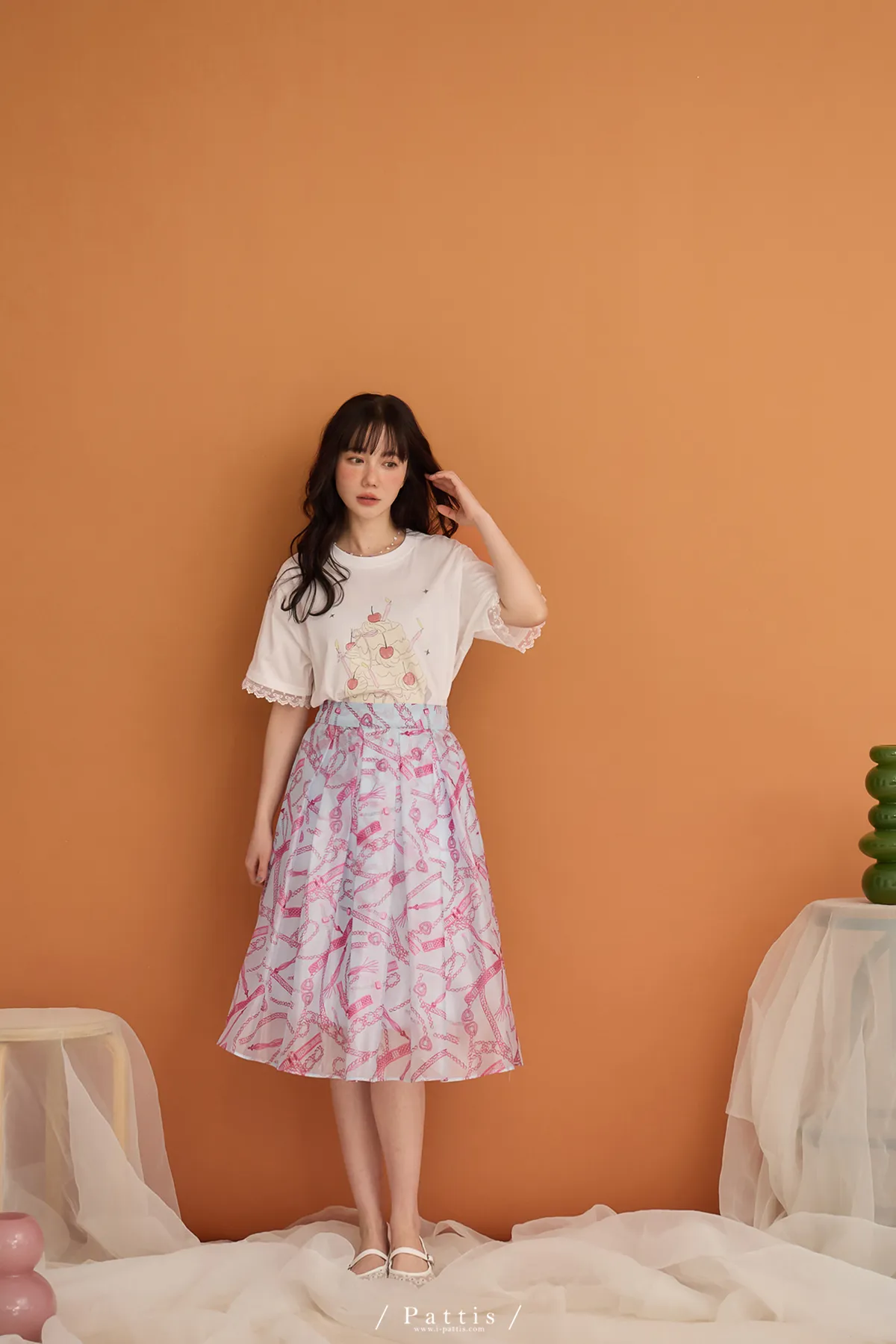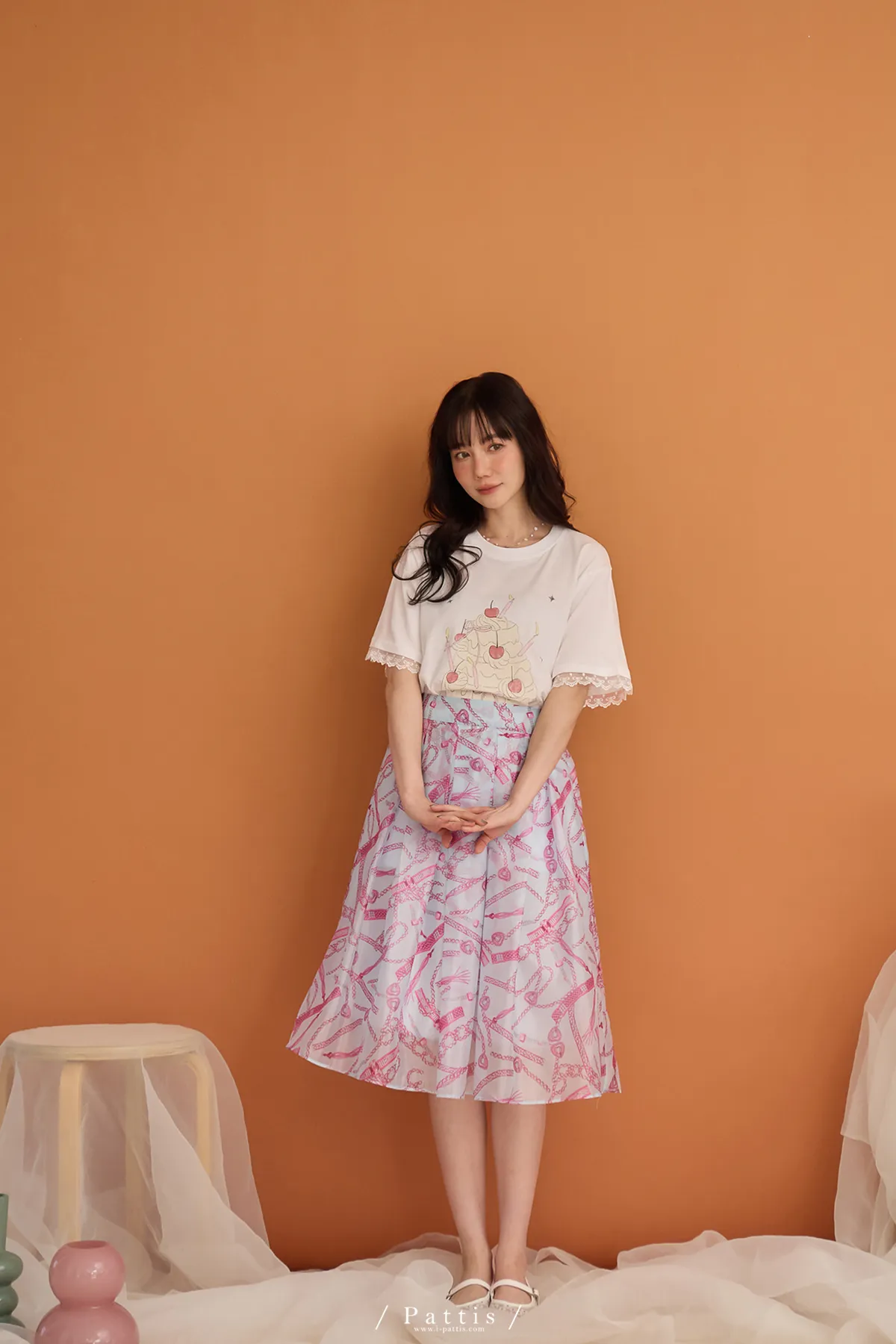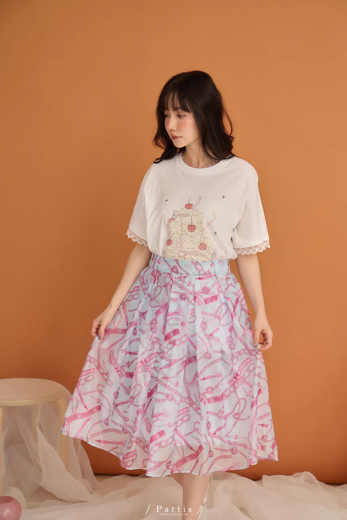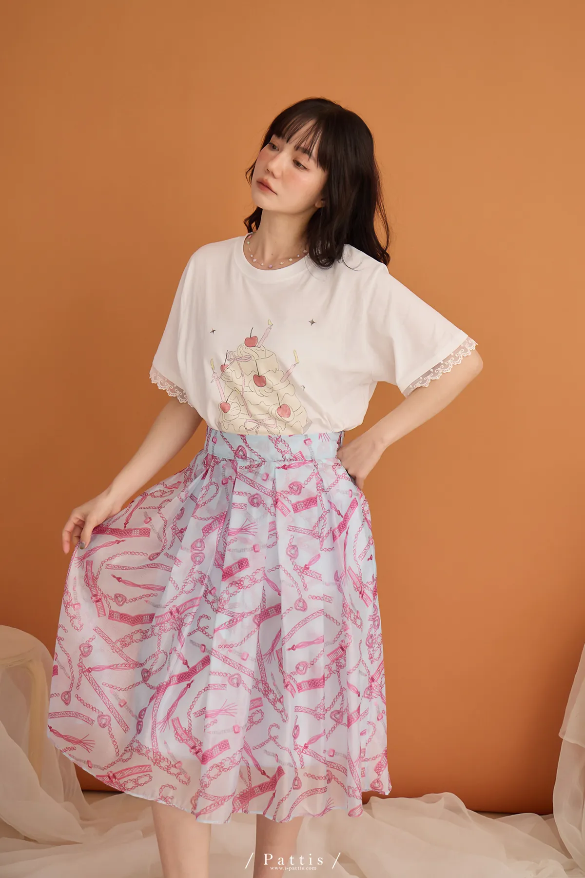 (現貨) 玻璃紙 | 珠寶印花絲光壓褶長裙(桃淺藍)
