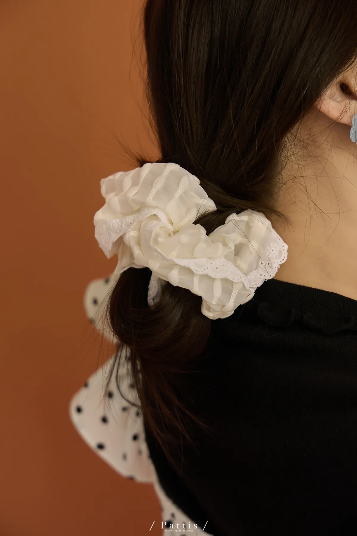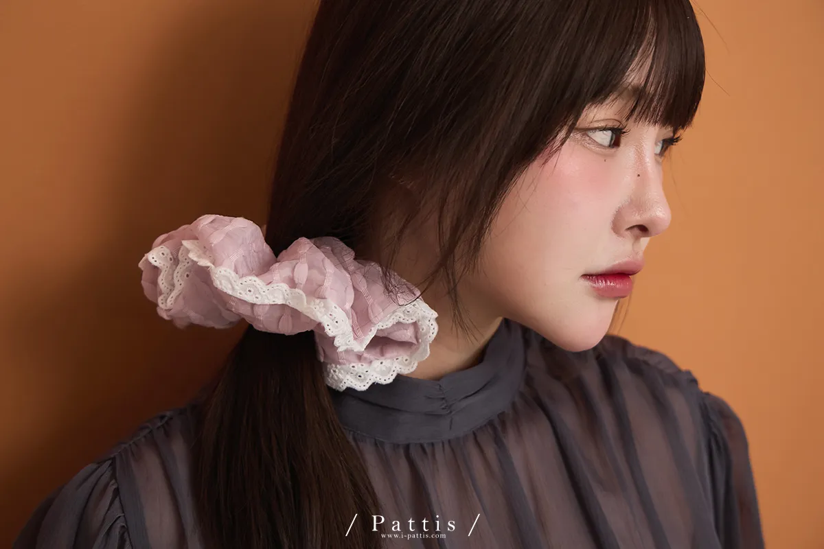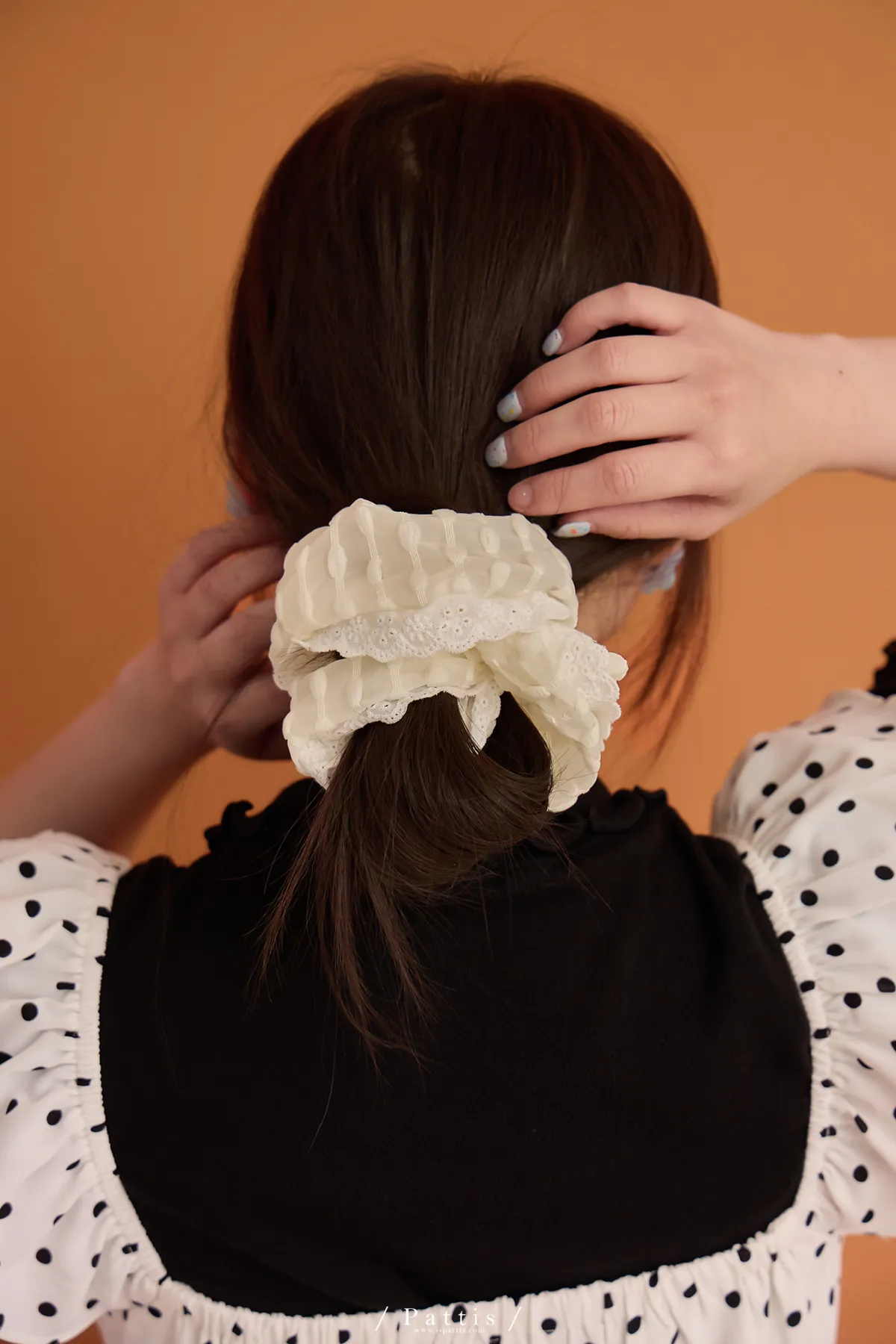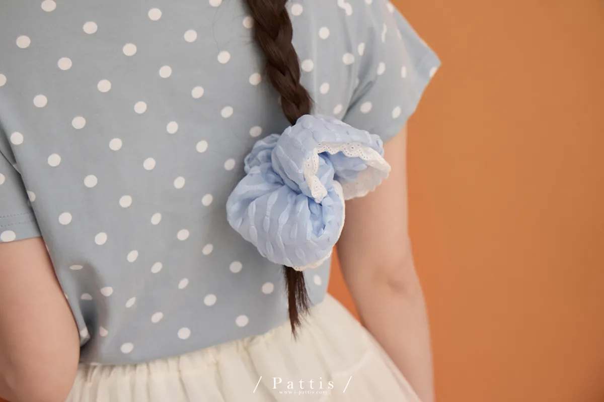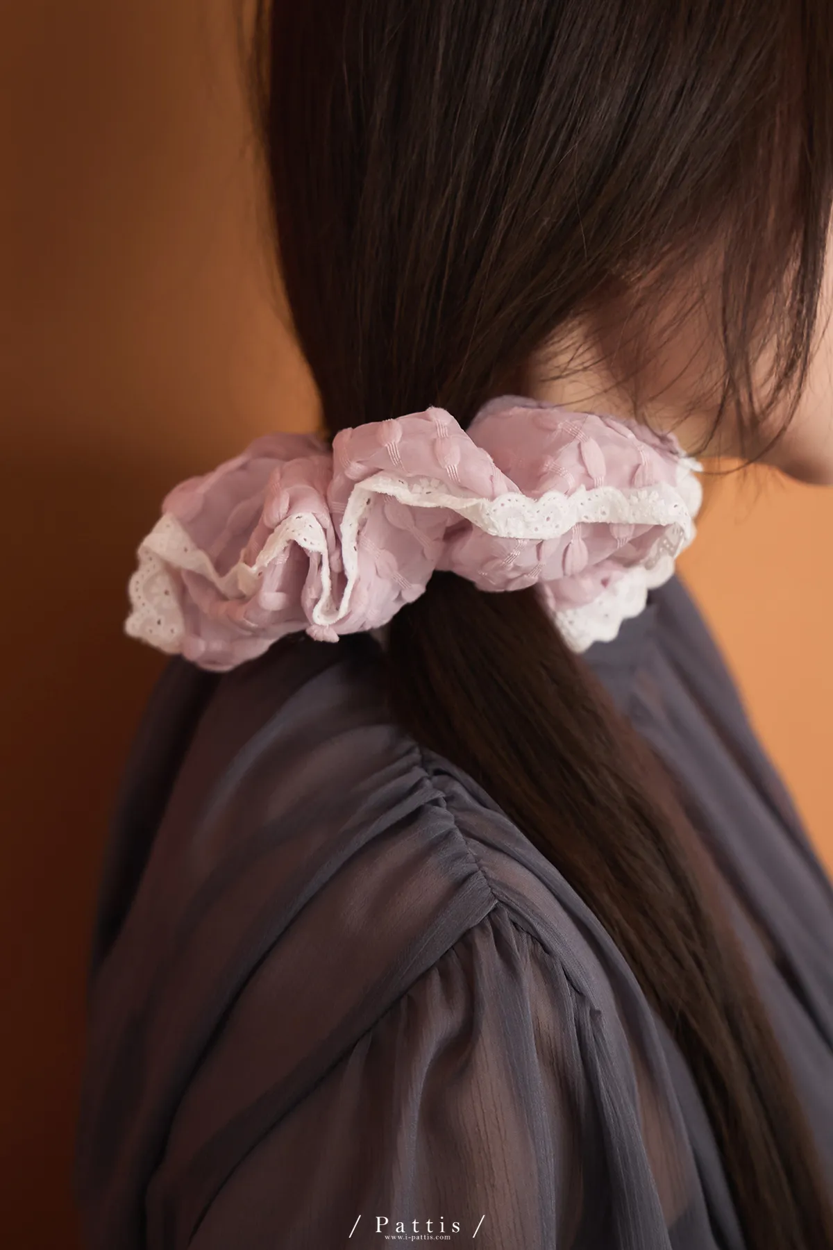 (現貨) 布蕾絲滾邊浮雕點點髮圈(米黃/粉紫/藍)