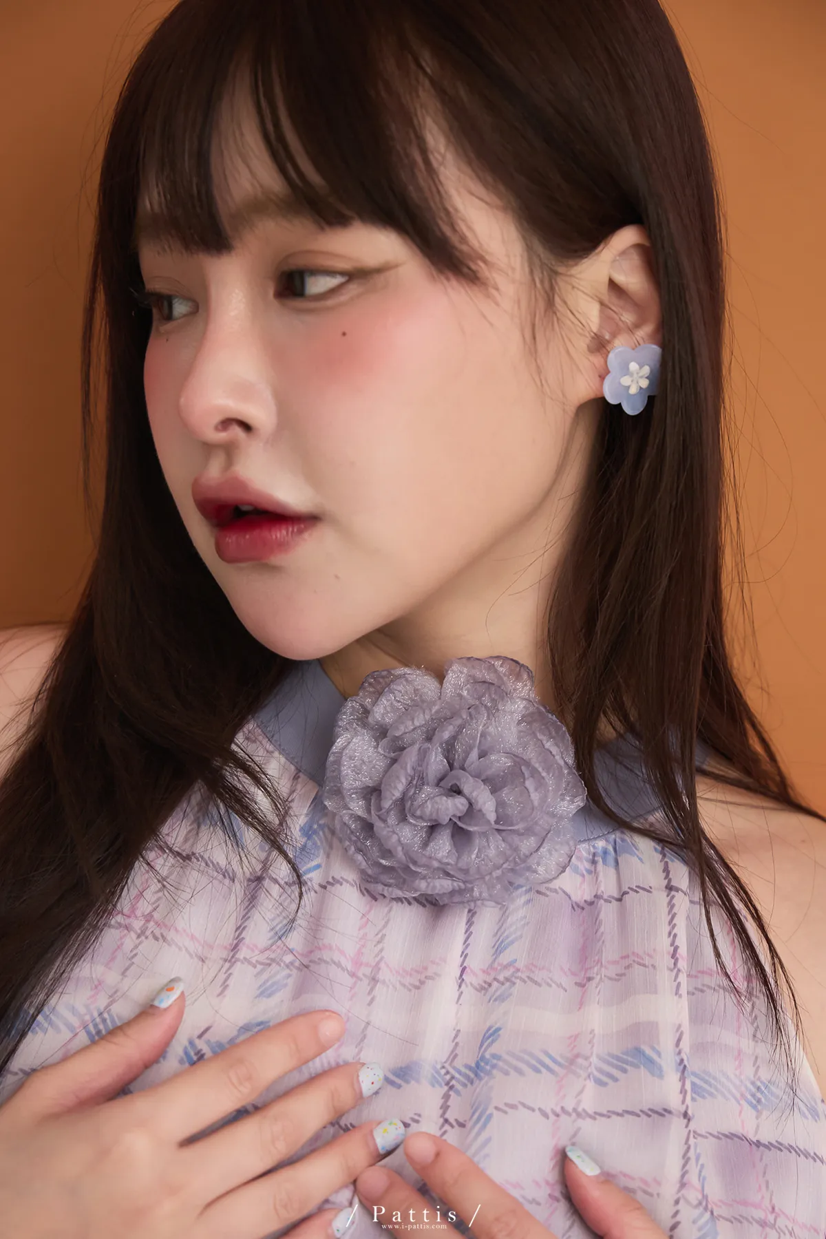 (現貨) 多瓣大理花珍珠紗2way髮夾別針(橘粉杏/灰藍紫)