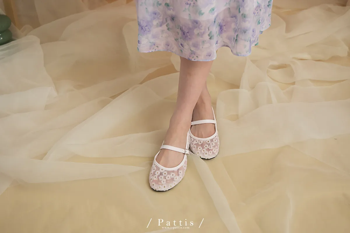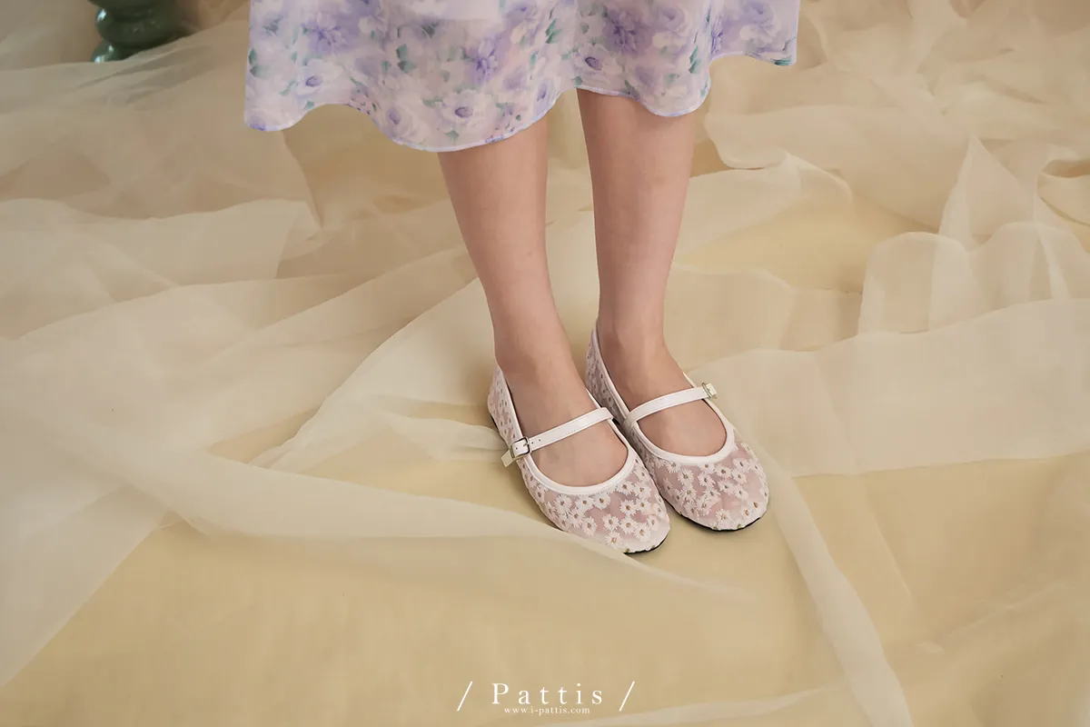 (現貨-白23.5)立體刺繡小花瑪莉珍鞋(白/紫)