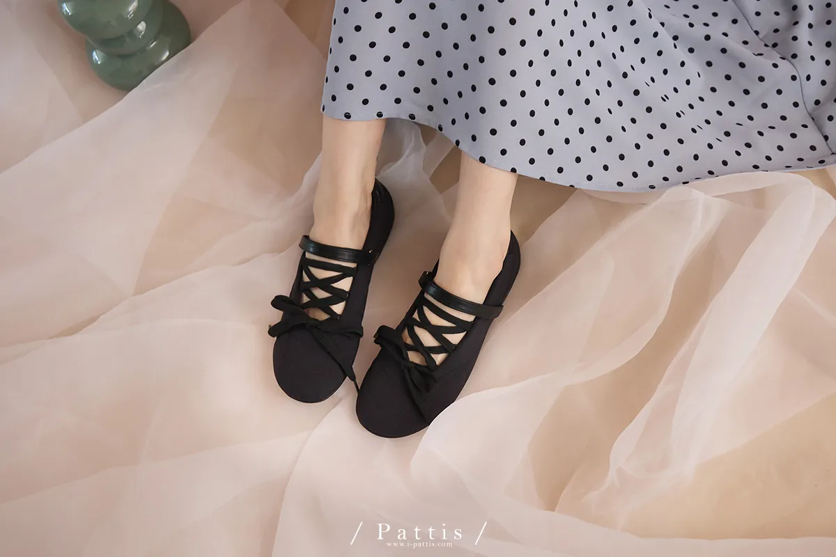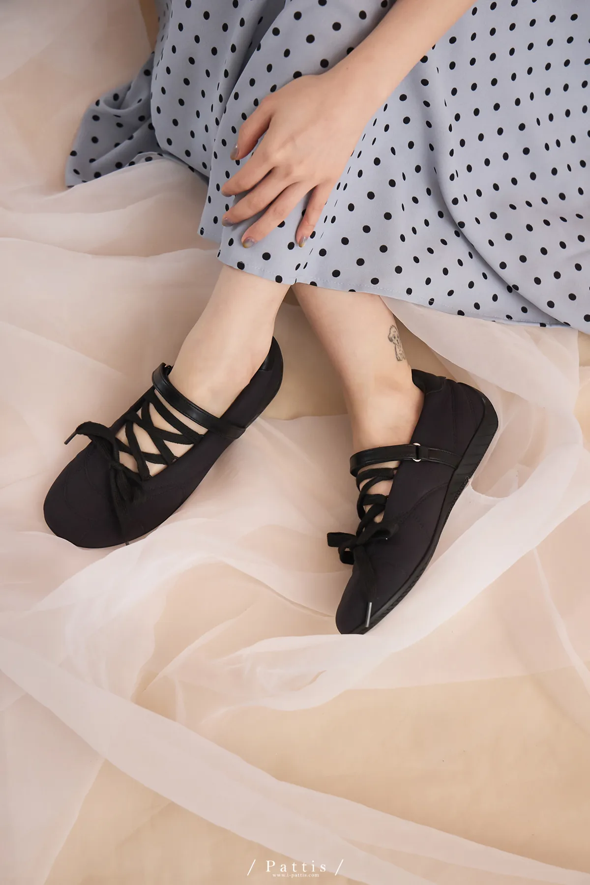 (現貨-黑24.0)交叉綁帶圓頭平底鞋(米白/黑)
