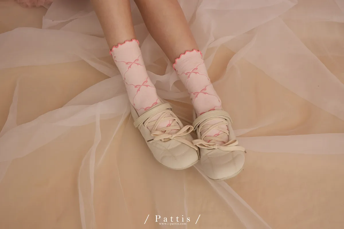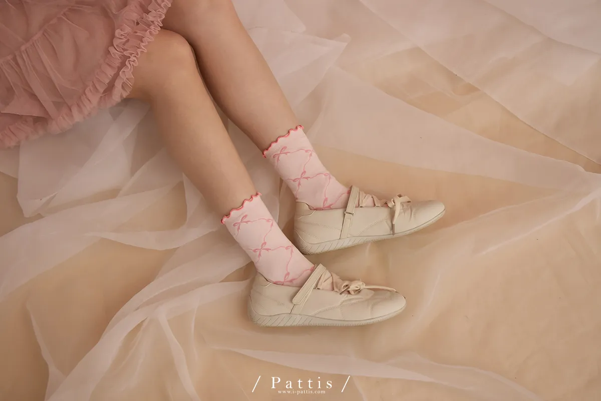 鞋面有車線+格紋狀的布面感,加上棉繩交叉綁帶(蝴蝶結在鞋頭也很少見)