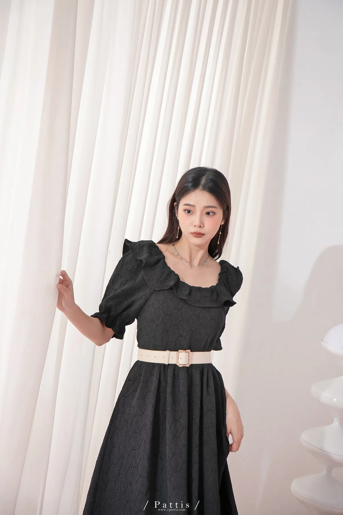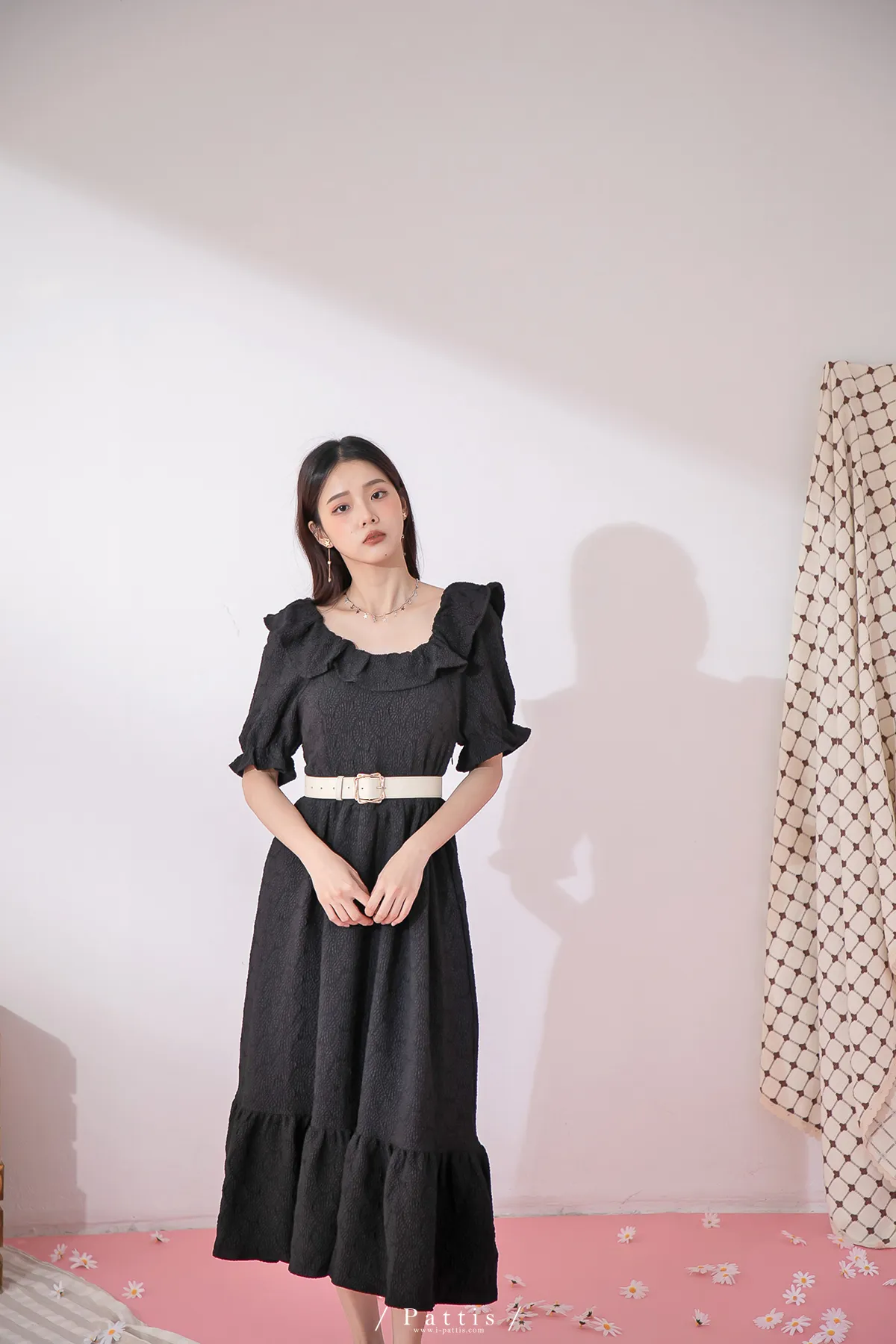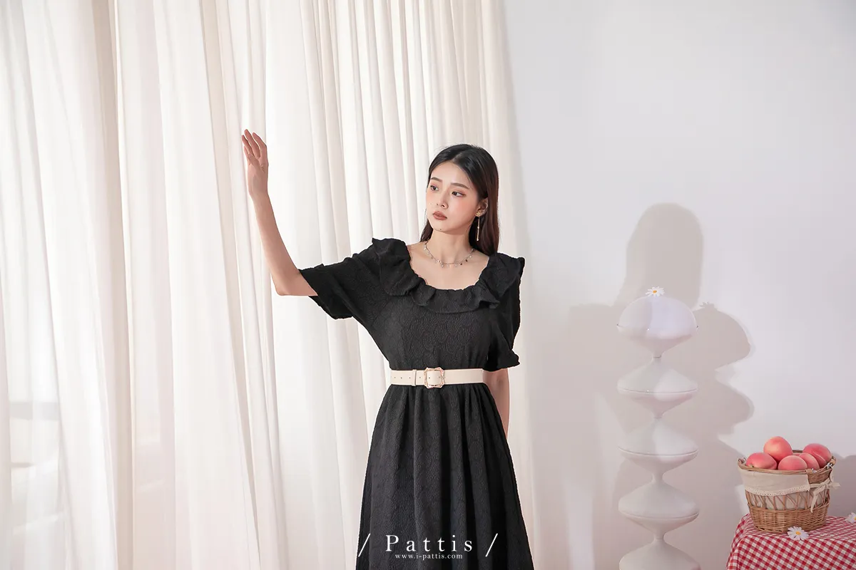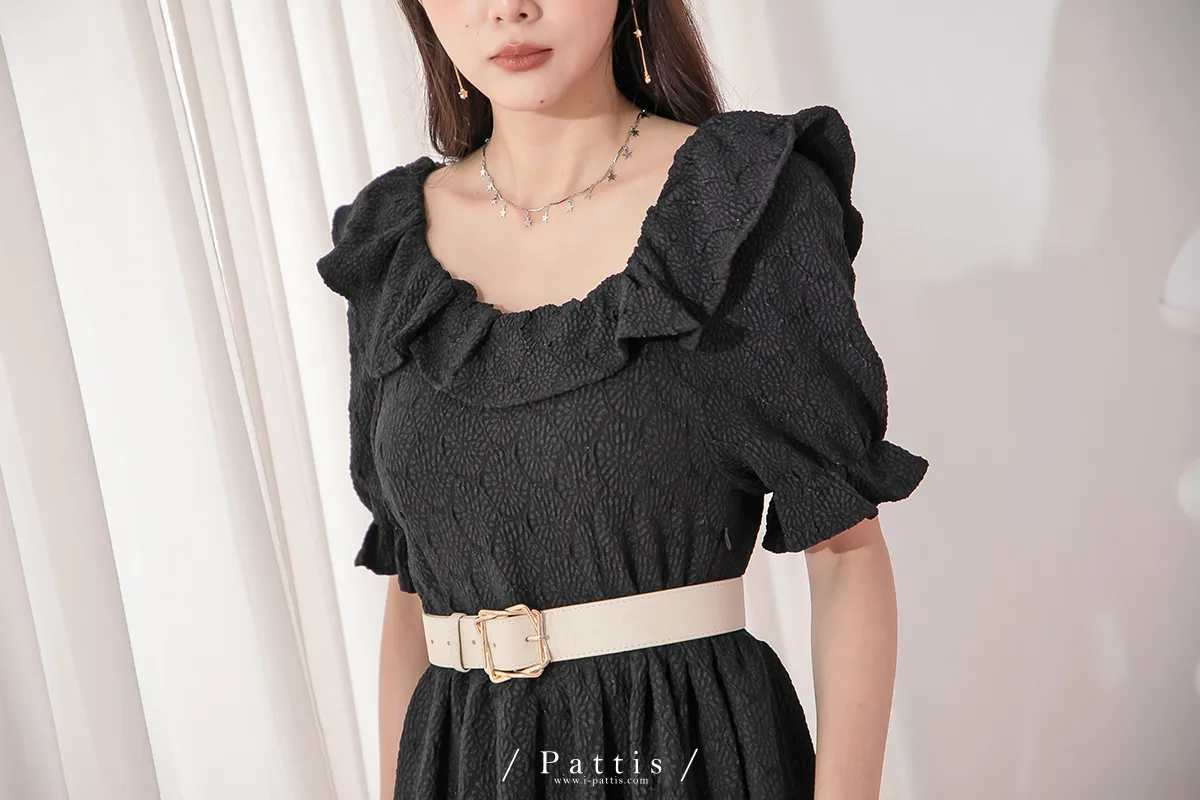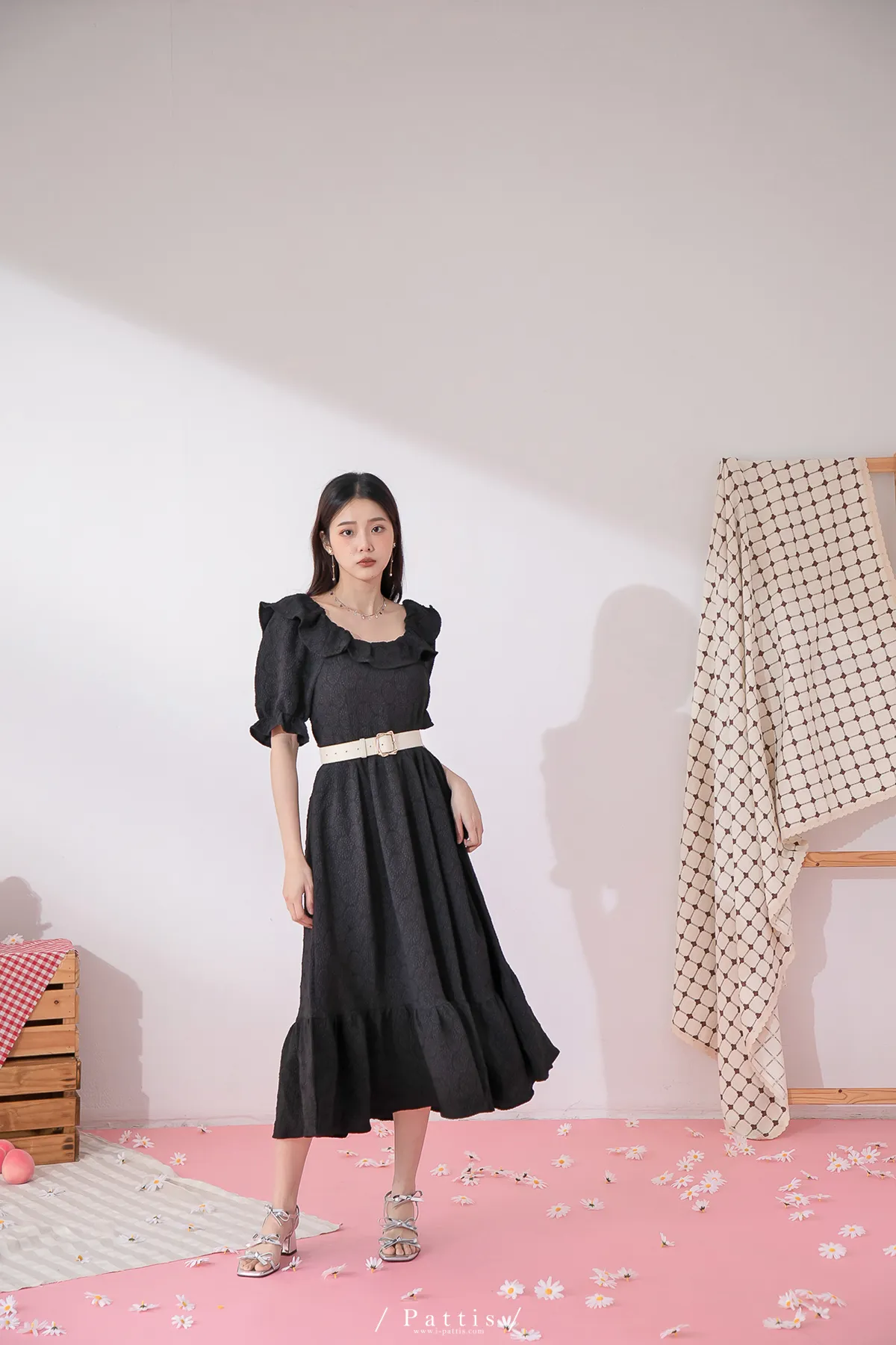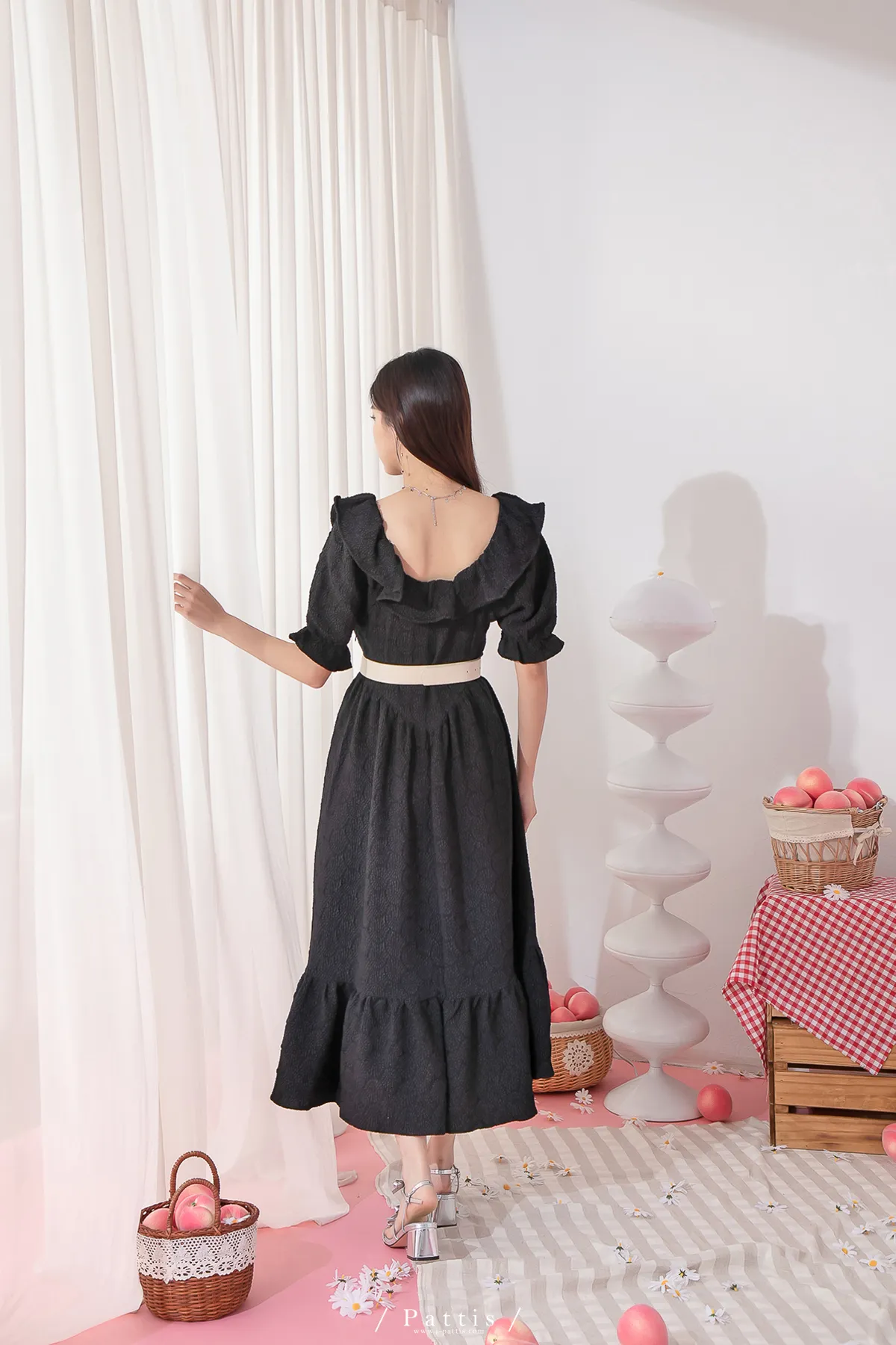 *特SALE*荷葉愛心腰線長洋裝(植花黑)