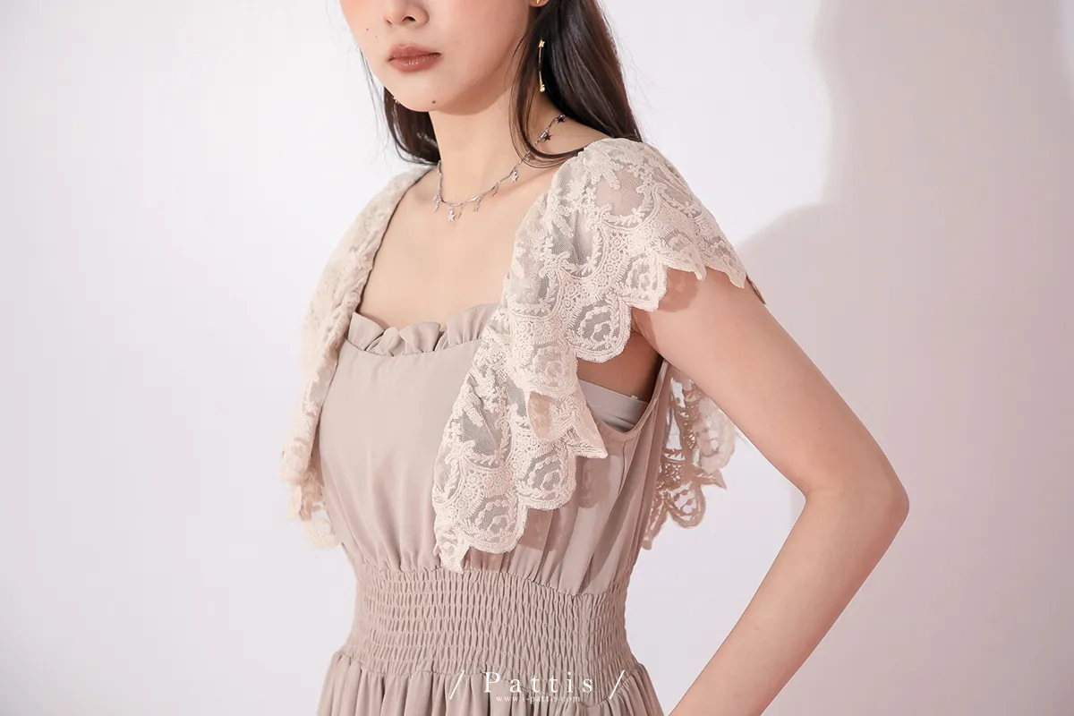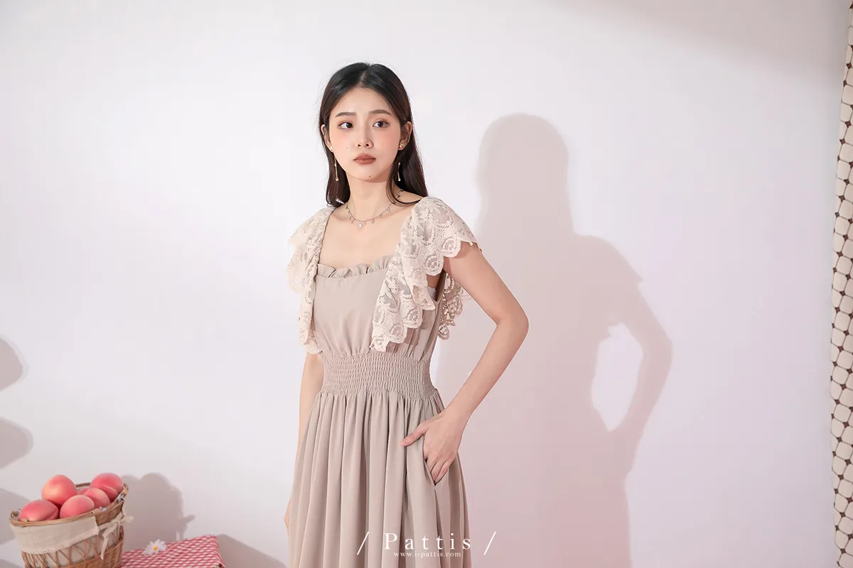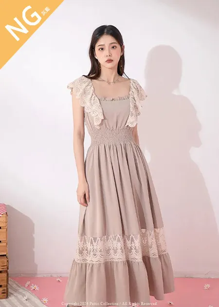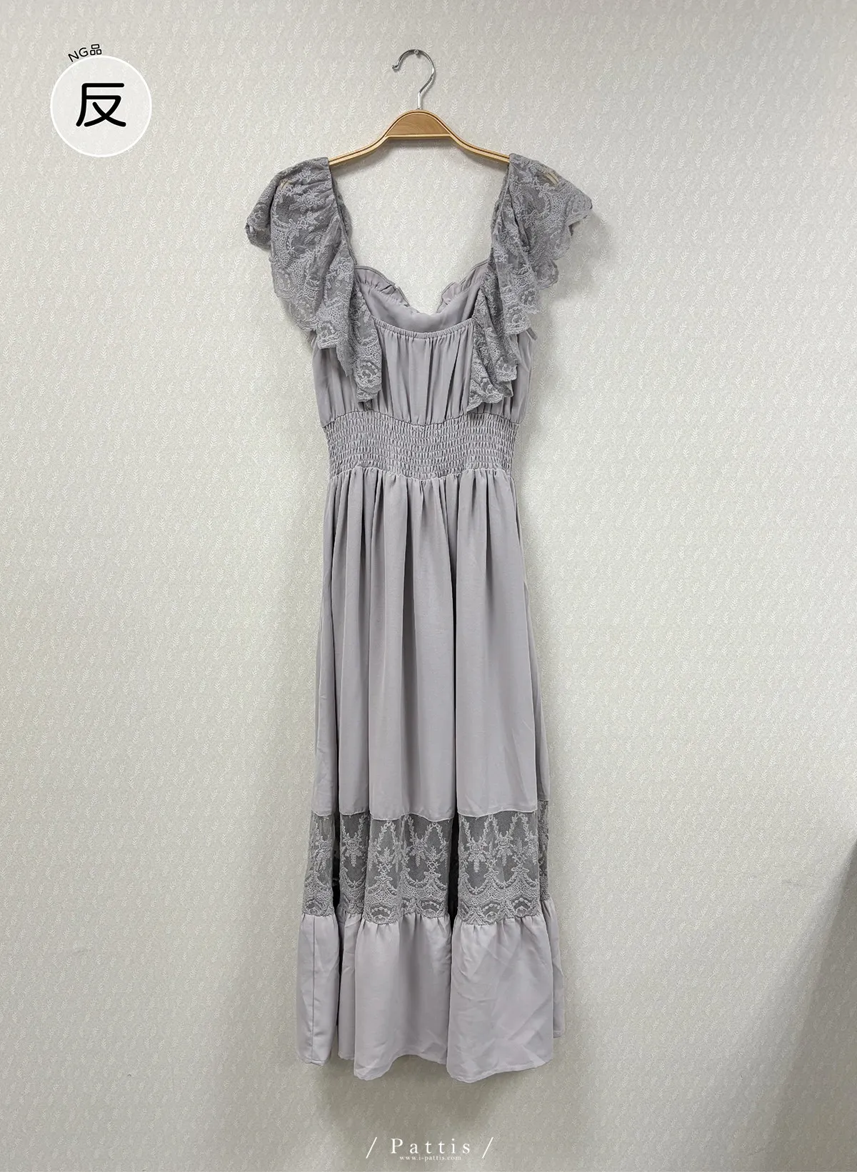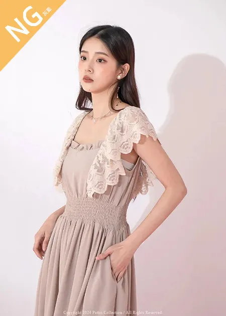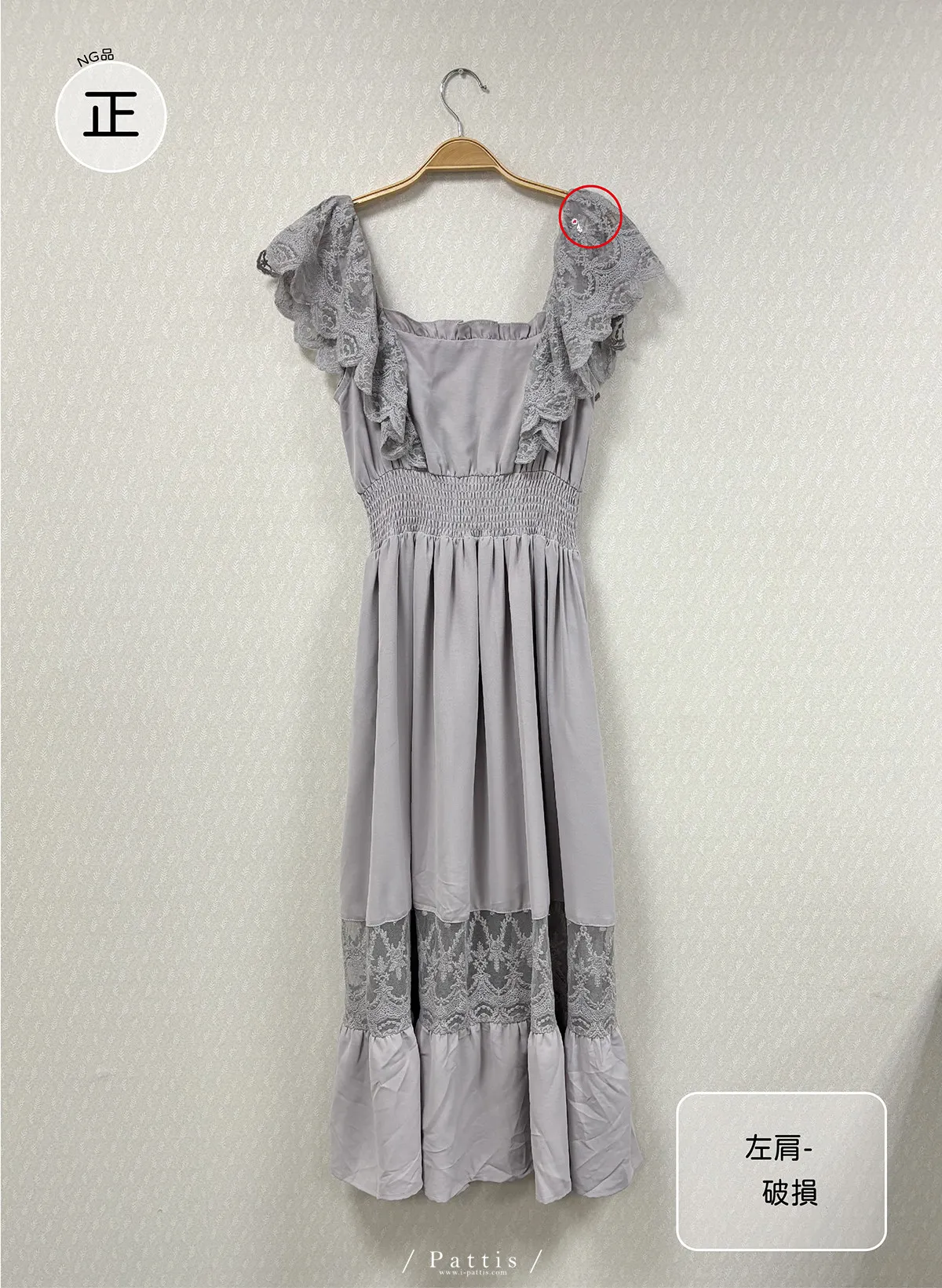 / NG品 原價$1180 /雕花蕾絲抓皺口袋洋裝(灰藍)