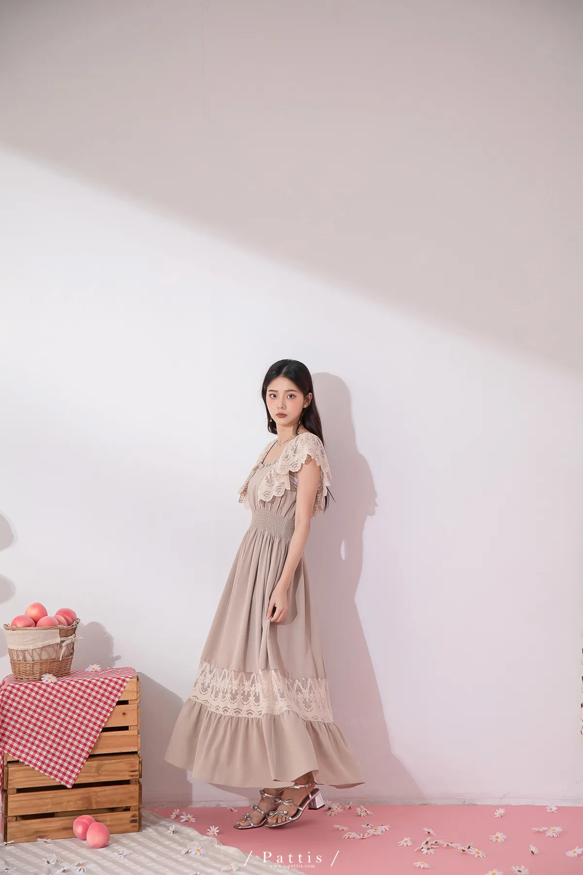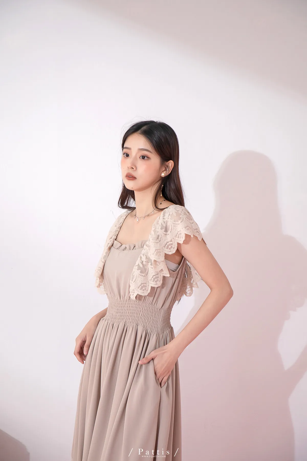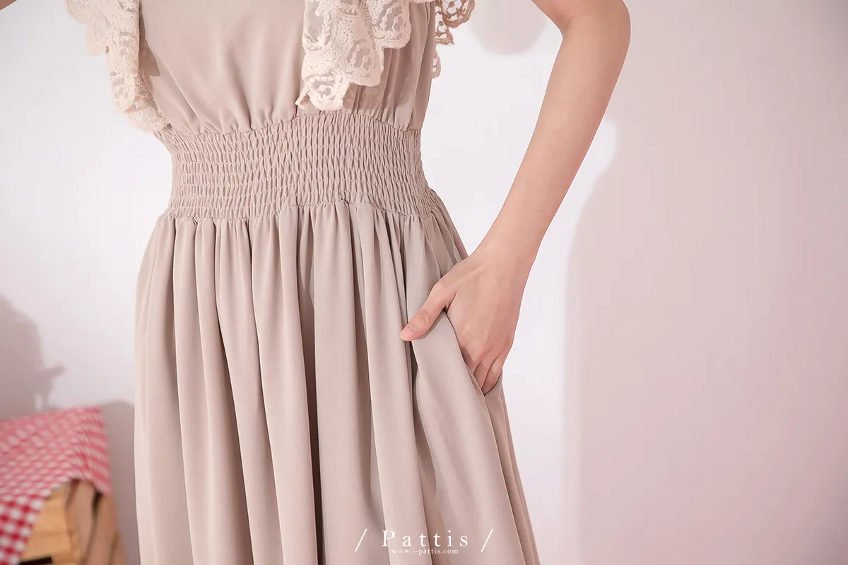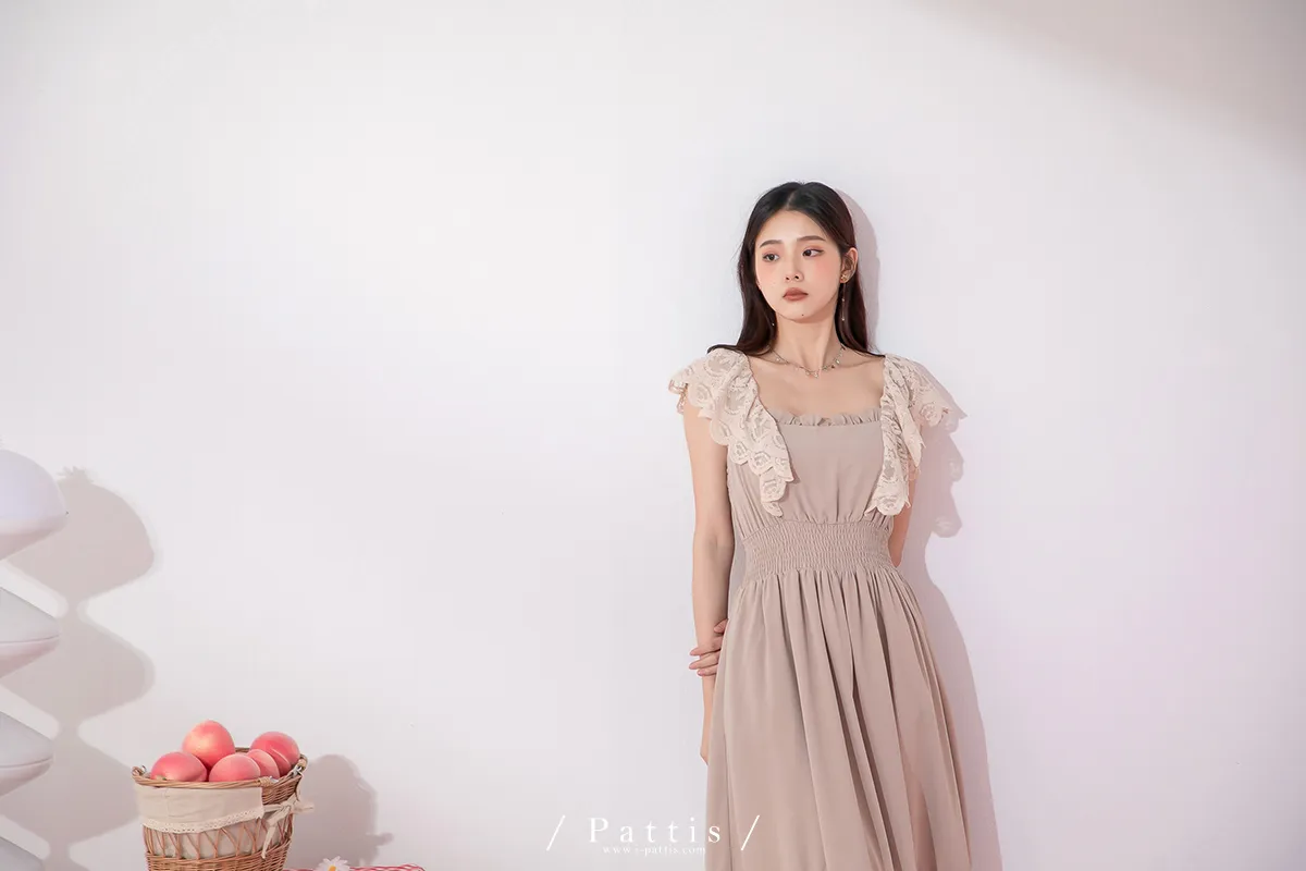 / NG品 原價$1180 /雕花蕾絲抓皺口袋洋裝(灰藍)