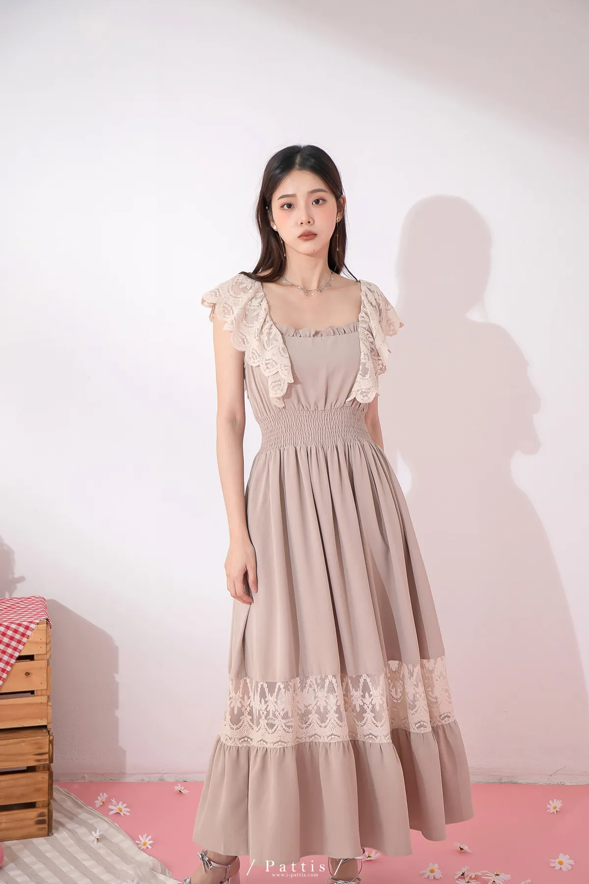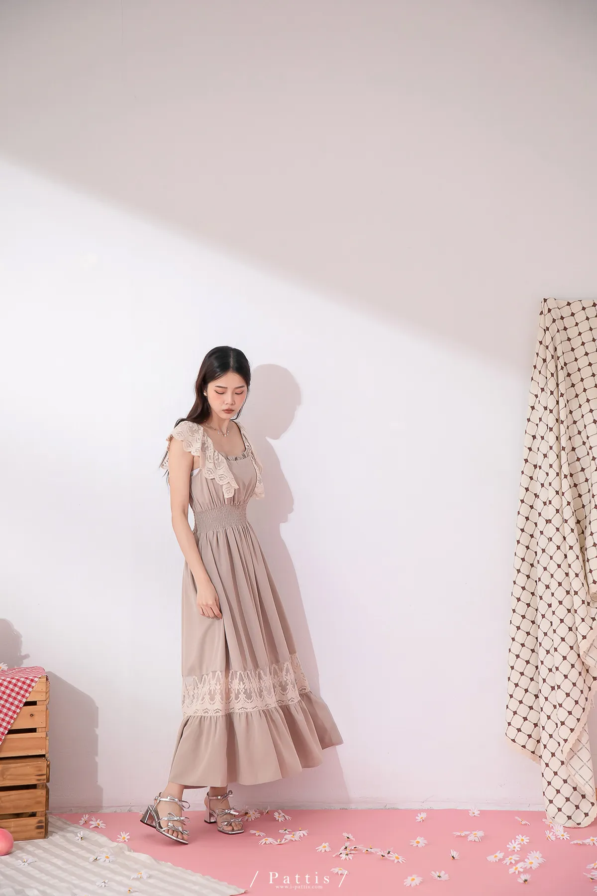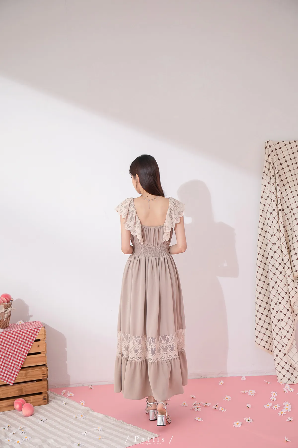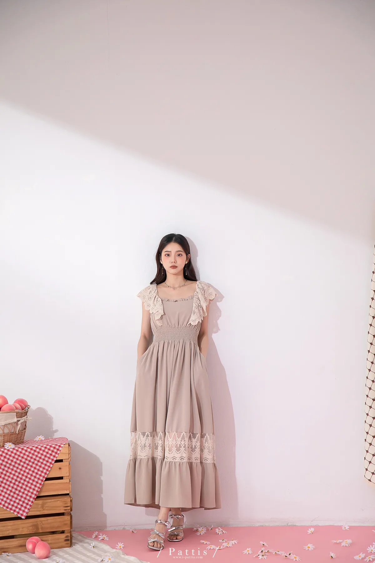 / NG品 原價$1180 /雕花蕾絲抓皺口袋洋裝(灰藍)