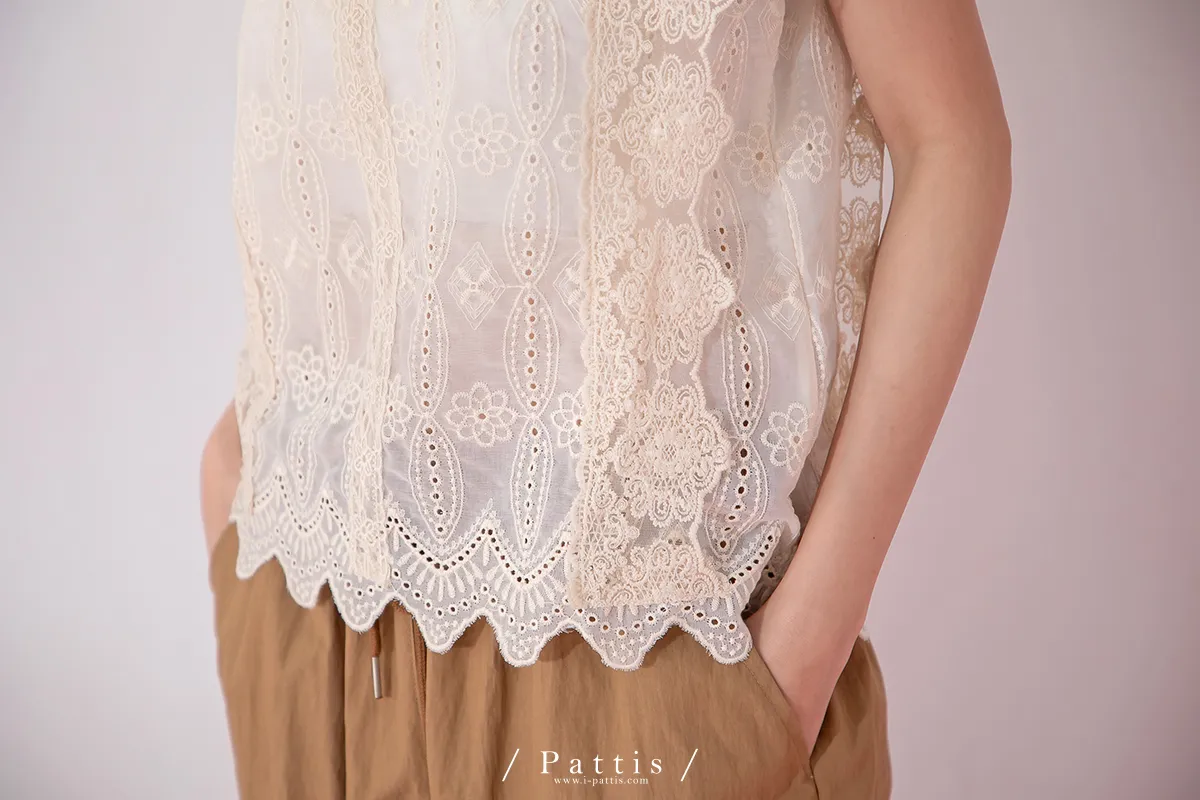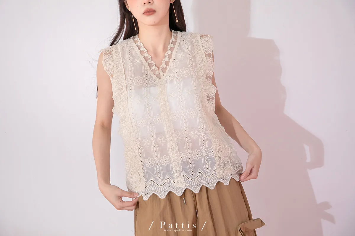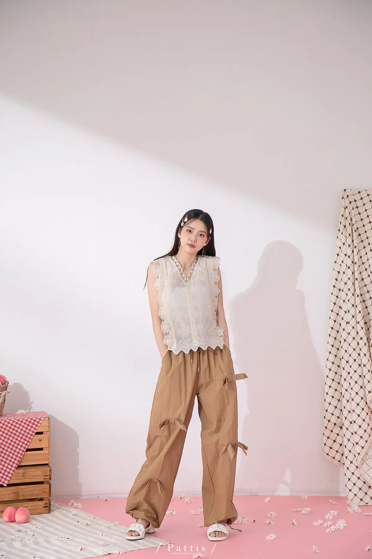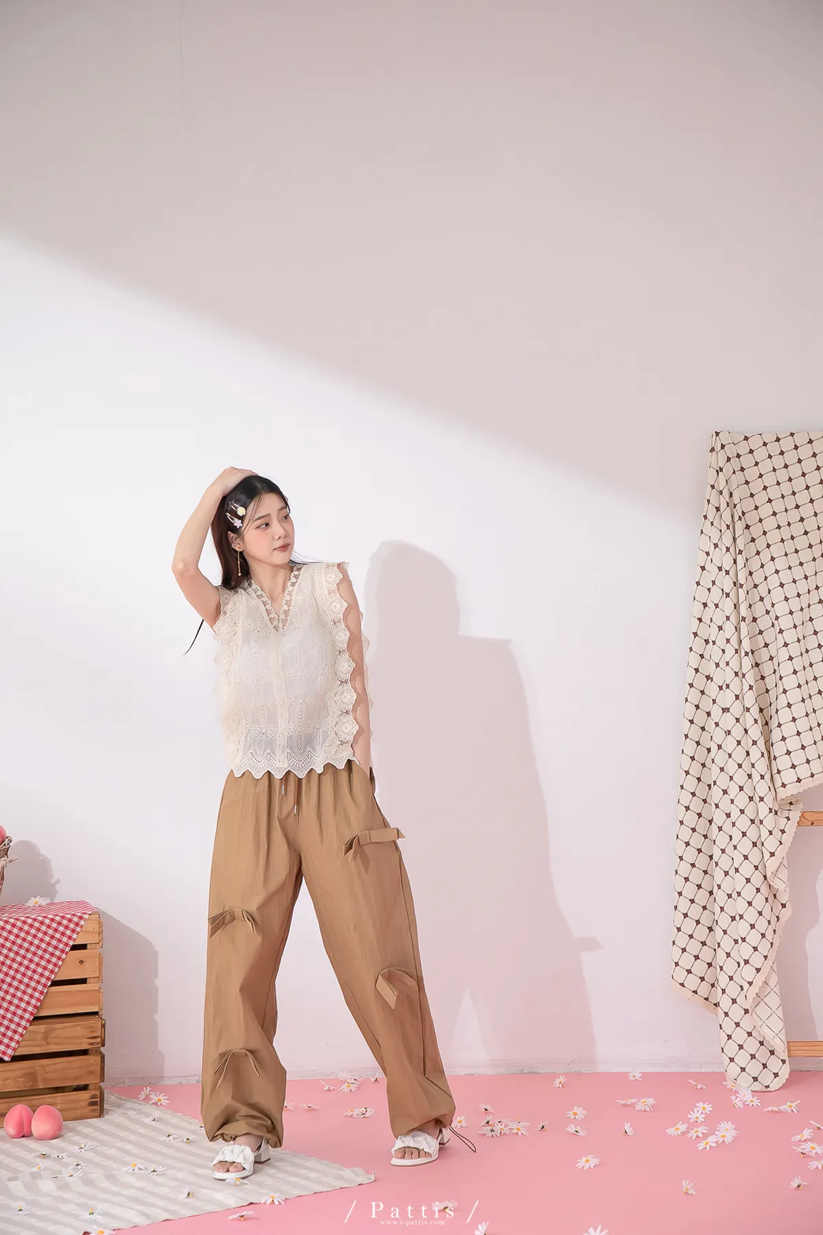 *特SALE*刺繡蕾絲V領綁帶上衣(單一色)