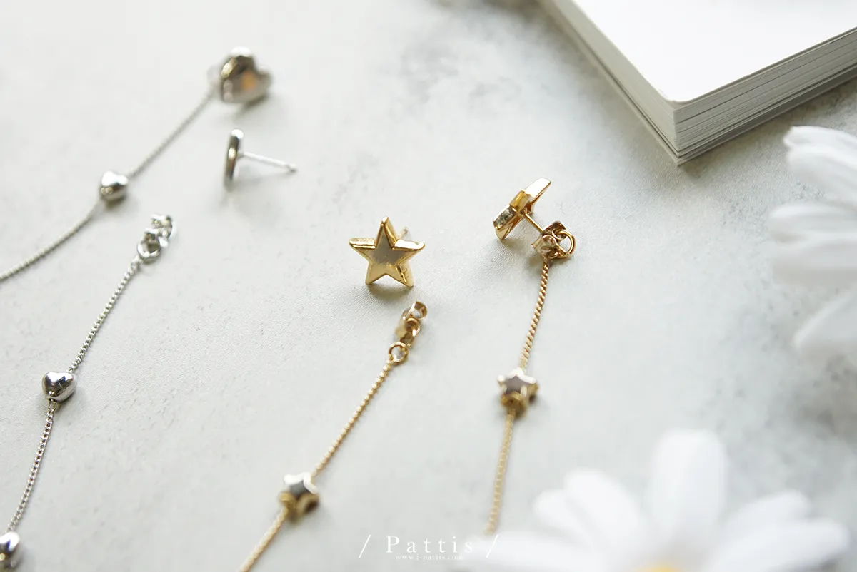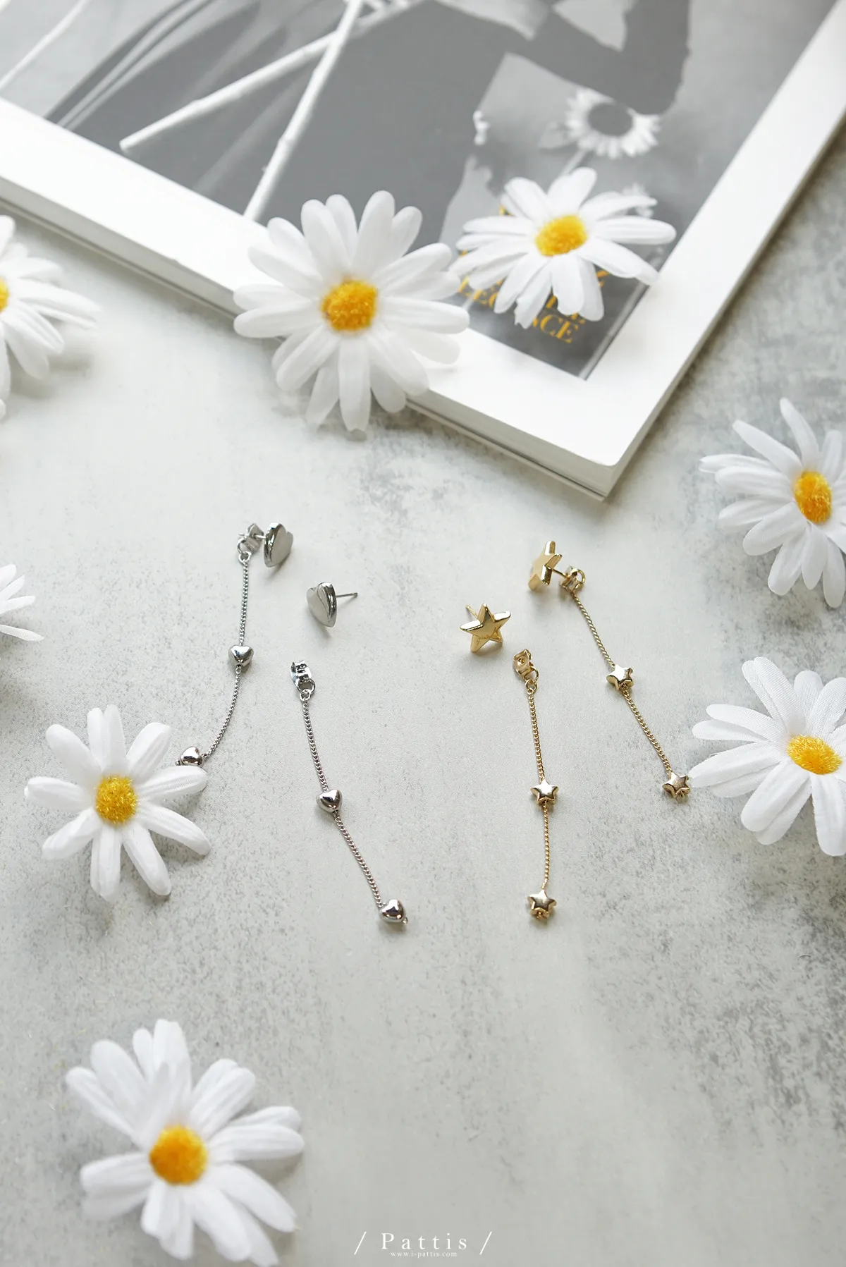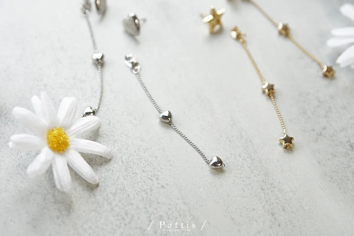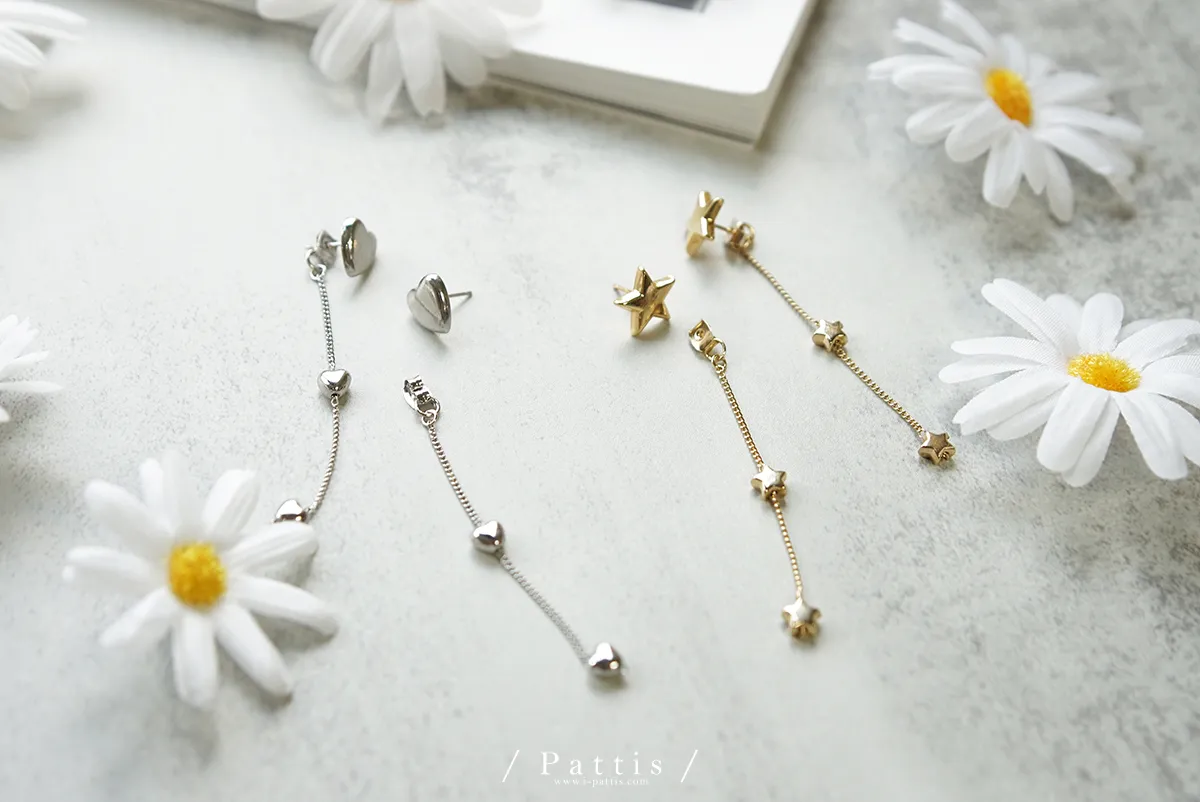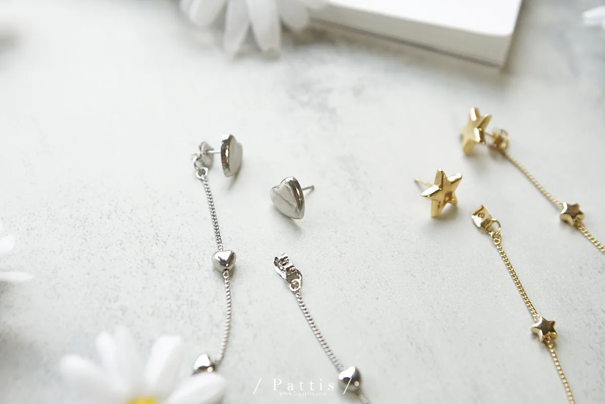 垂墜鍊簡約長耳環(金色星星/銀色愛心)