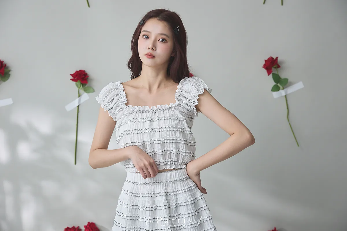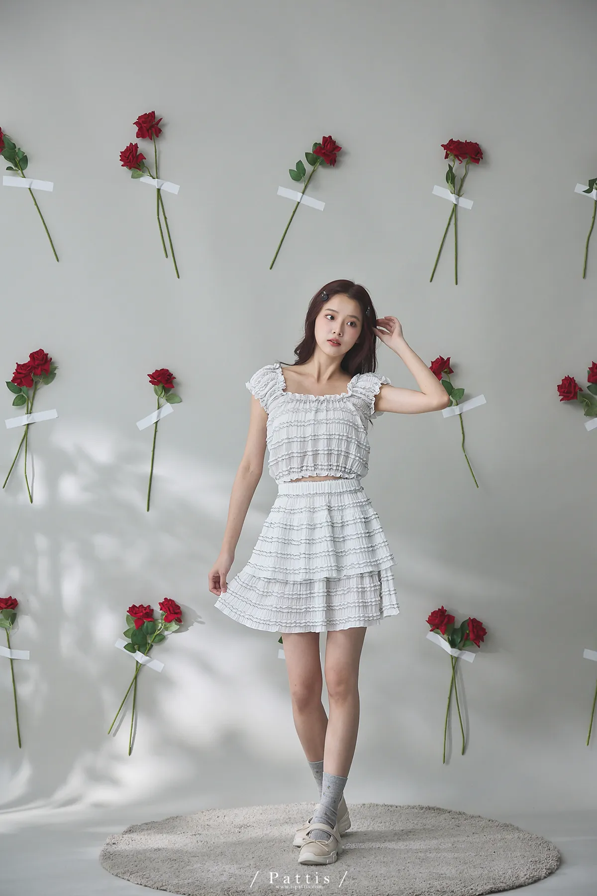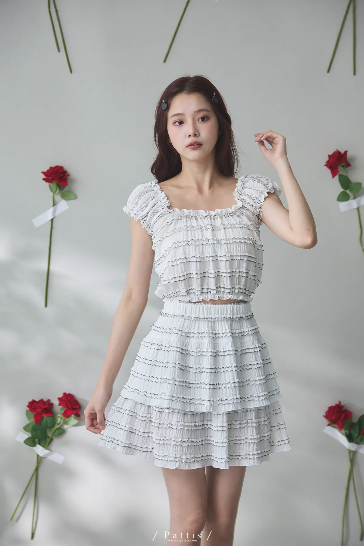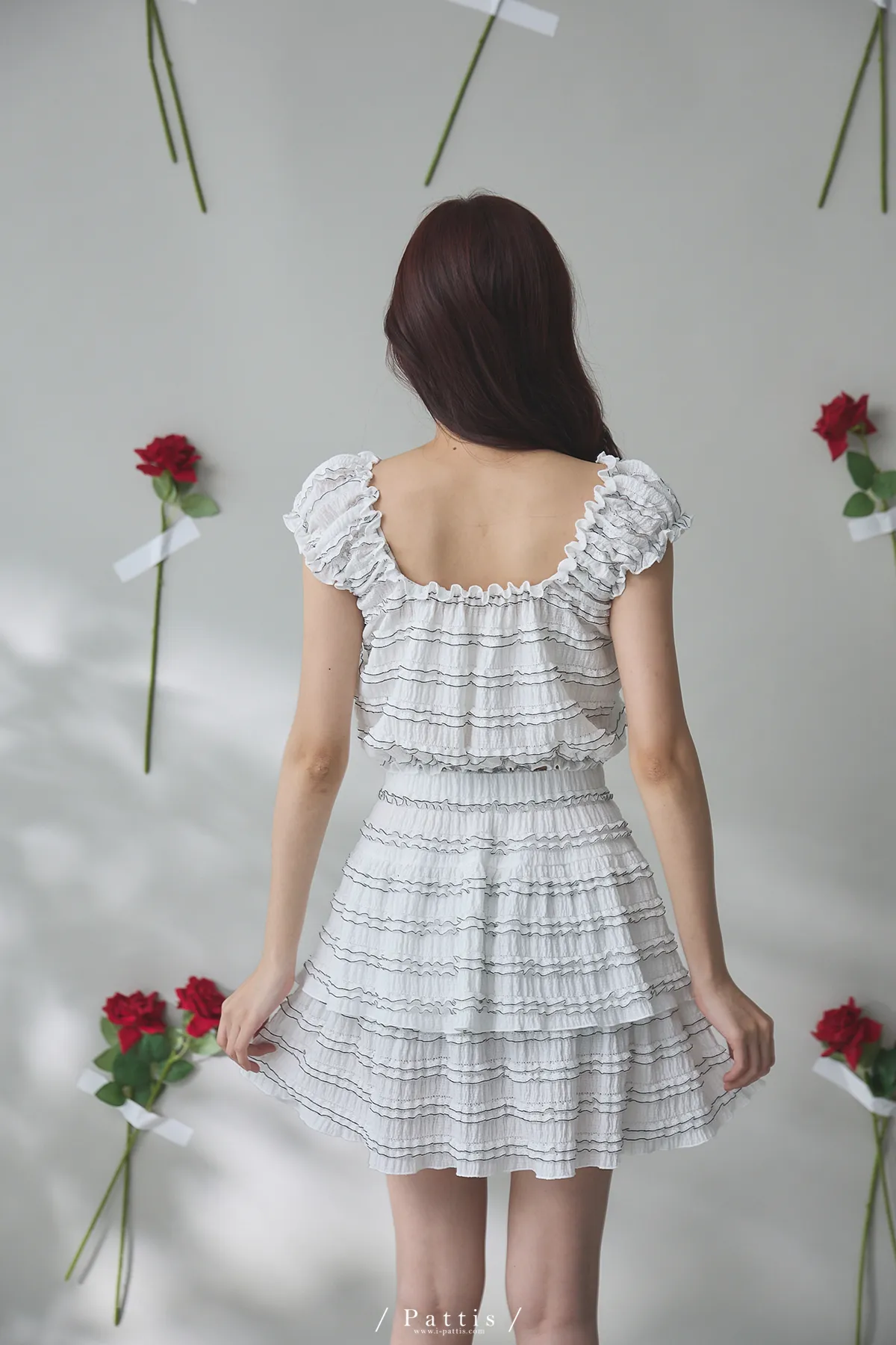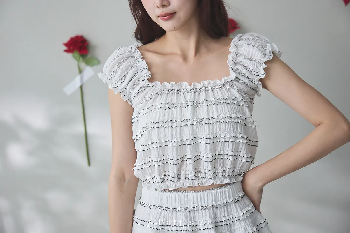 (現貨)最後一個周末的海 | (可分售)車線邊荷葉鬆緊上衣+雙層蛋糕裙set(白)