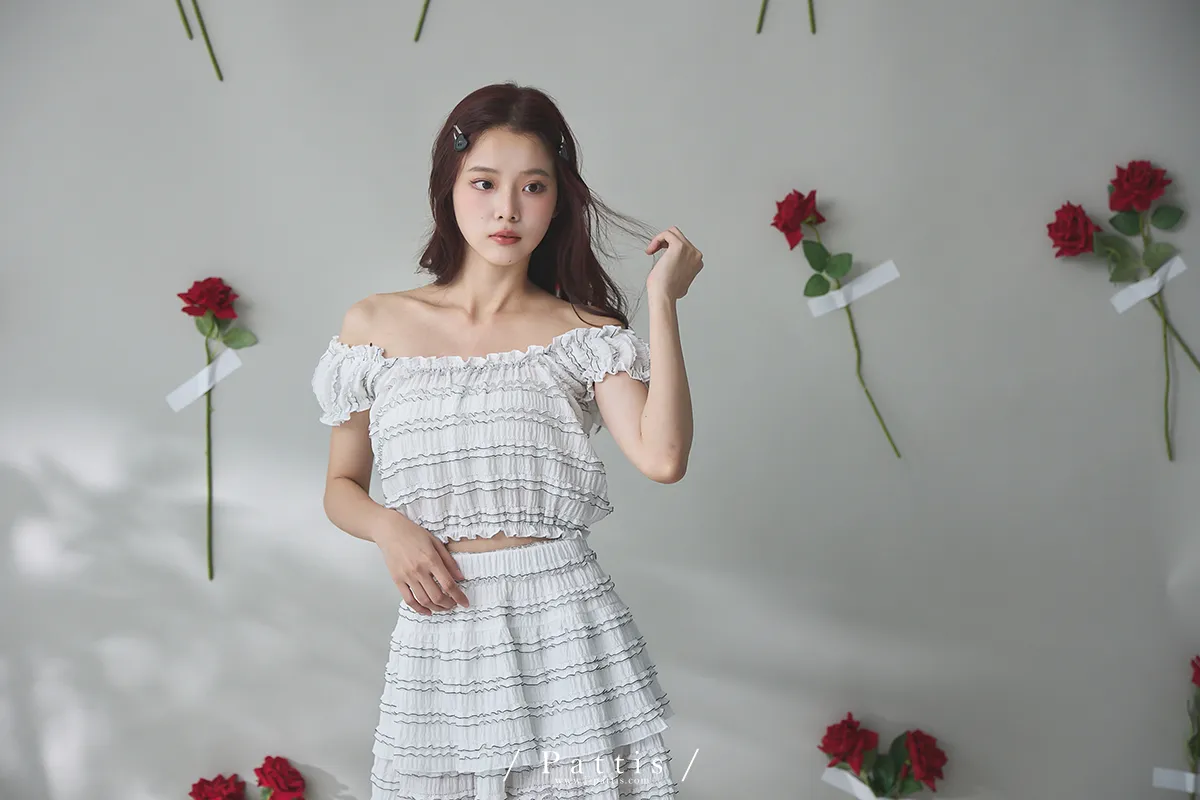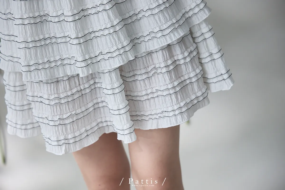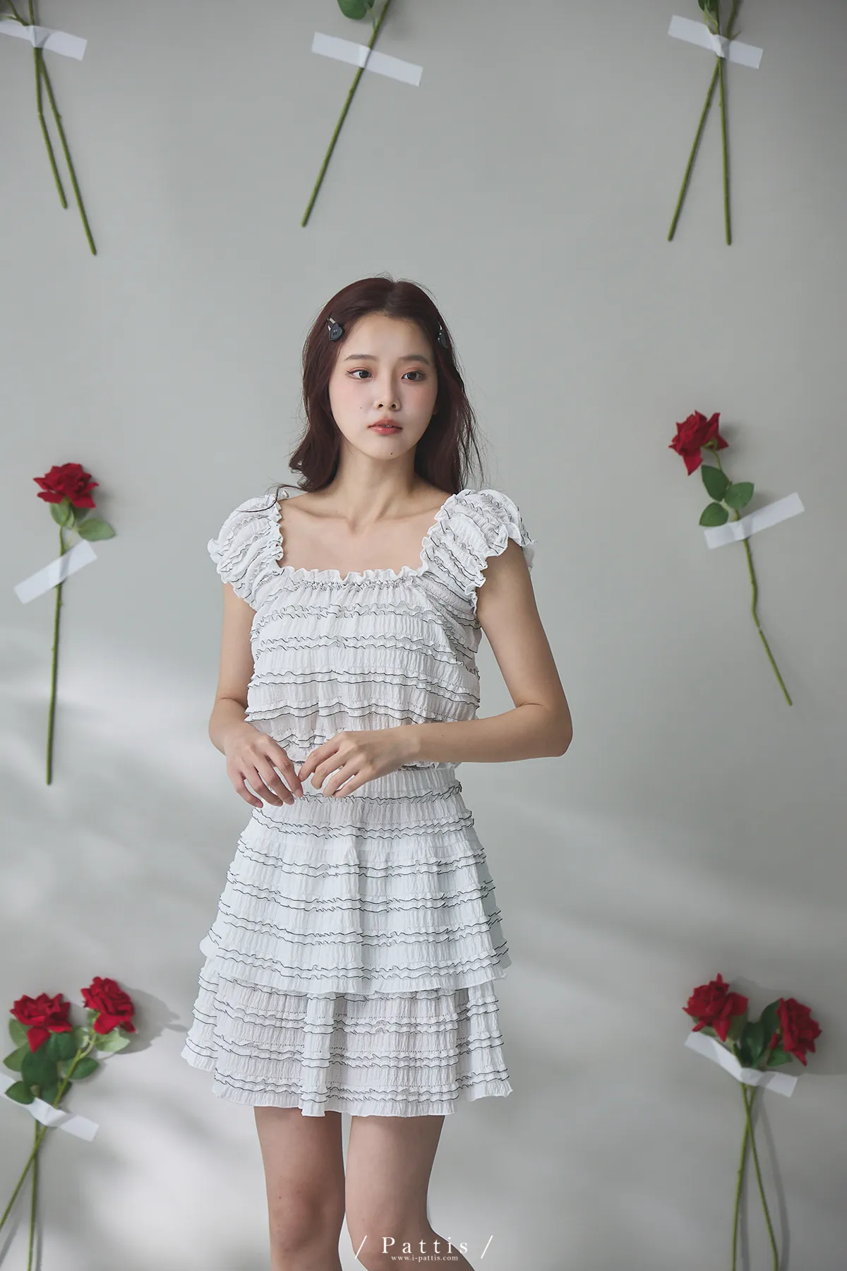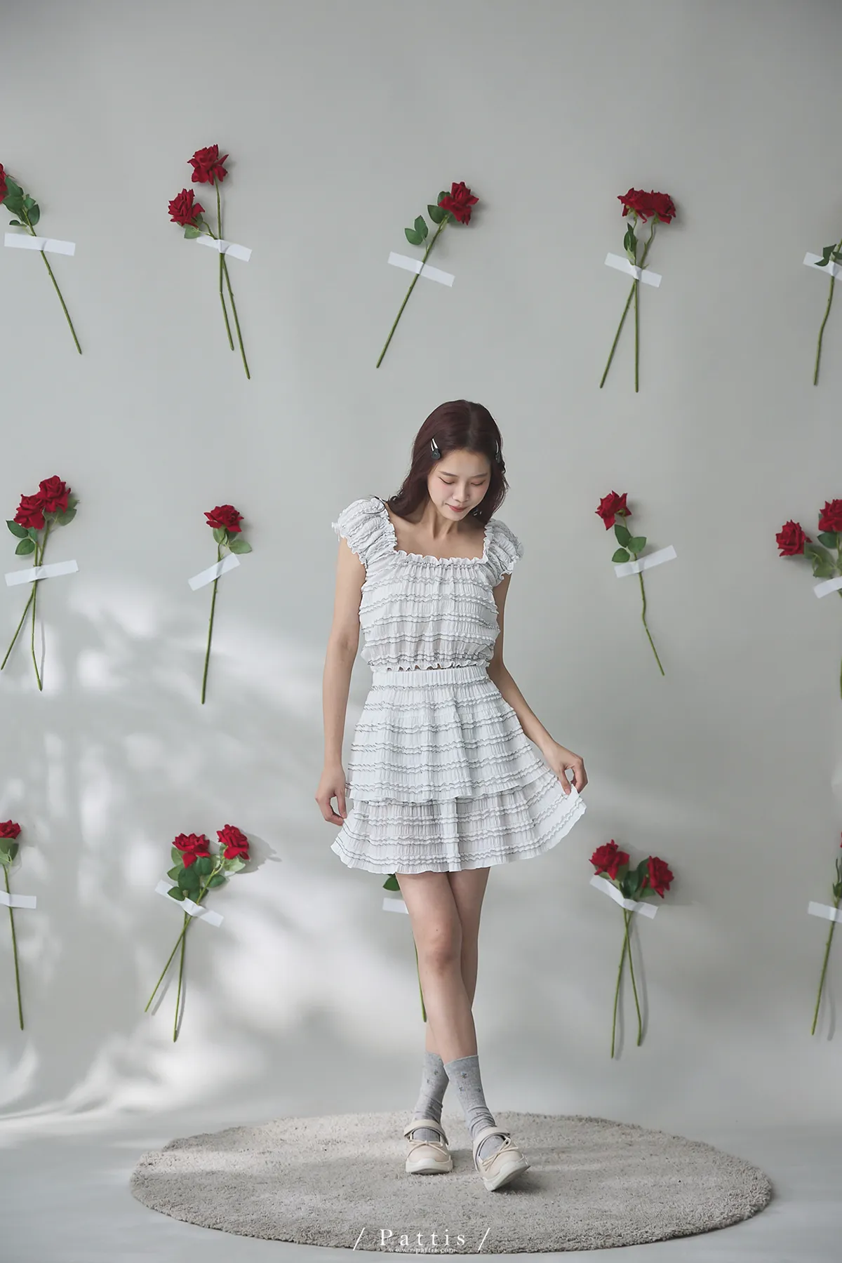 (現貨)最後一個周末的海 | (可分售)車線邊荷葉鬆緊上衣+雙層蛋糕裙set(白)
