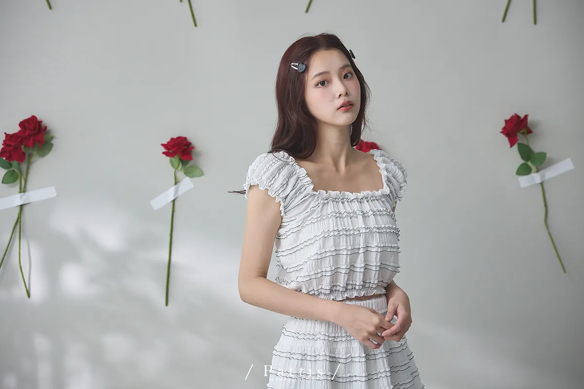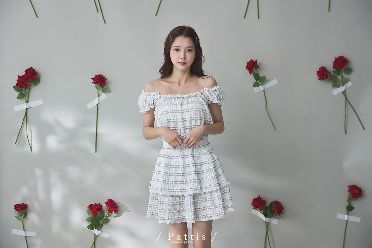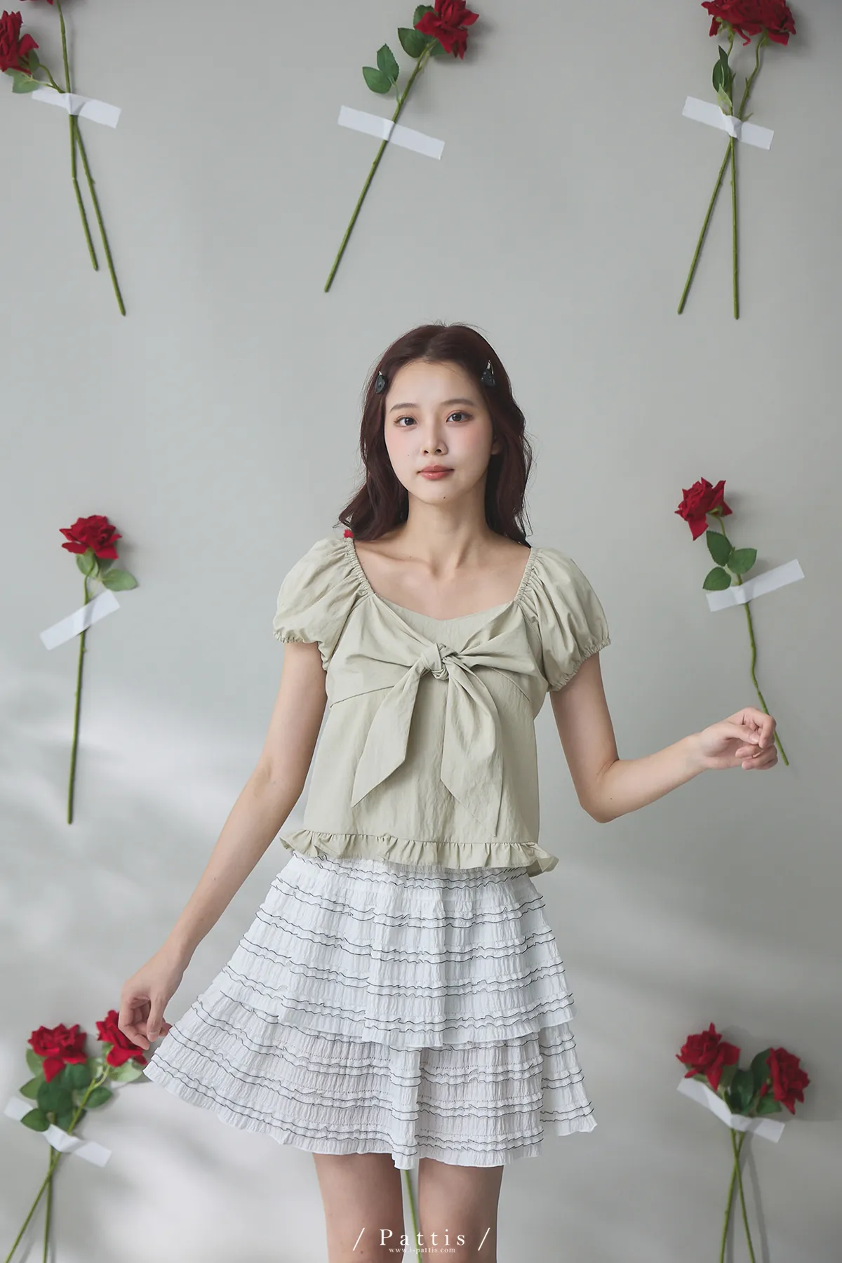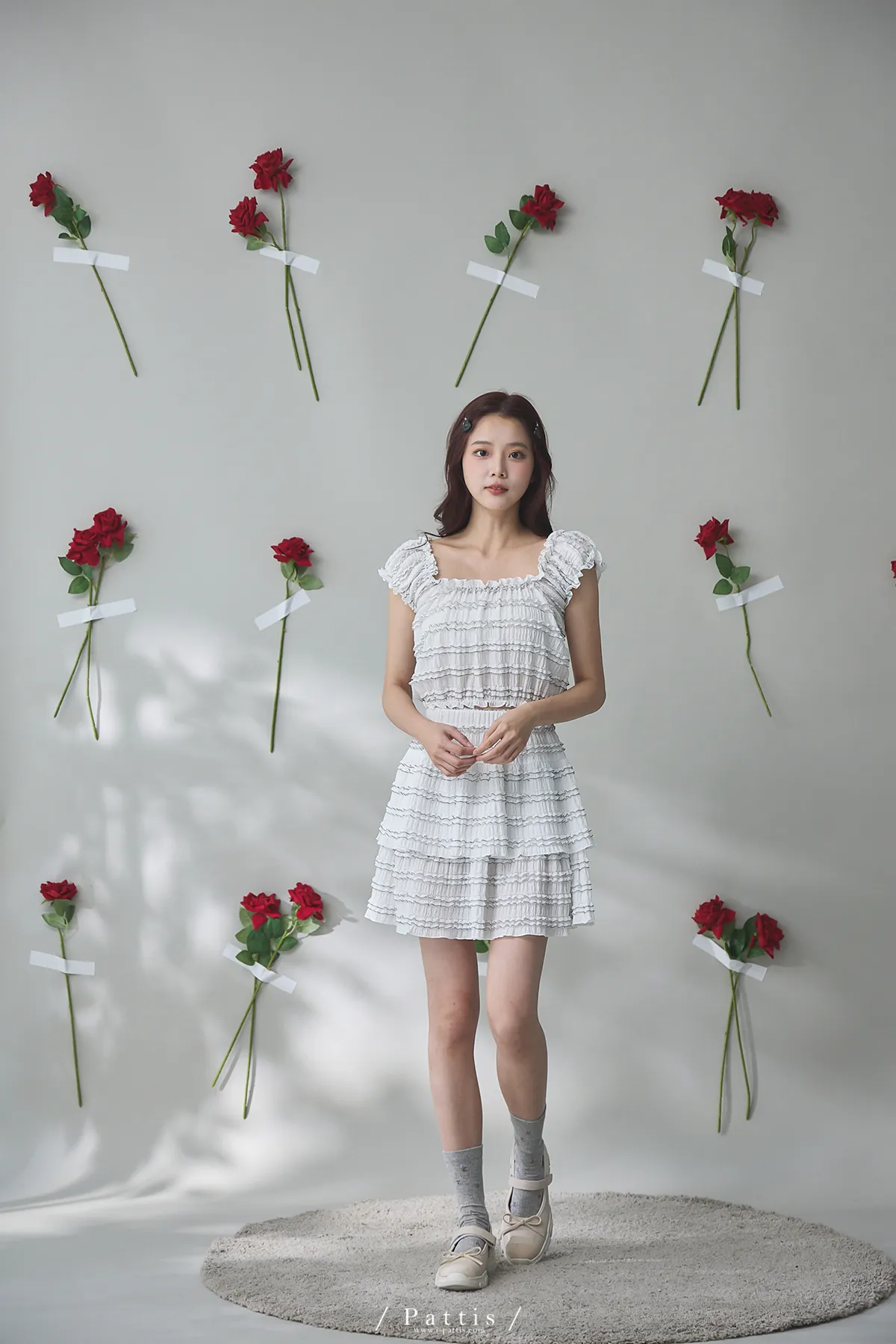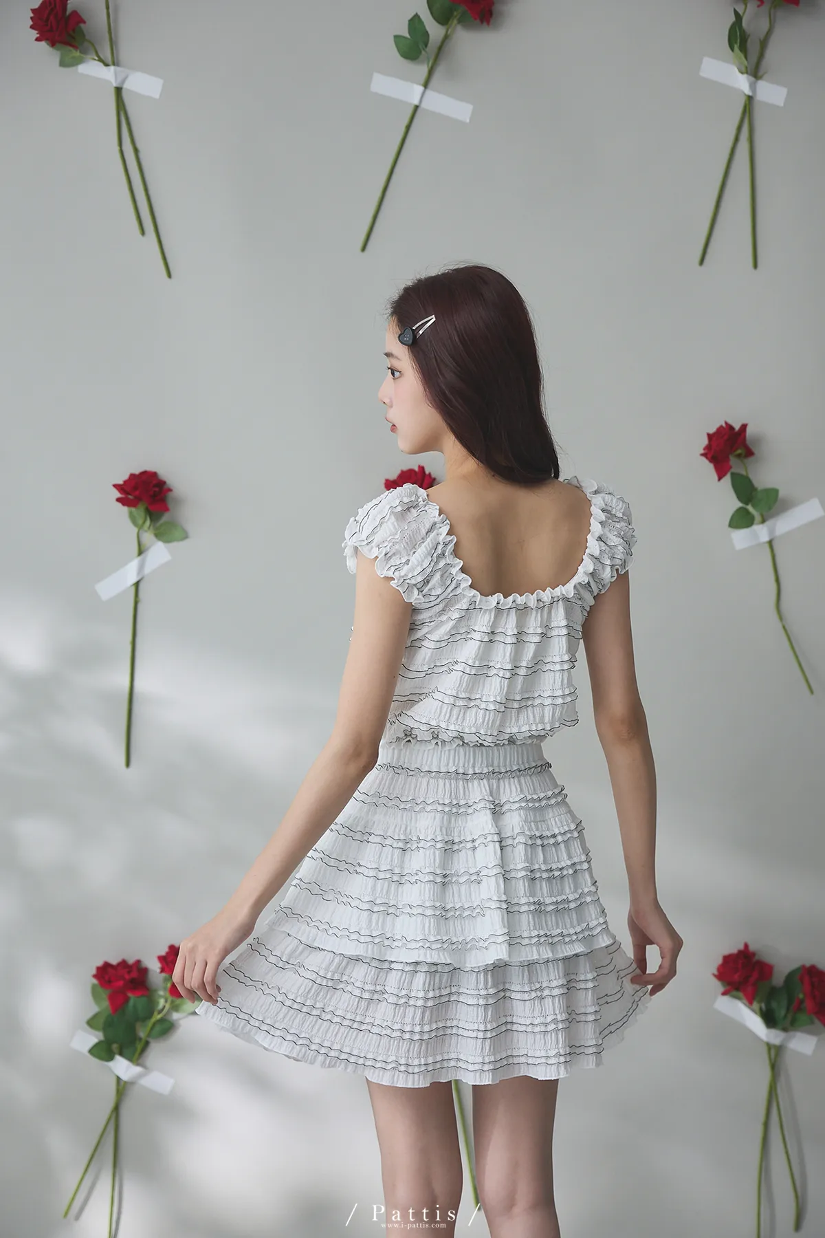 (現貨)最後一個周末的海 | (可分售)車線邊荷葉鬆緊上衣+雙層蛋糕裙set(白)