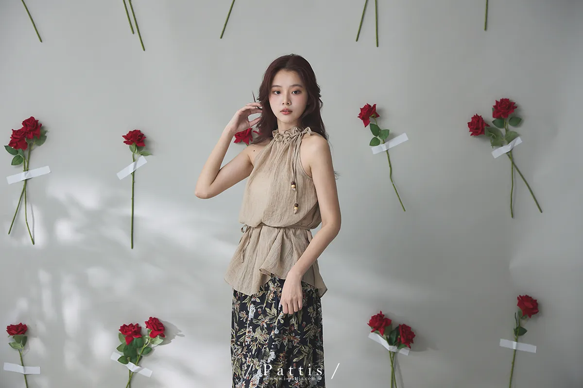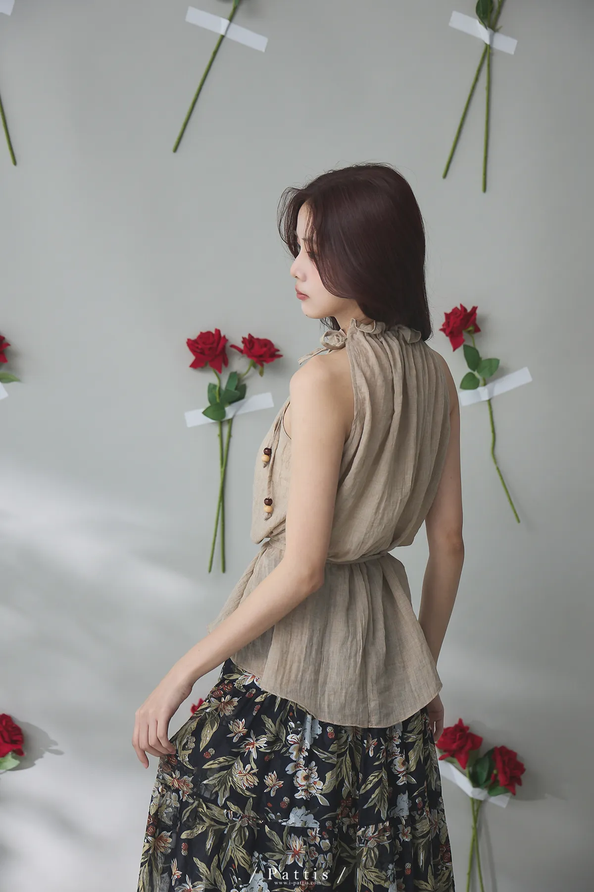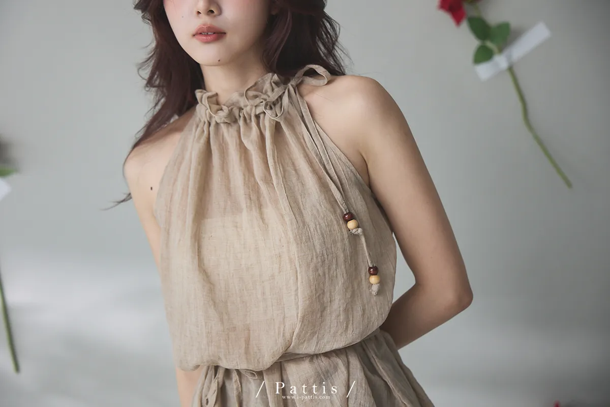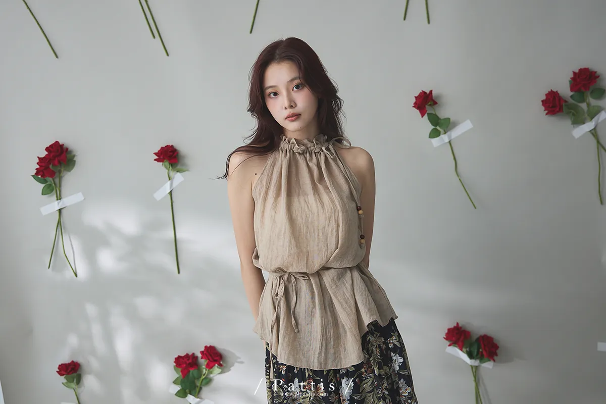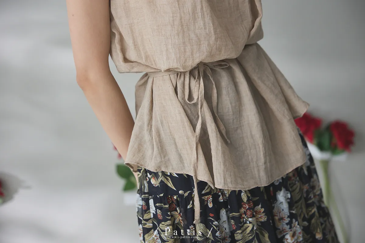 (現貨) 上升星座在今日迷失 | 削肩側綁帶棉麻上衣(咖棕)