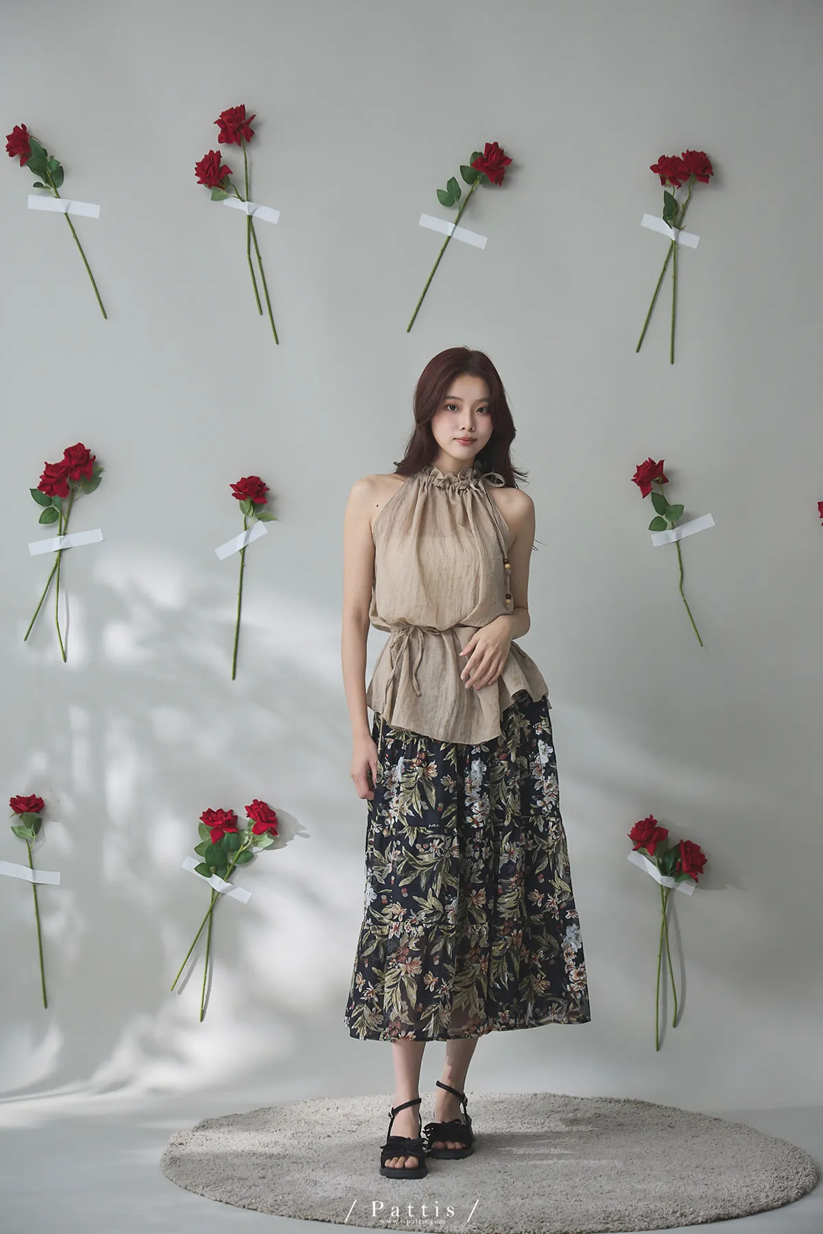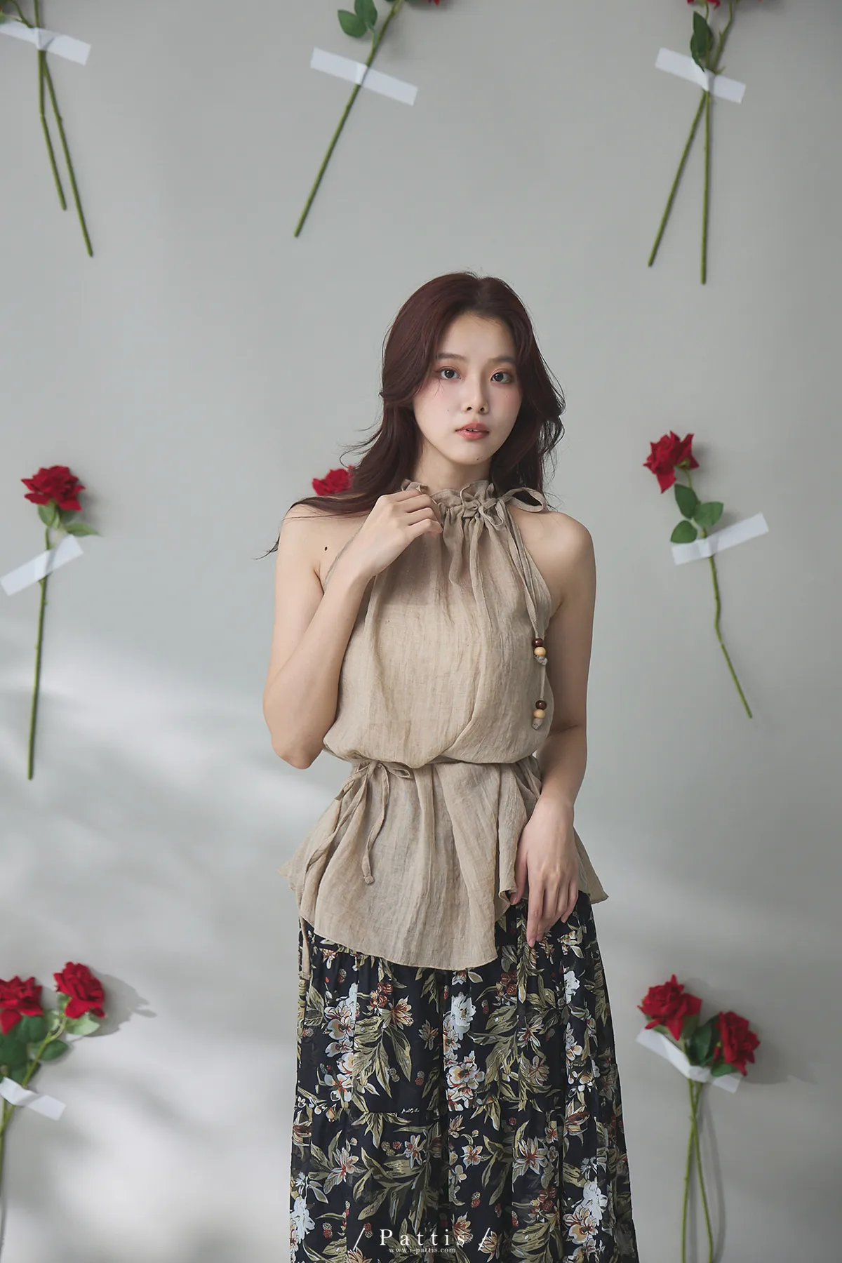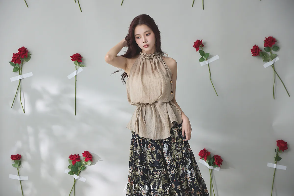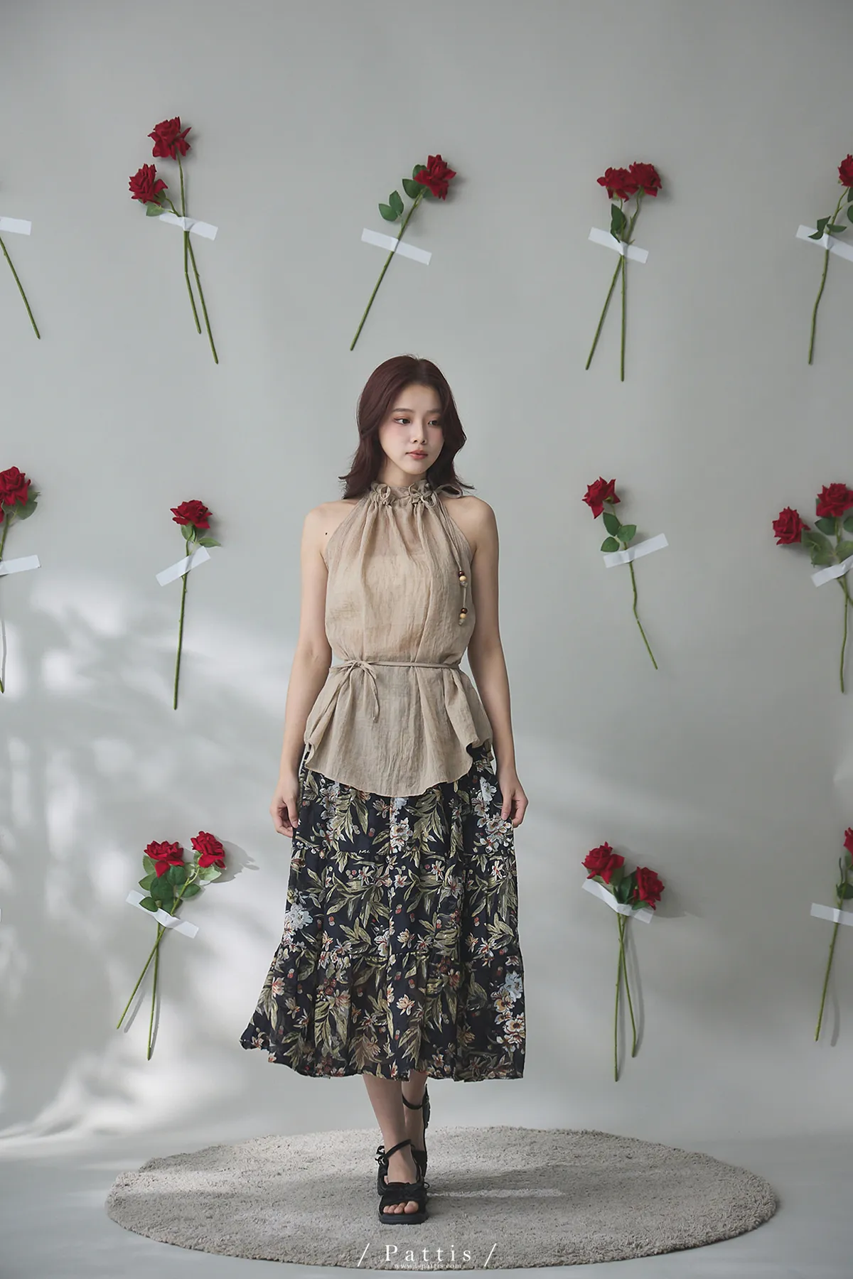 (現貨) 上升星座在今日迷失 | 削肩側綁帶棉麻上衣(咖棕)