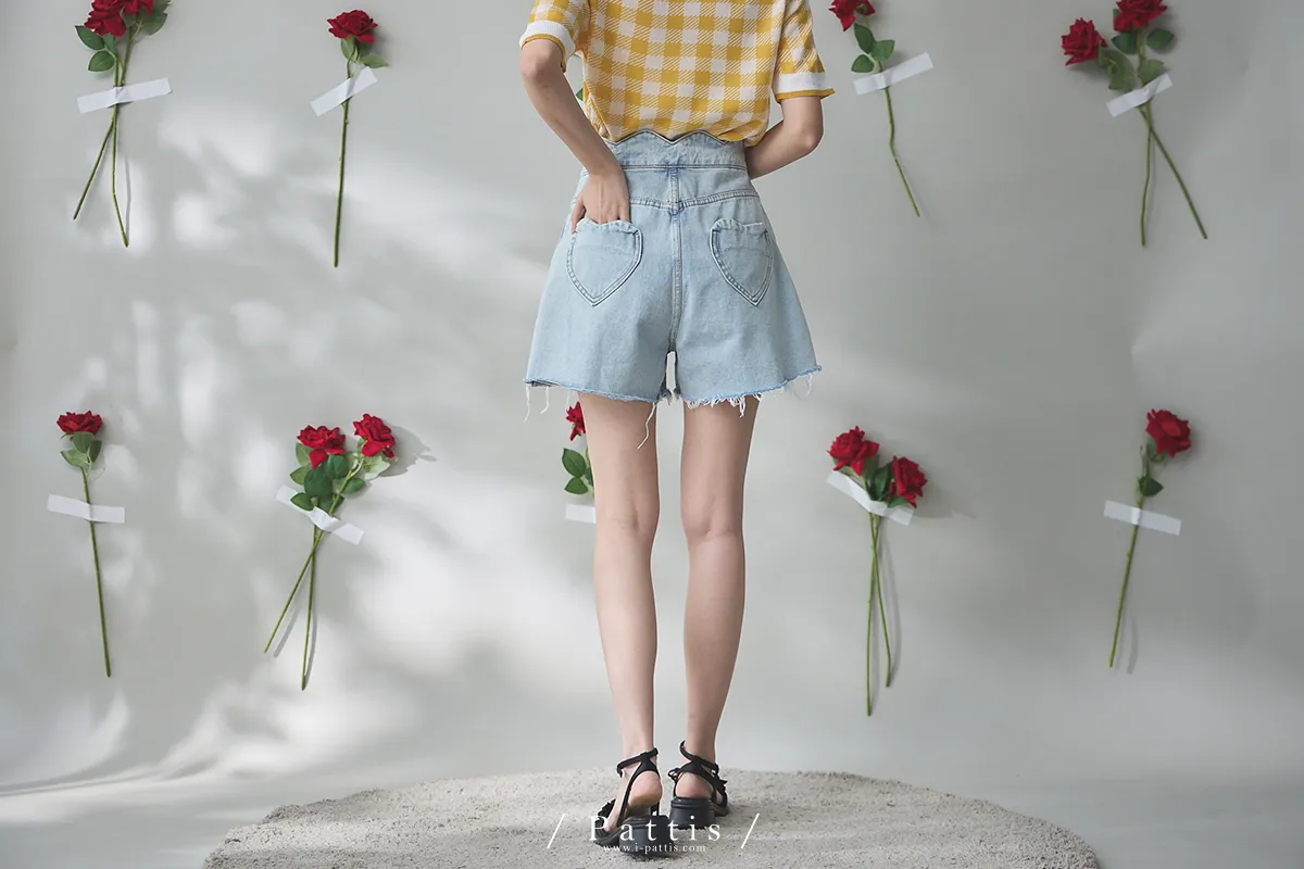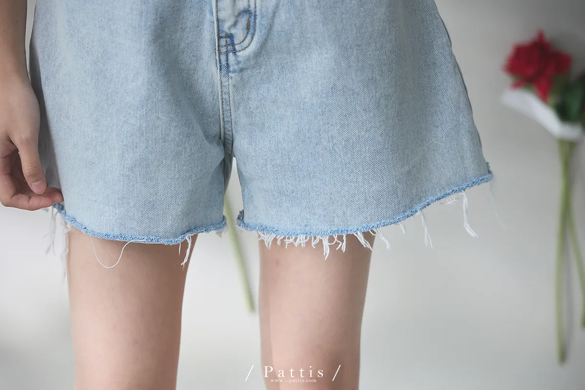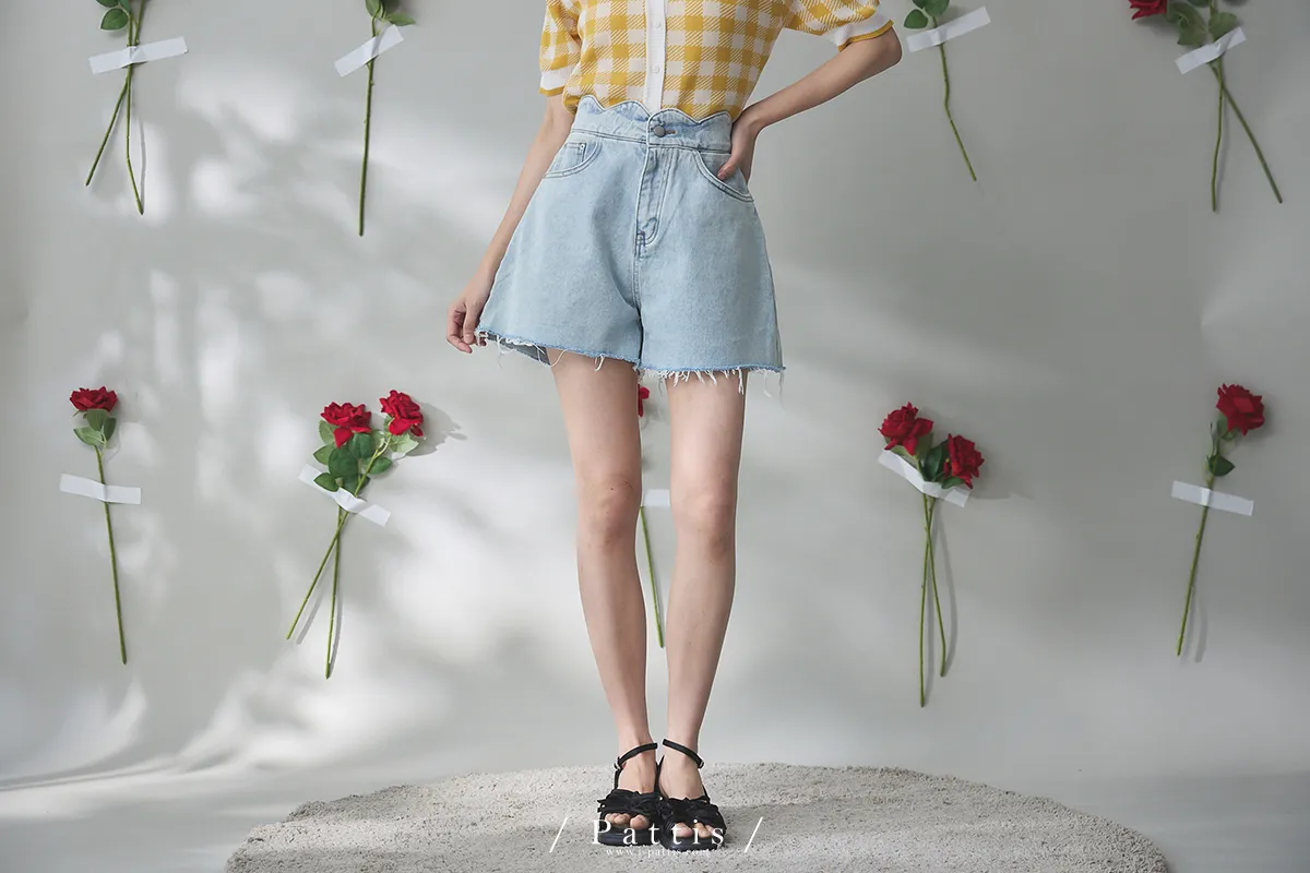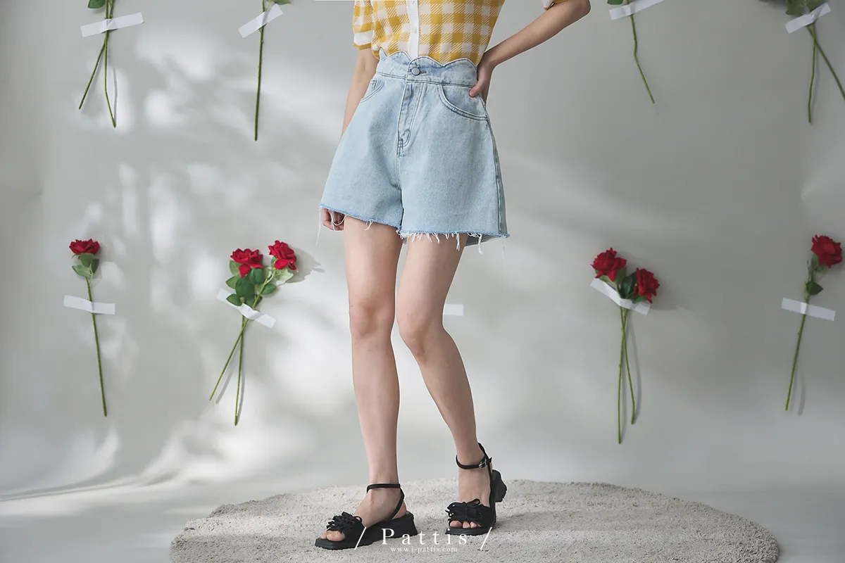 (現貨) -SALE-原價$1550- *特*花瓣邊高腰丹寧短褲(淺藍)