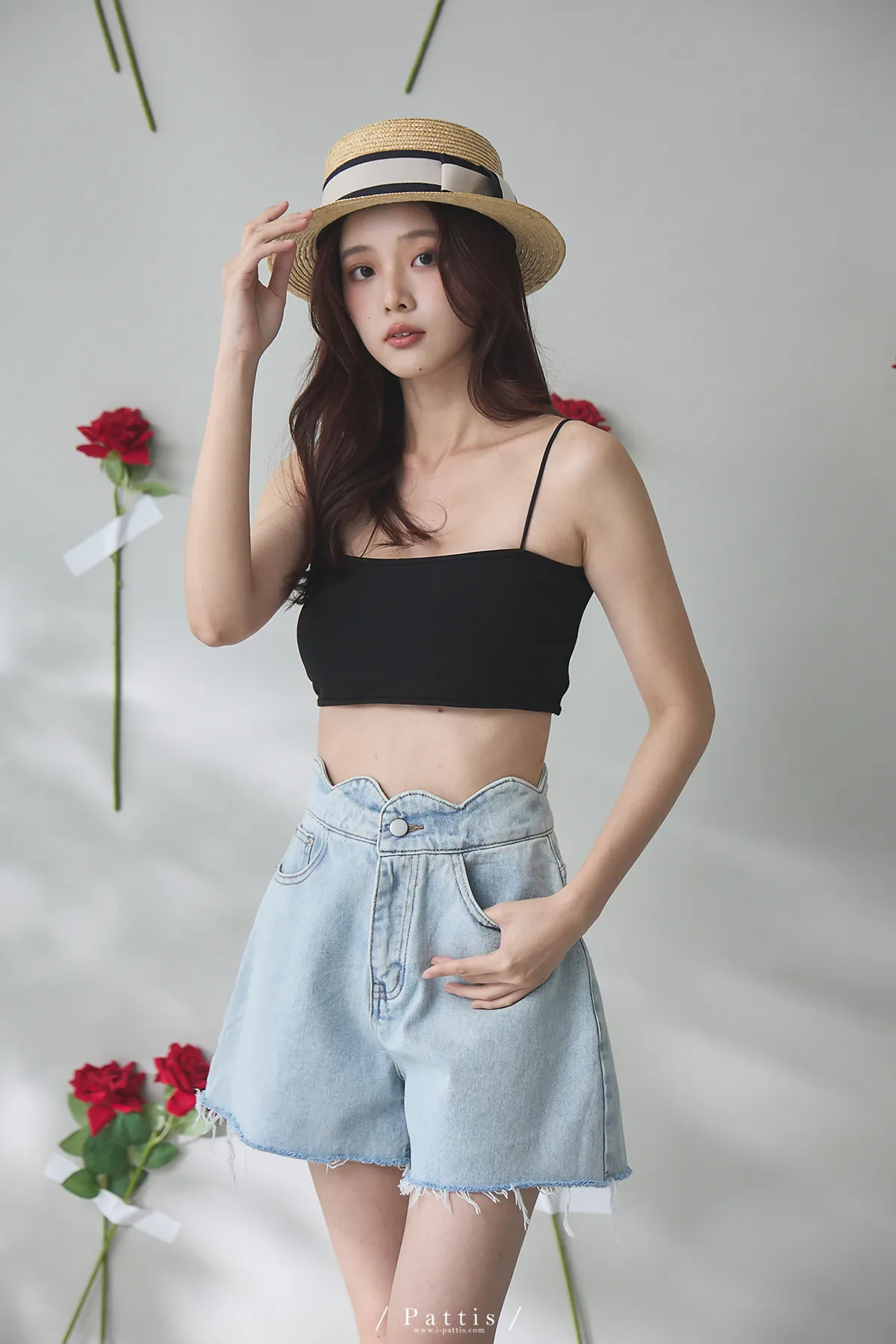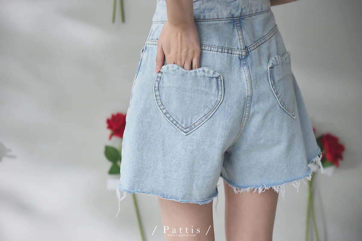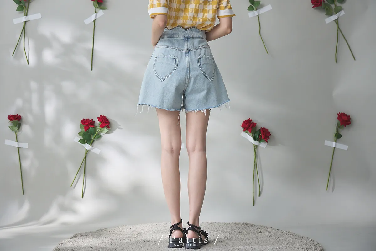 (現貨) -SALE-原價$1550- *特*花瓣邊高腰丹寧短褲(淺藍)