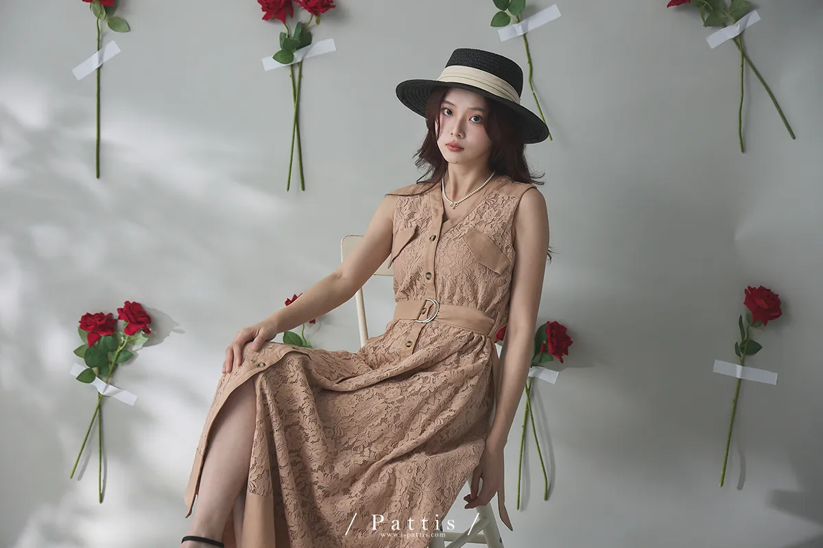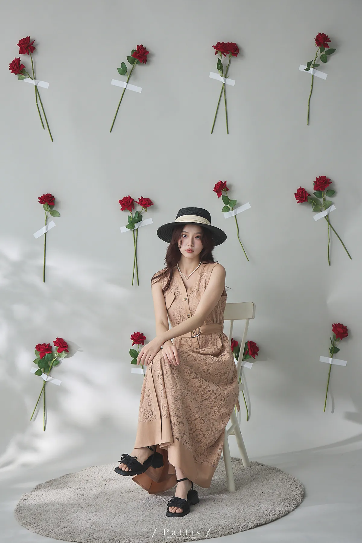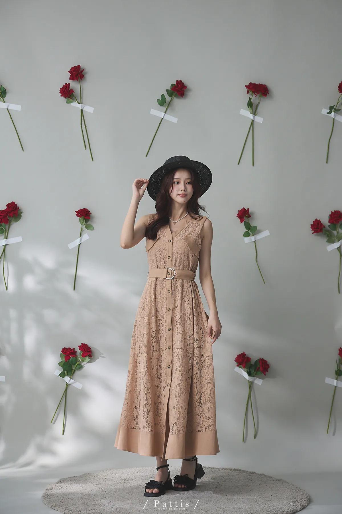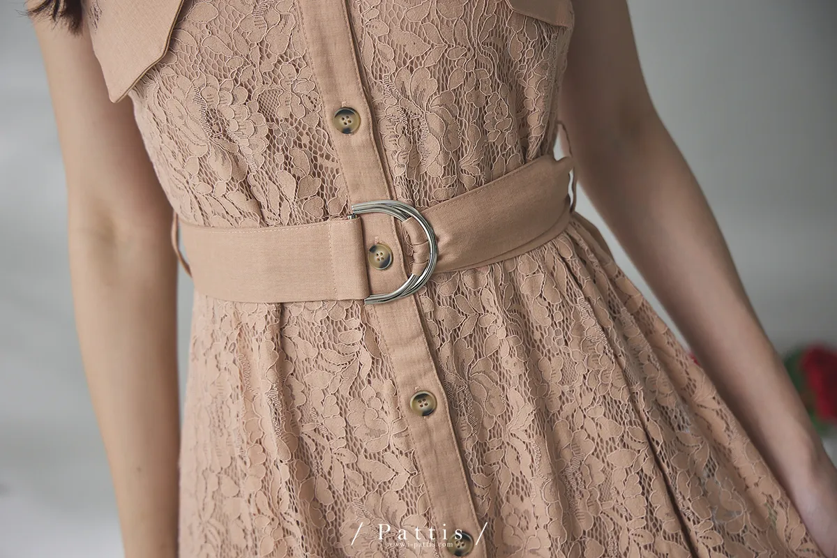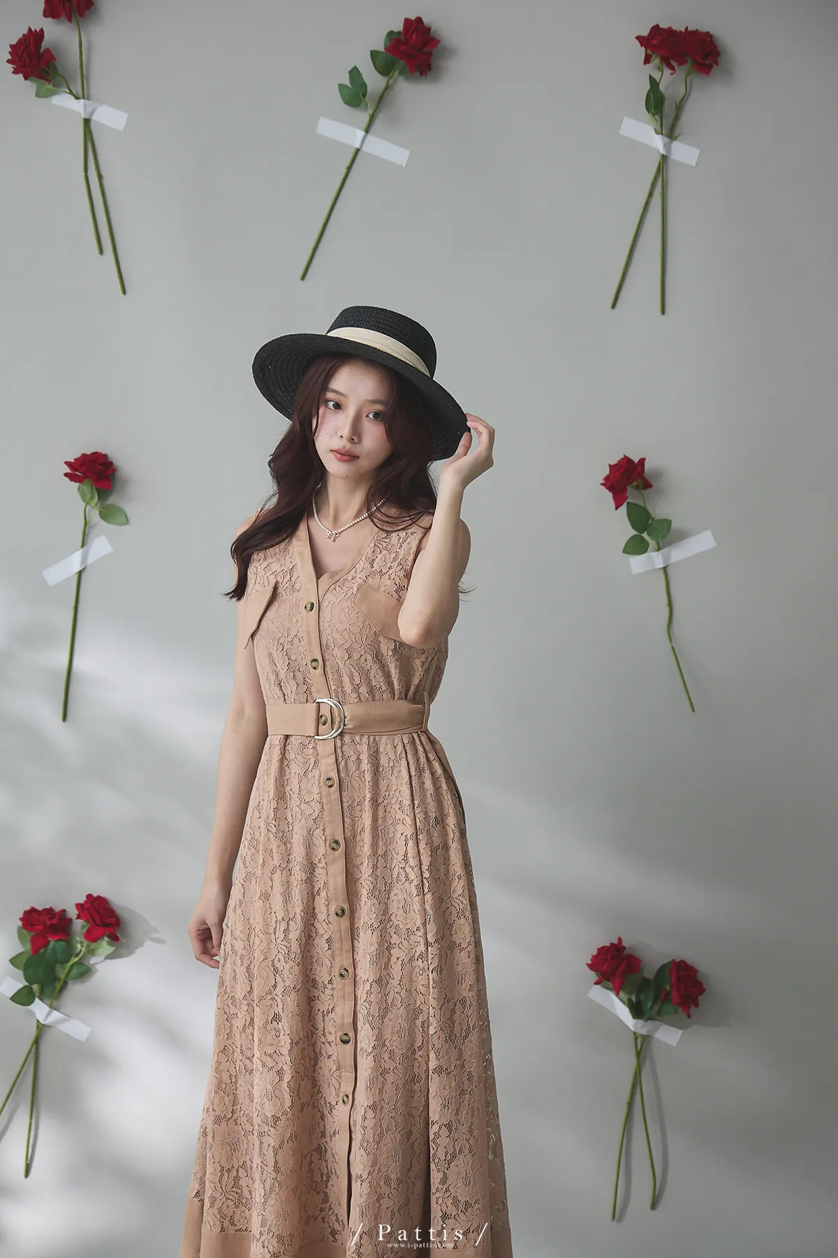 (現貨) -SALE-原價$1490- *特*蕾絲翻蓋繫帶蕾絲洋裝(桔杏)