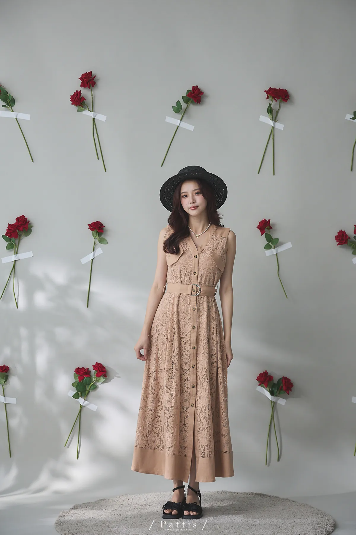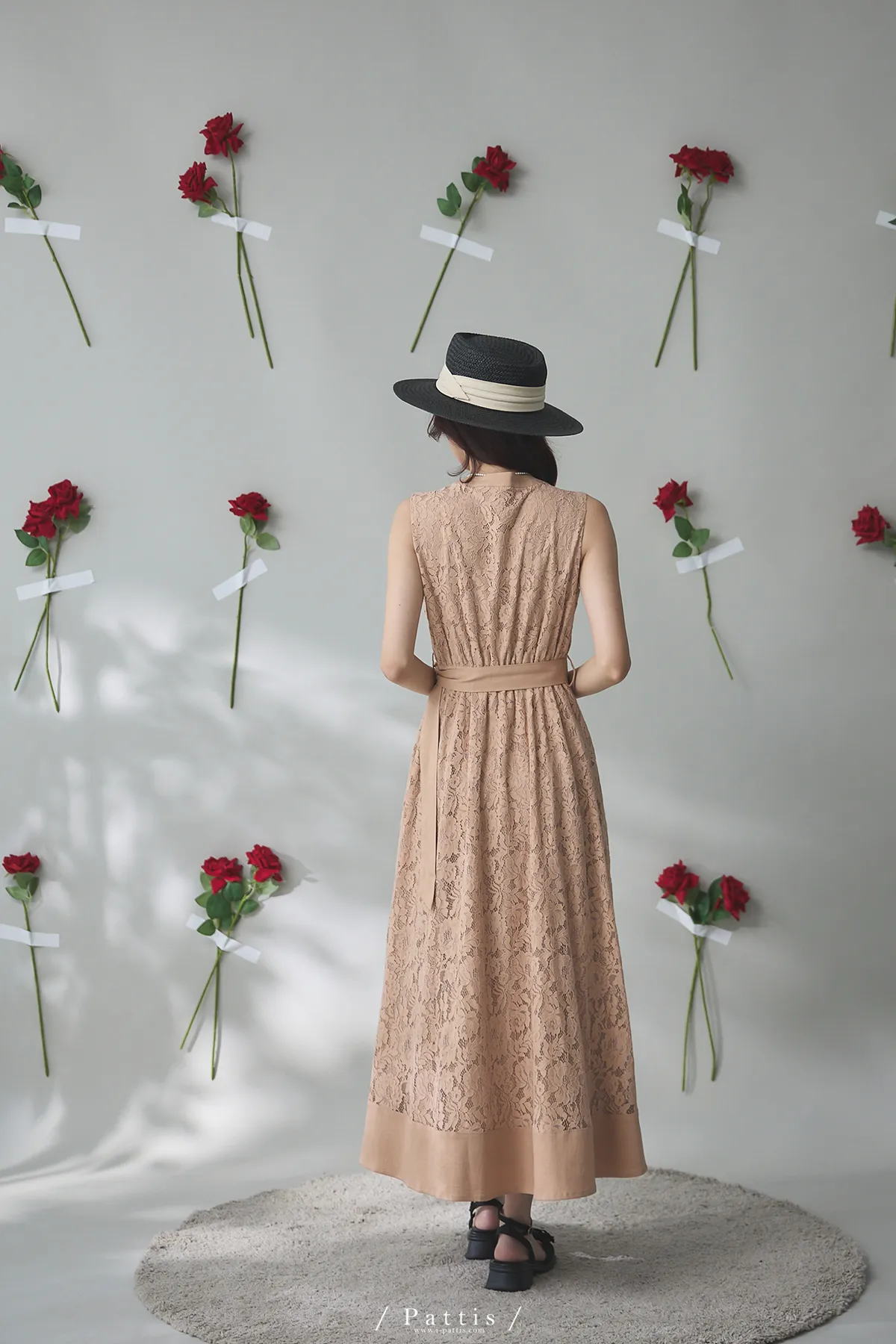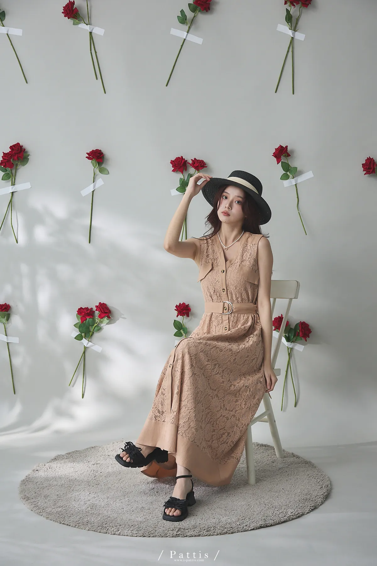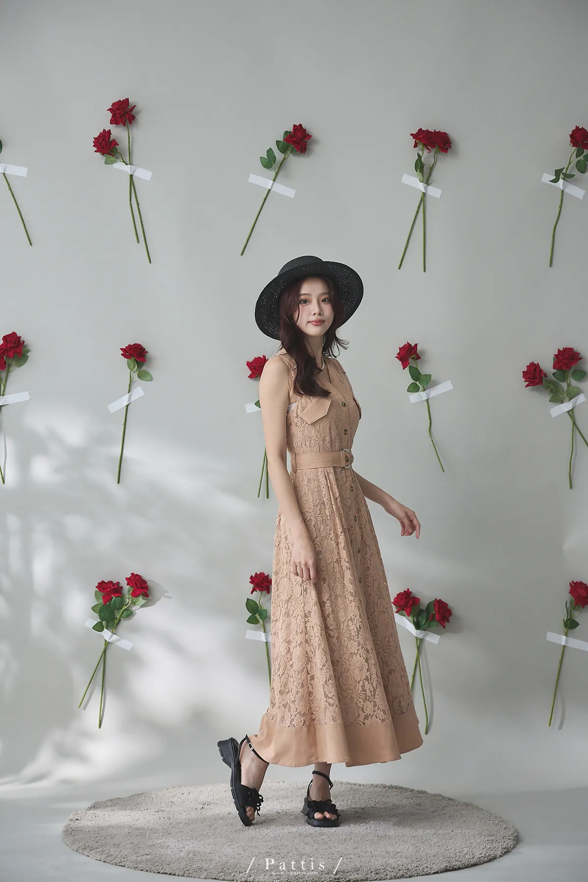 (現貨) -SALE-原價$1490- *特*蕾絲翻蓋繫帶蕾絲洋裝(桔杏)