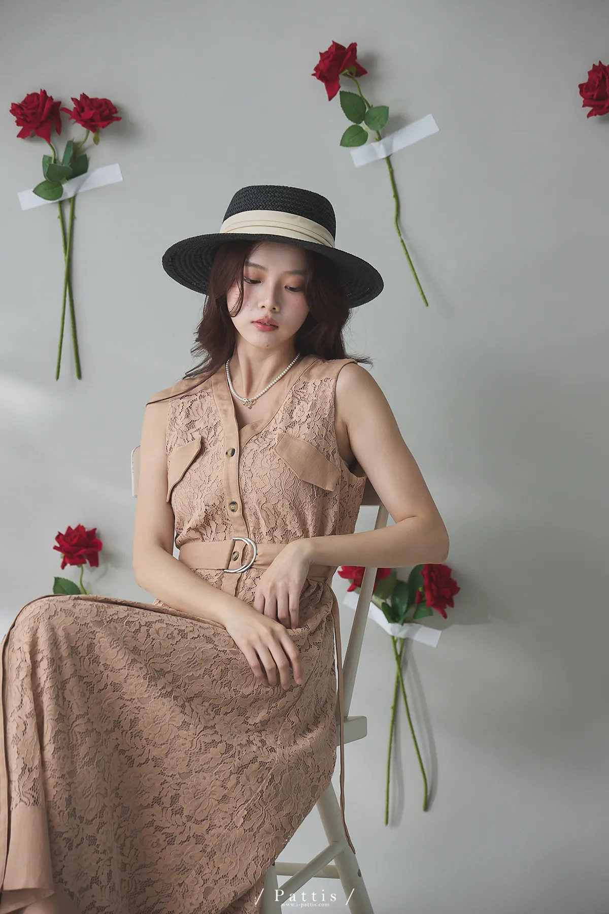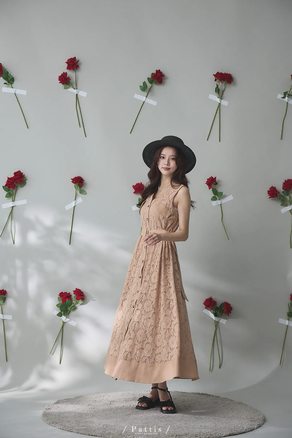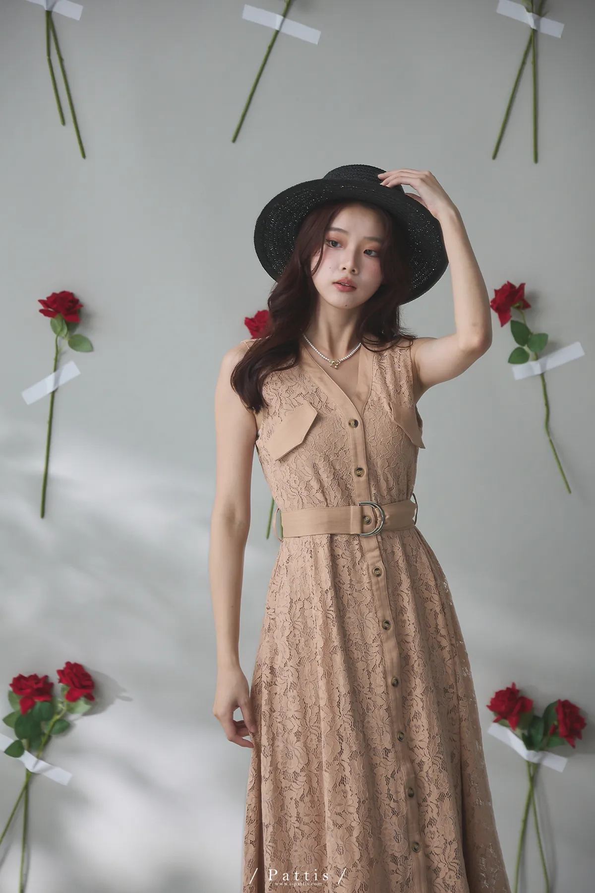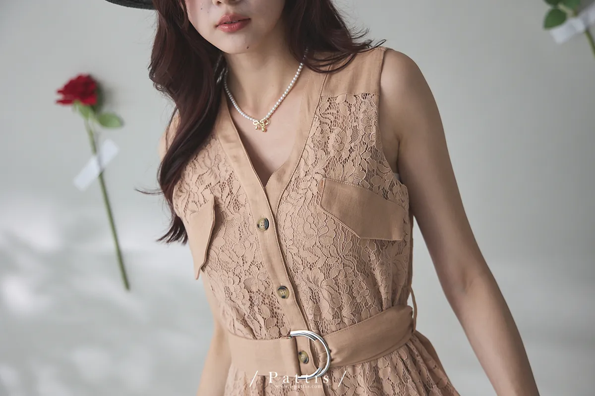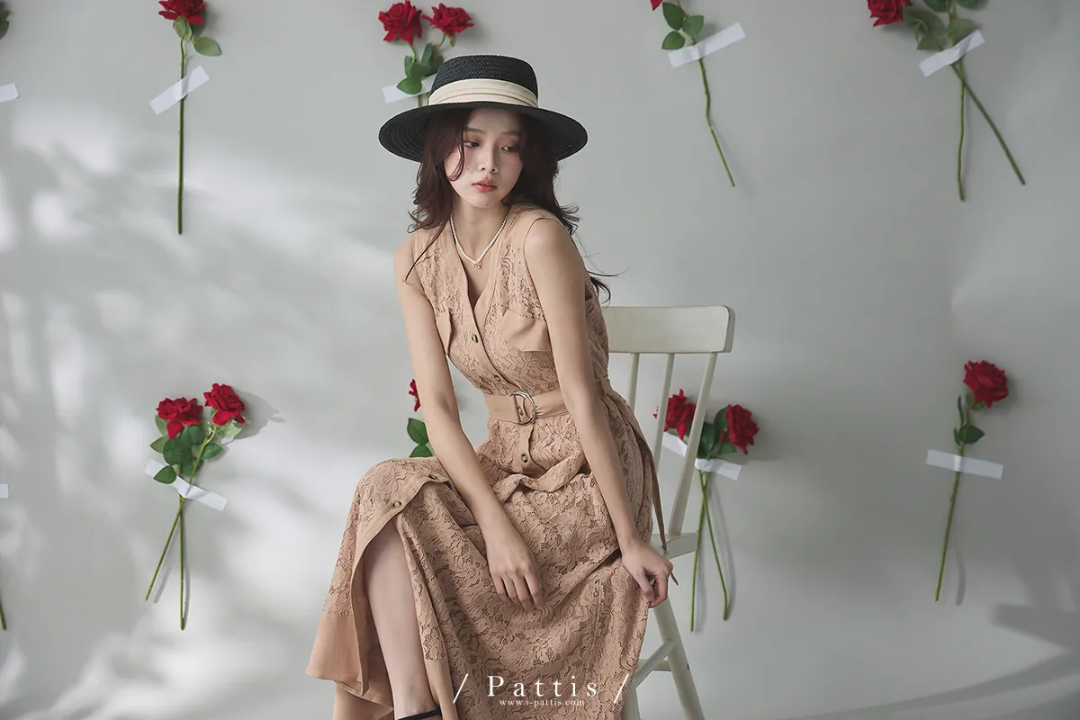 (現貨) -SALE-原價$1490- *特*蕾絲翻蓋繫帶蕾絲洋裝(桔杏)