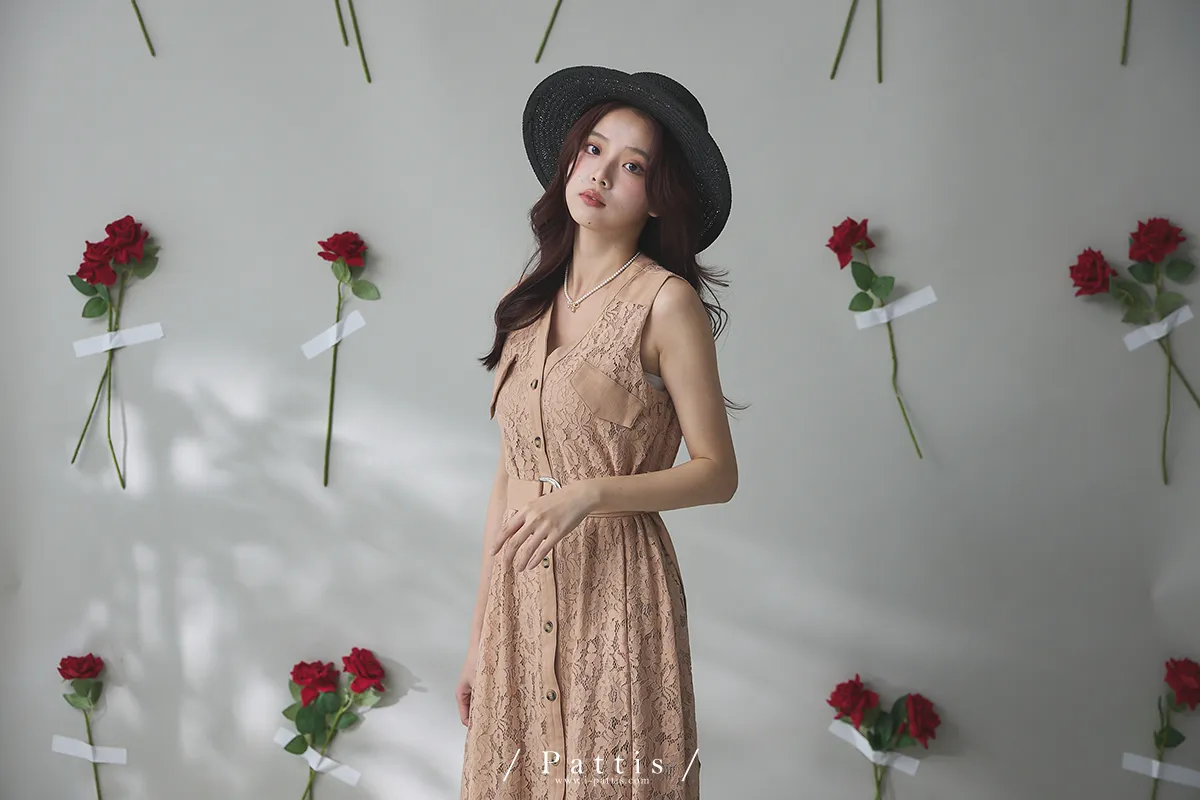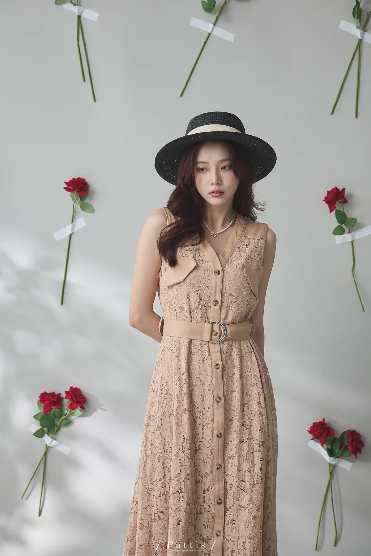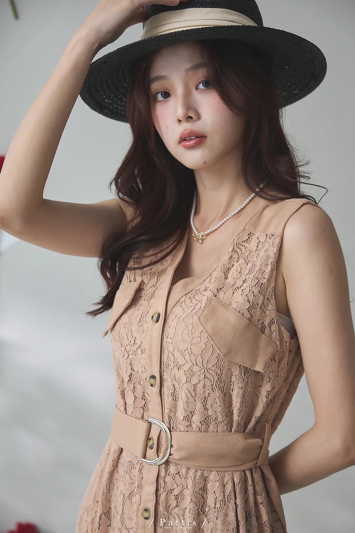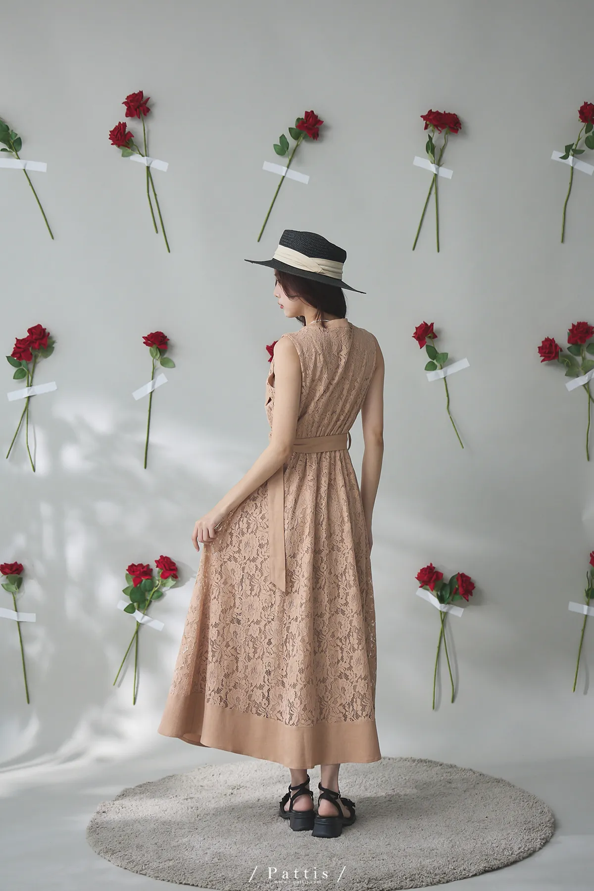 (現貨) -SALE-原價$1490- *特*蕾絲翻蓋繫帶蕾絲洋裝(桔杏)