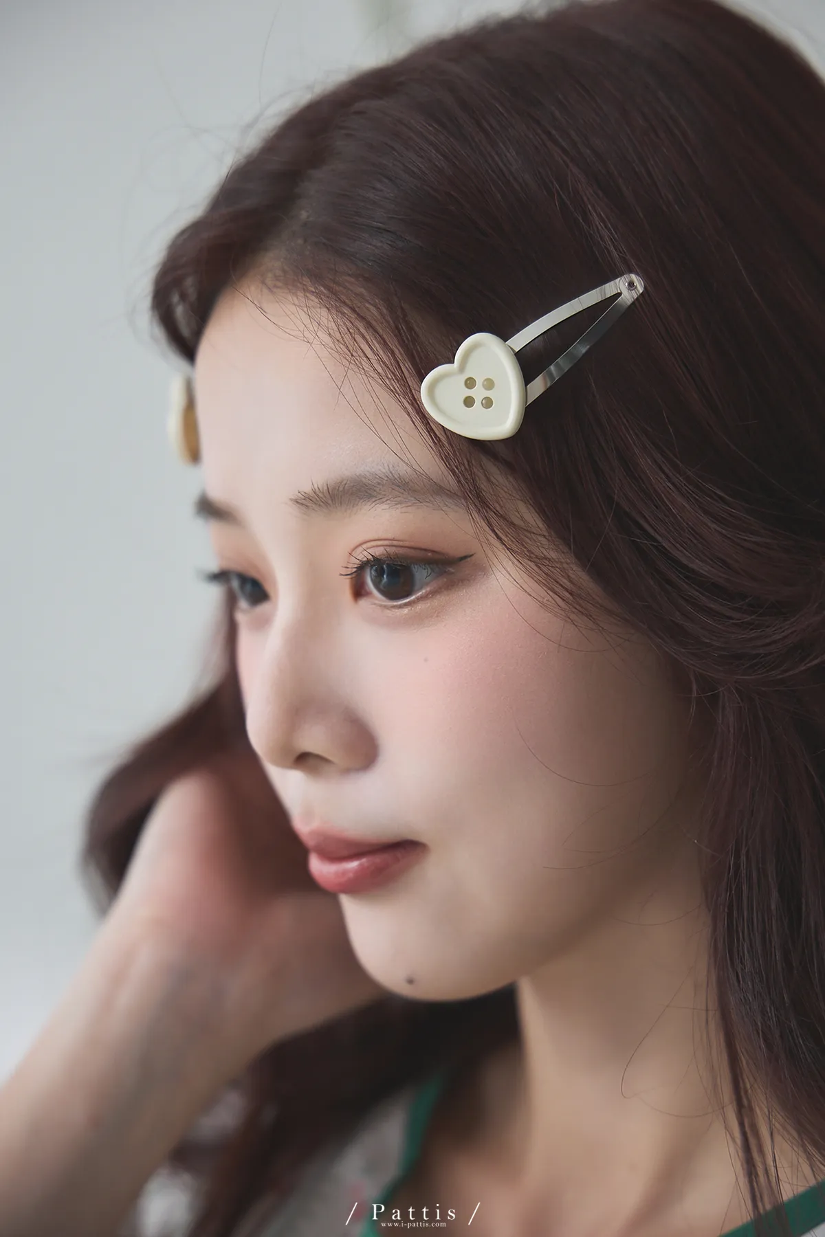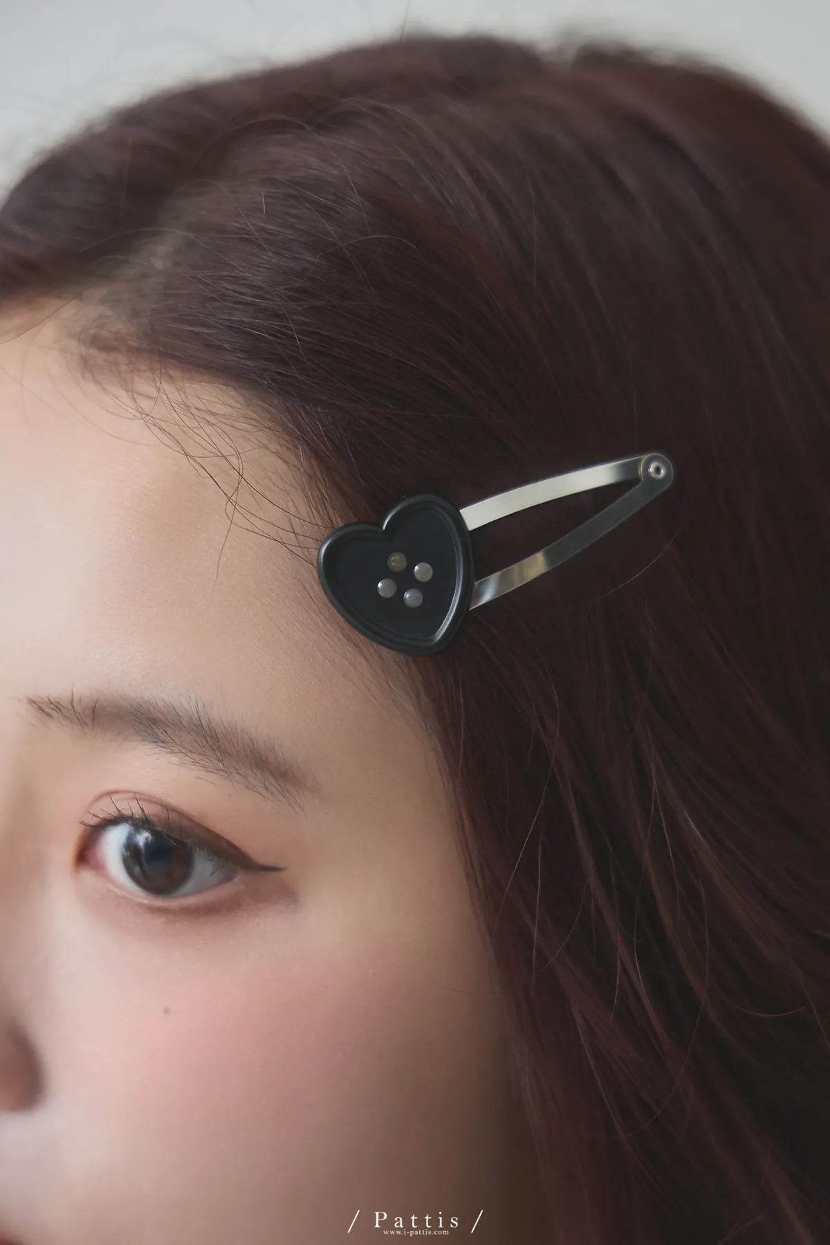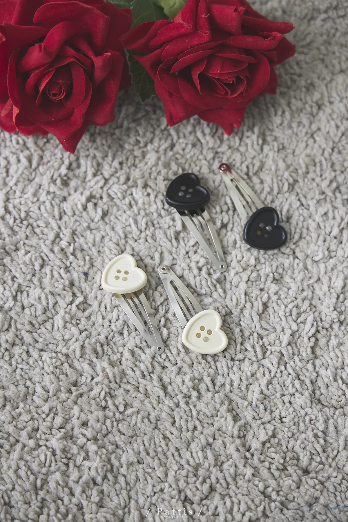 (現貨)愛心鈕扣髮夾(米白/黑)