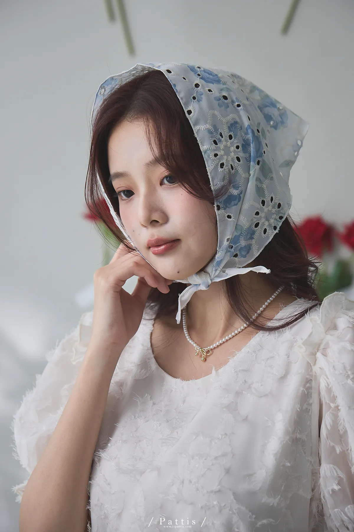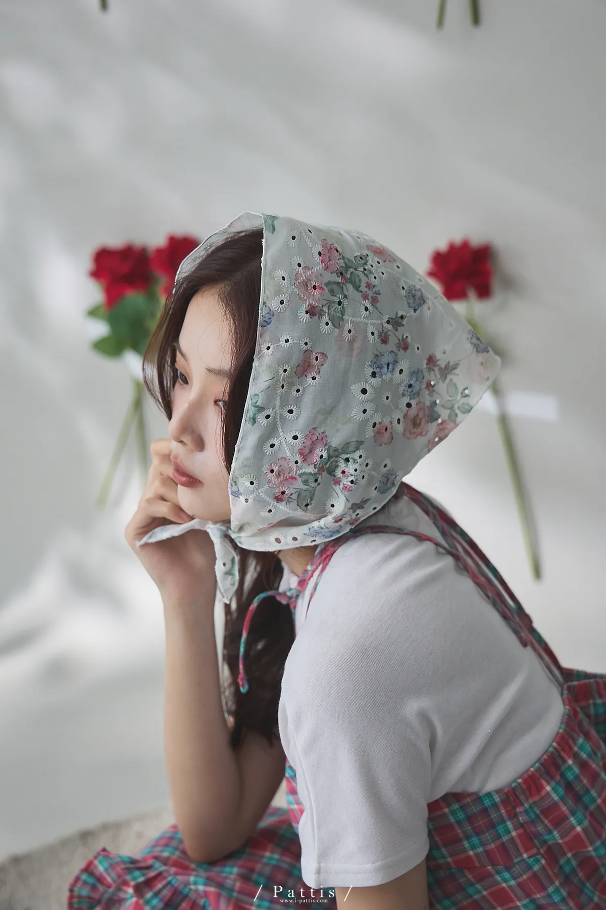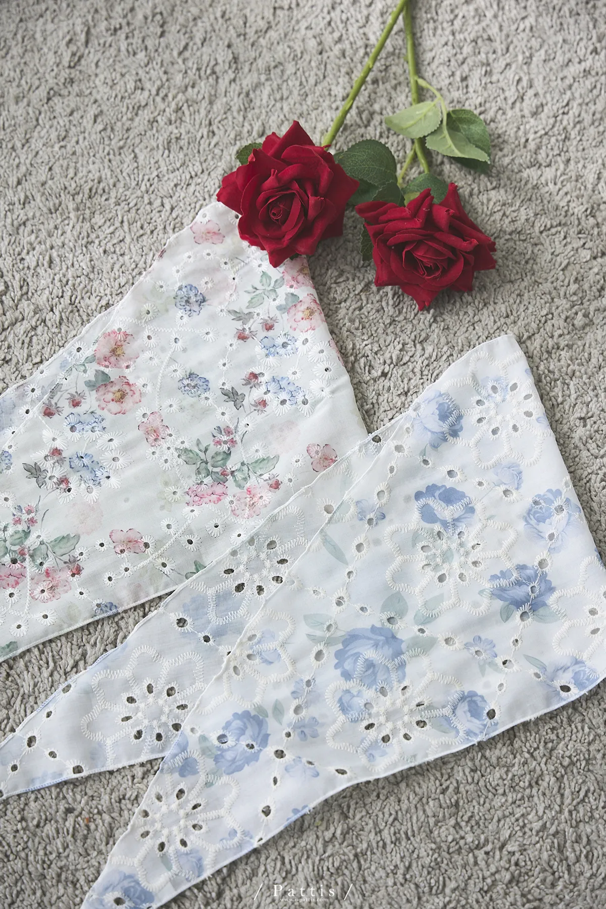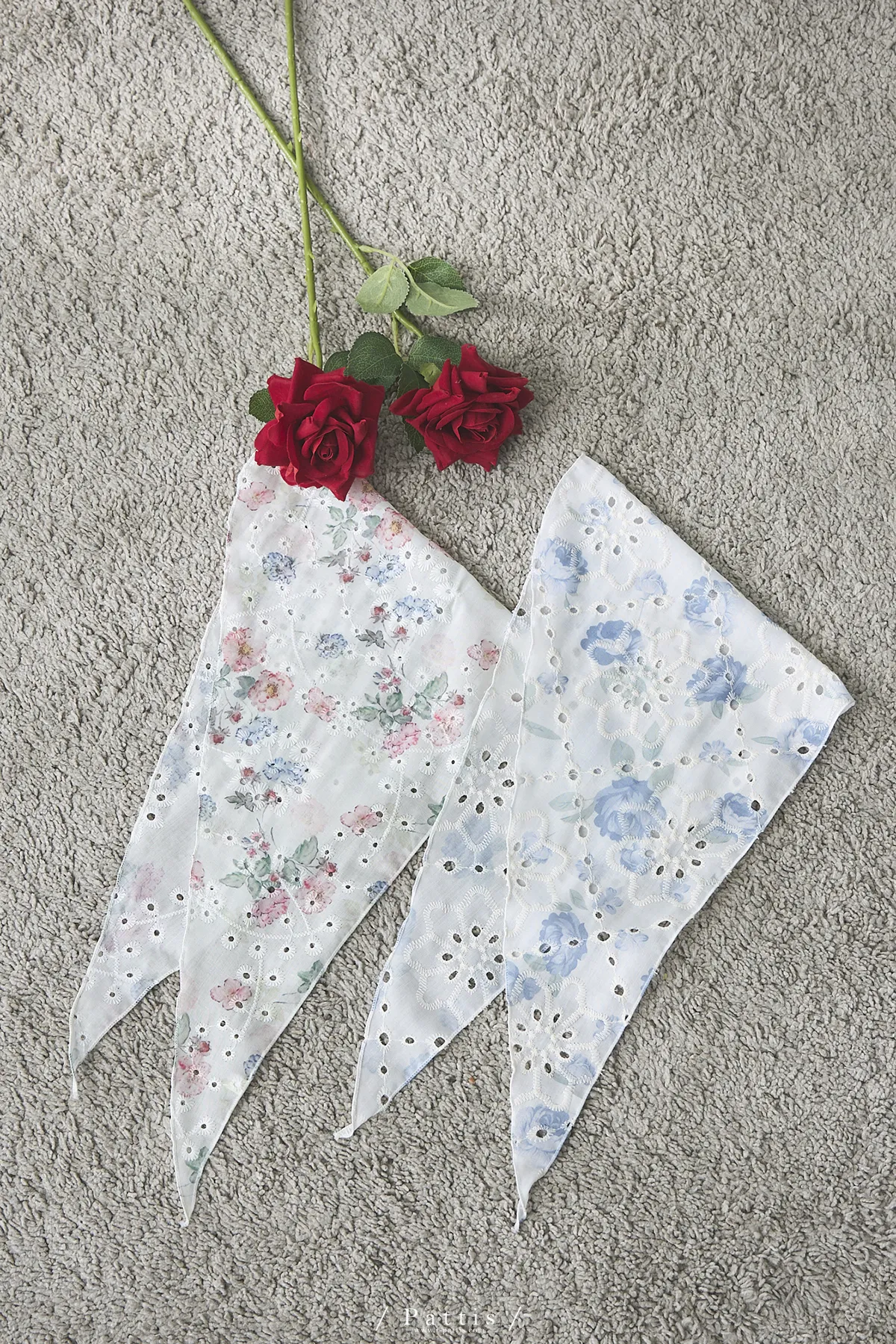 (現貨)古典薔薇繡花縷空三角布領巾(橘紅/藍)